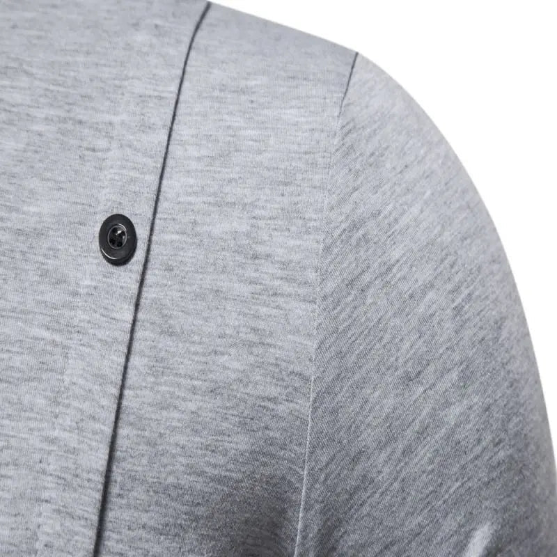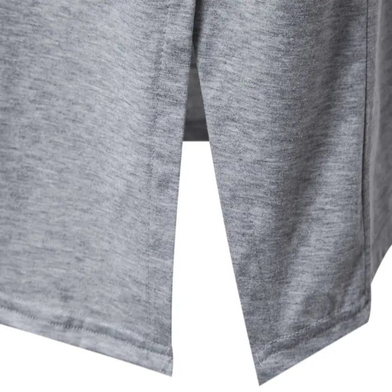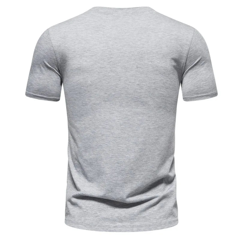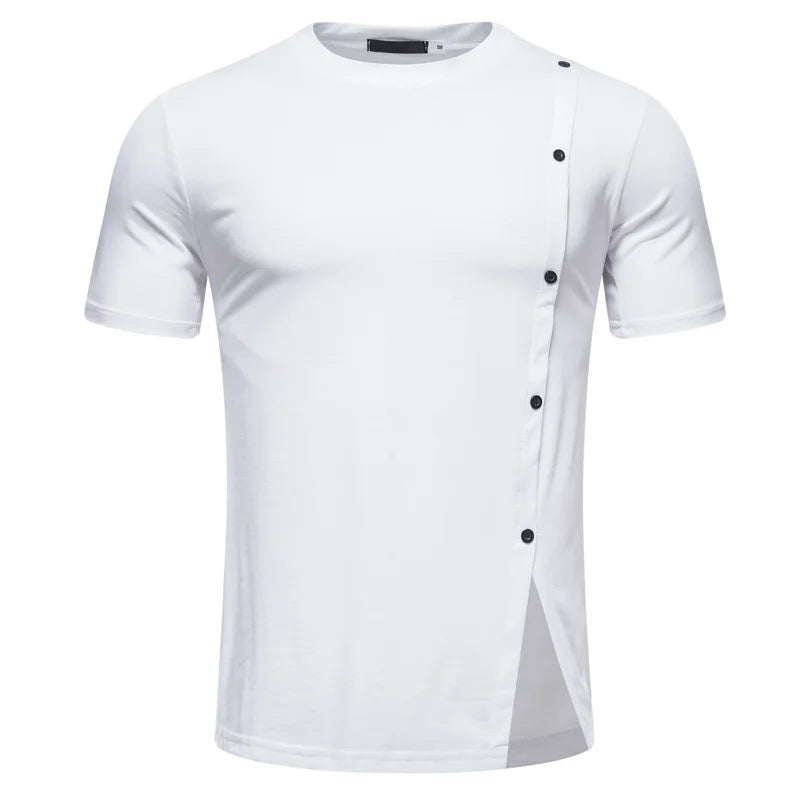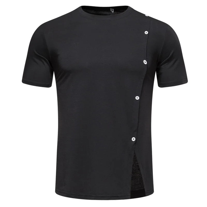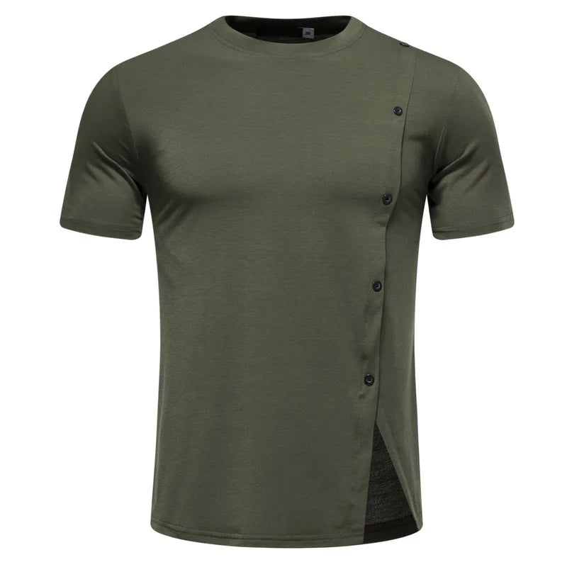AIDASE  -  Men's Casual and Fashionable Short Sleeved T-shirt with Button Decoration on The Hem, Split Round Neck Short Sleeved T-shirt
