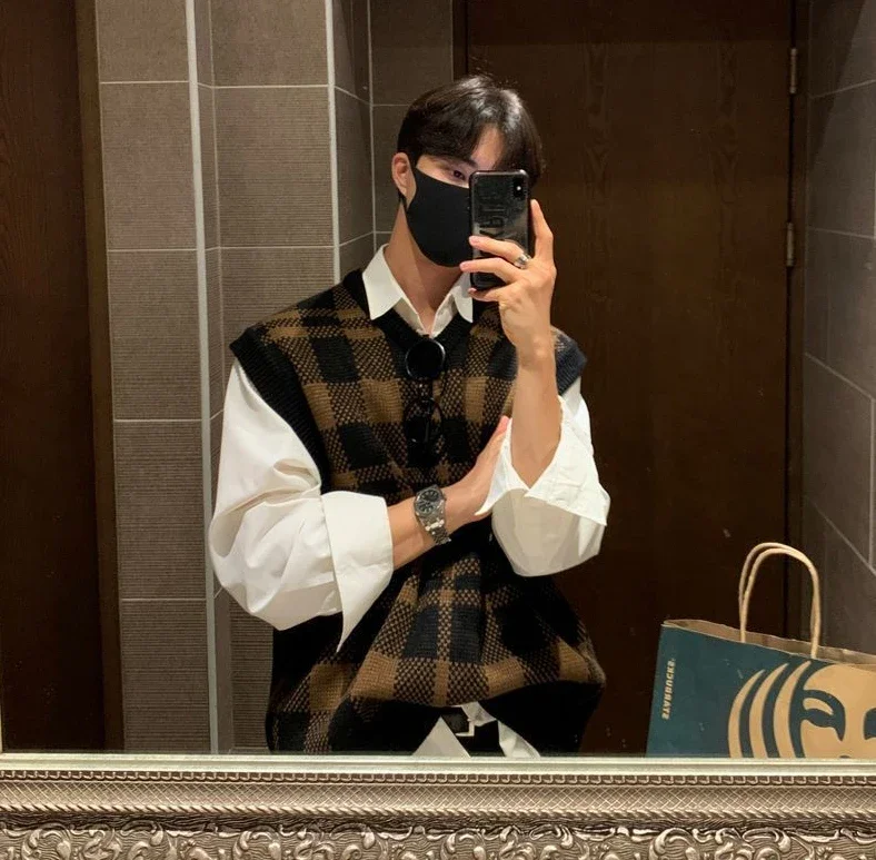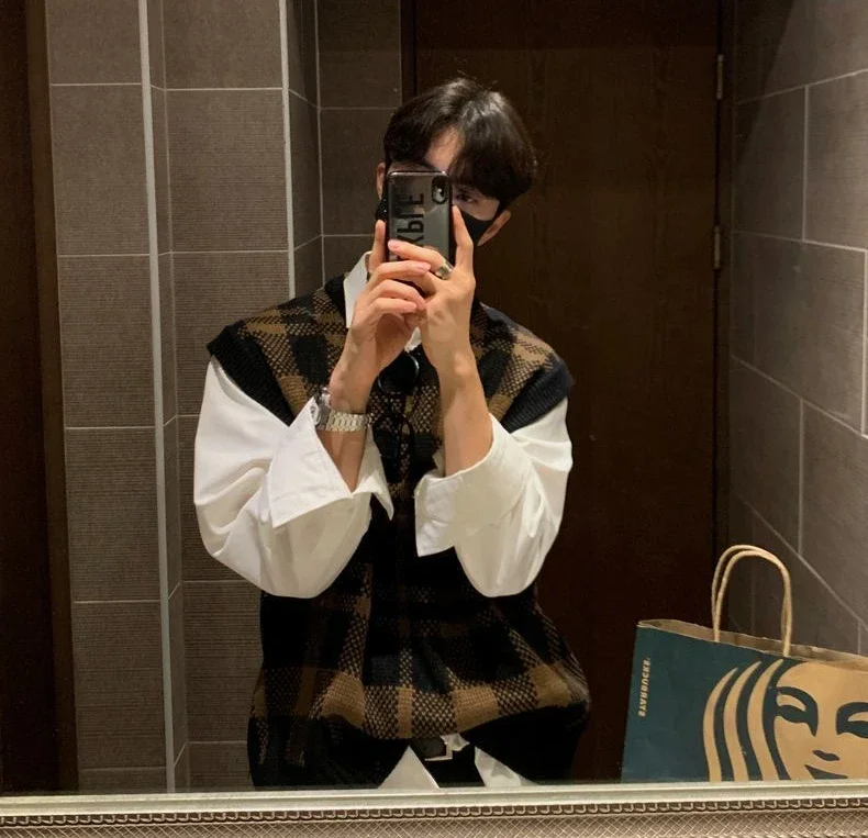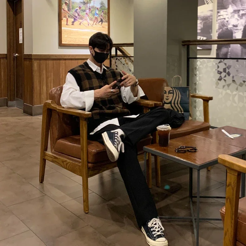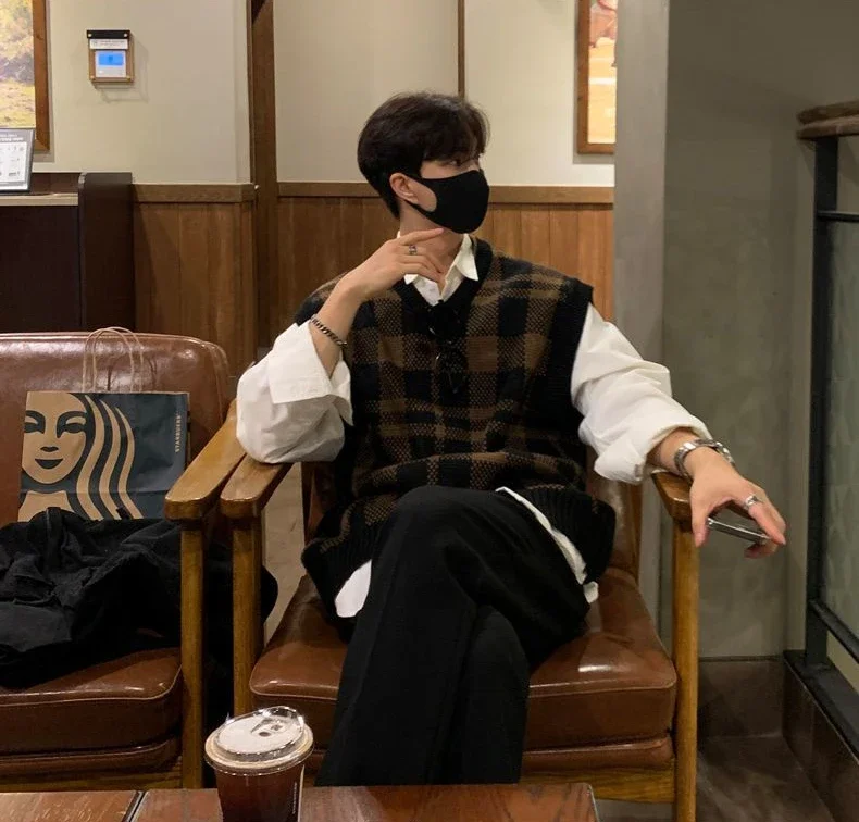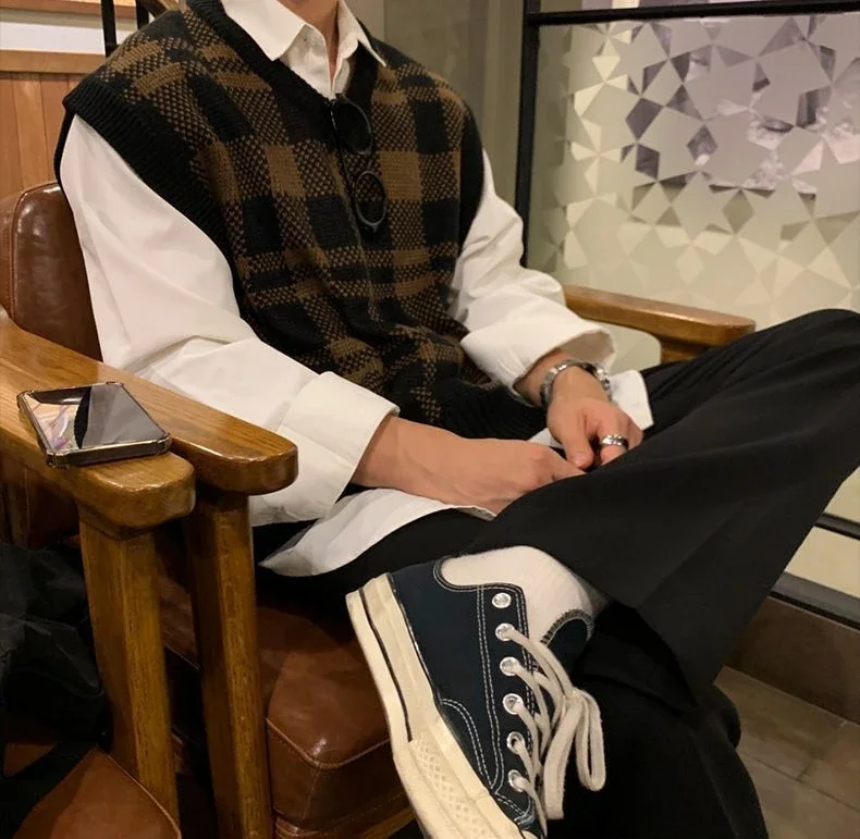 Aidase Men's Clothing V Neck Waistcoat Knit Sweater Male Plaid Vest Sleeveless Korean Autumn Clothes Street Style Heated 2024 Spring X