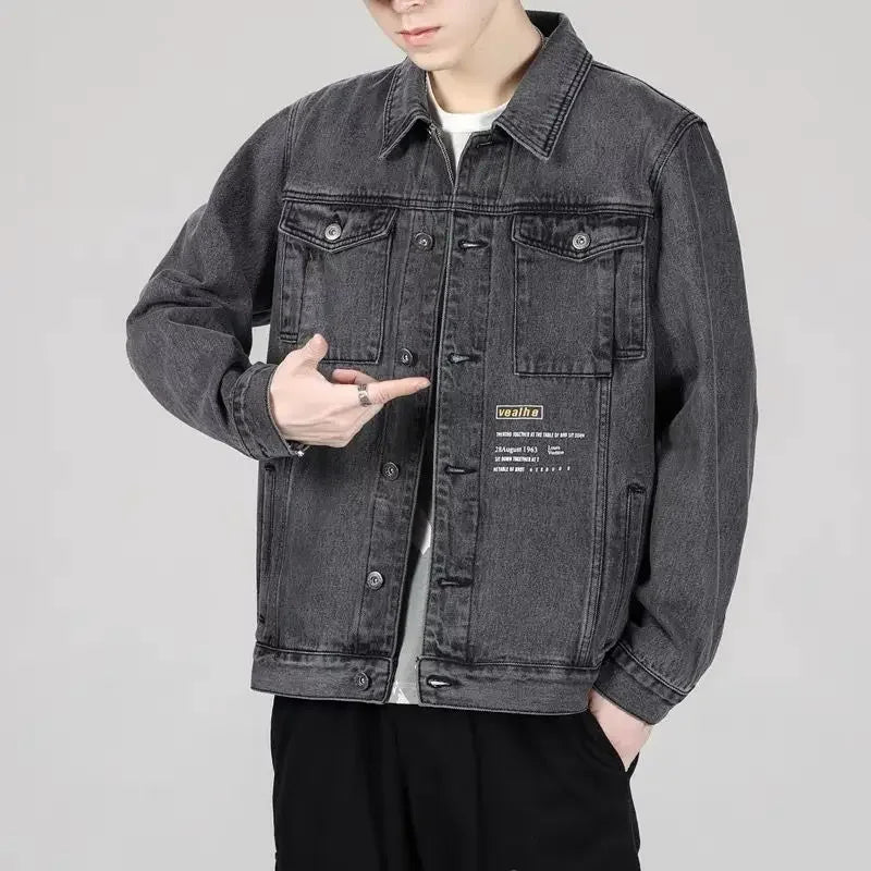 Aidase Men's Denim Jacket Button Autumn Blue Male Jean Coats Outwear Stylish Winter Oversize Trendy Large Size Cowboy 2024 Y2k Xl