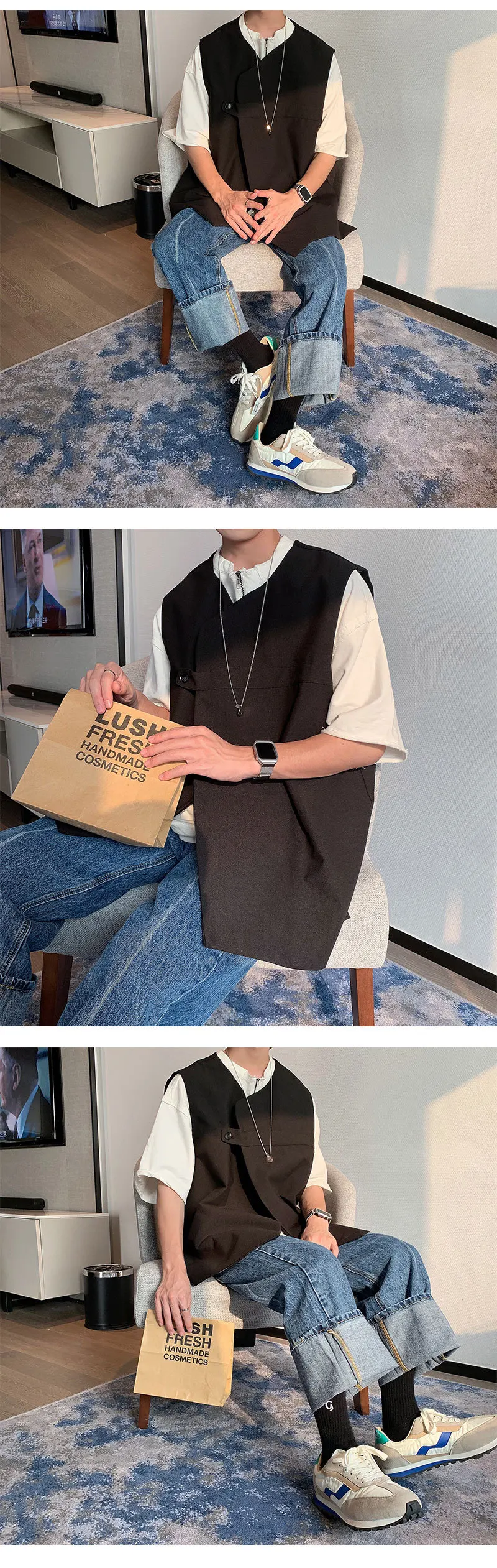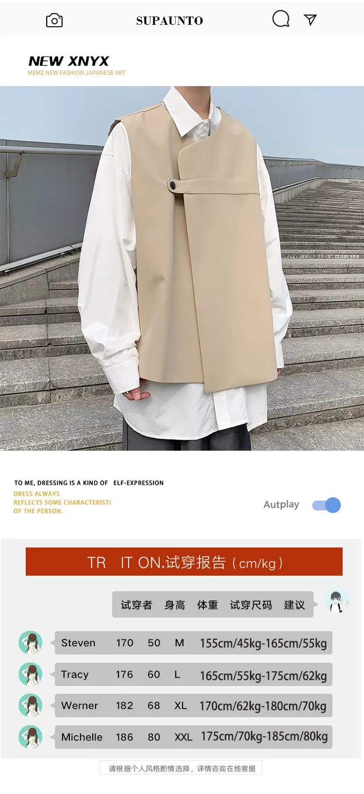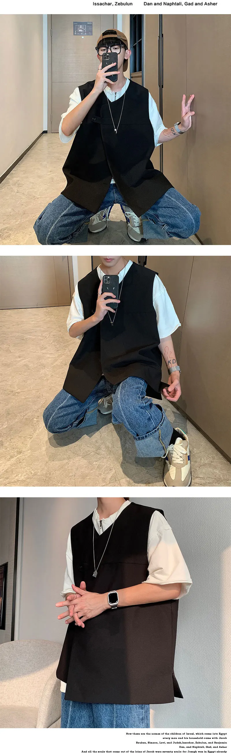 Aidase Mens Fashion Tooling Vest Men Streetwear Cargo Vest Hip Hop Sleeveless Jacket punk hip hop sleeveless jacket man Korean style