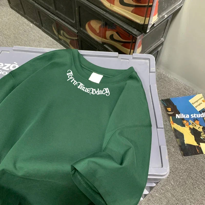 Aidase Men's Oversized T-shirts White Cotton T Shirt 5XL for Men Casual Summer Wear Letter Fashion Print Neck Tee Shirts Men Clothing
