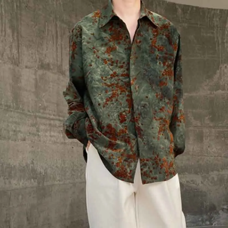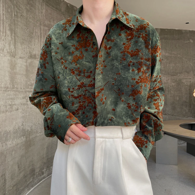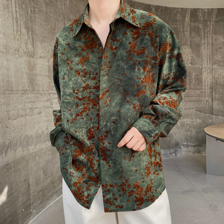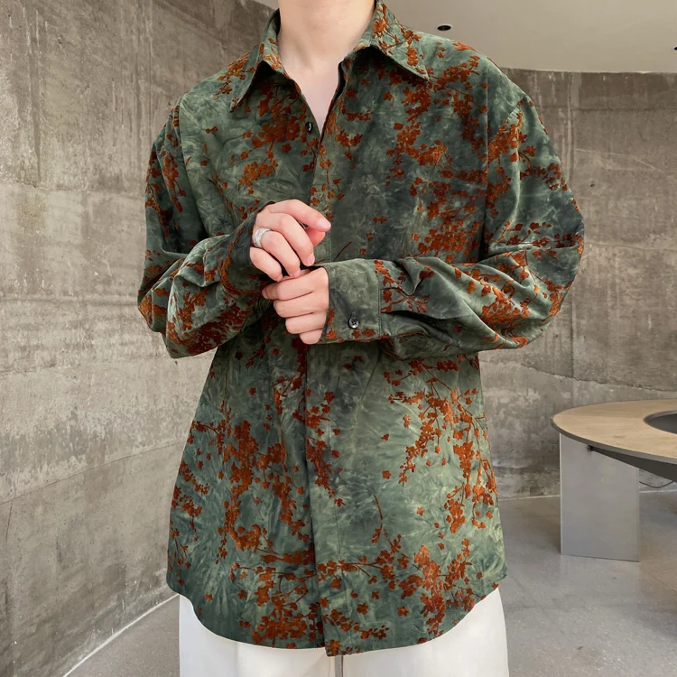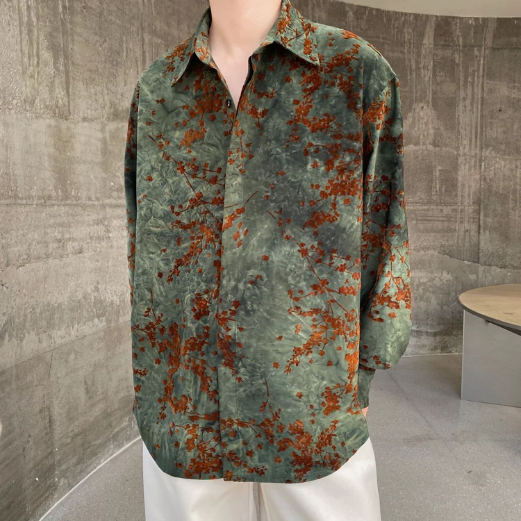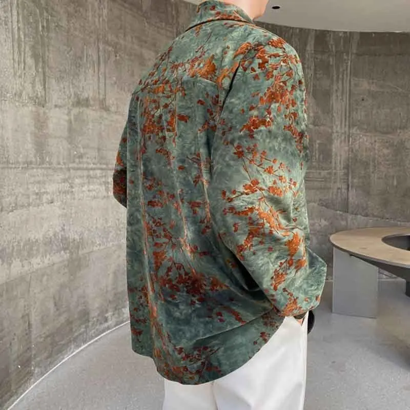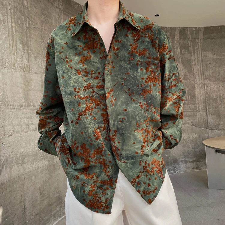 Aidase Men's Printing Shirts Autumn Long Sleeve Top Casual Single Breasted Streetwear Personality Male Clothing Fashion New