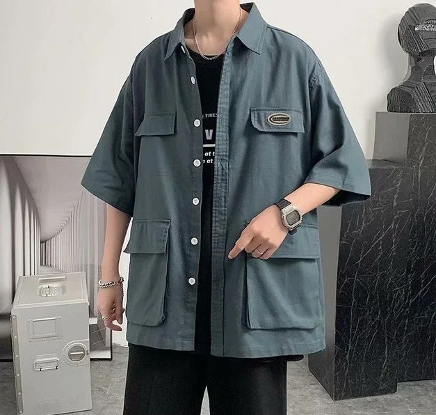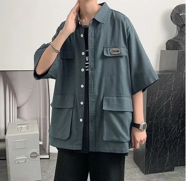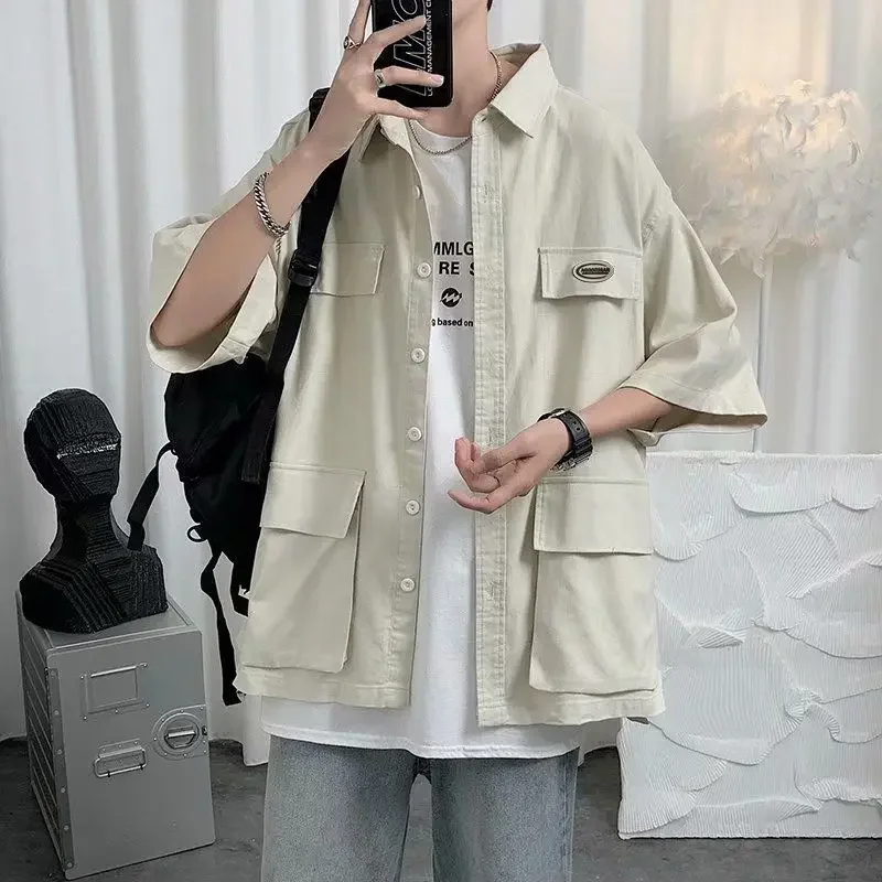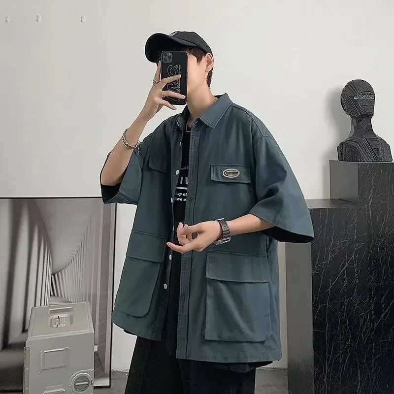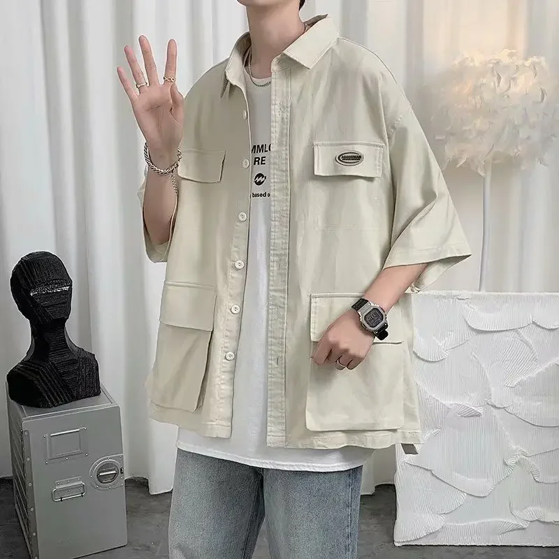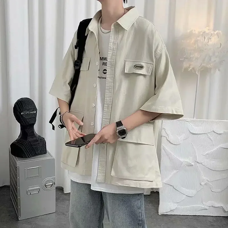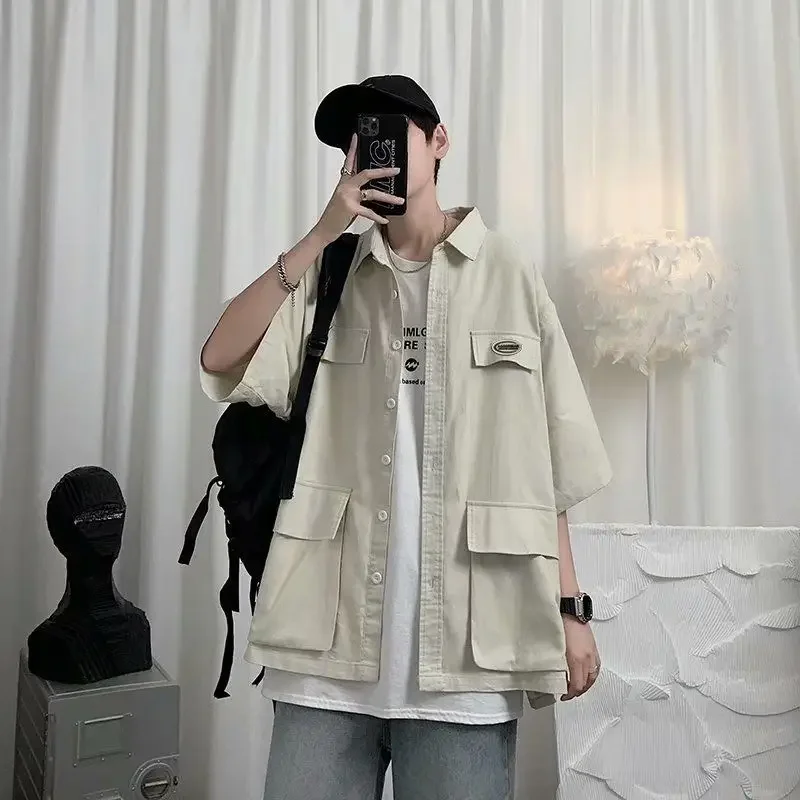 Aidase Men's Shirt Short Sleeve with Pocket Male Shirts Cargo Casual Designer Regular Normal Social Cool Button Up Fashion Man 2024