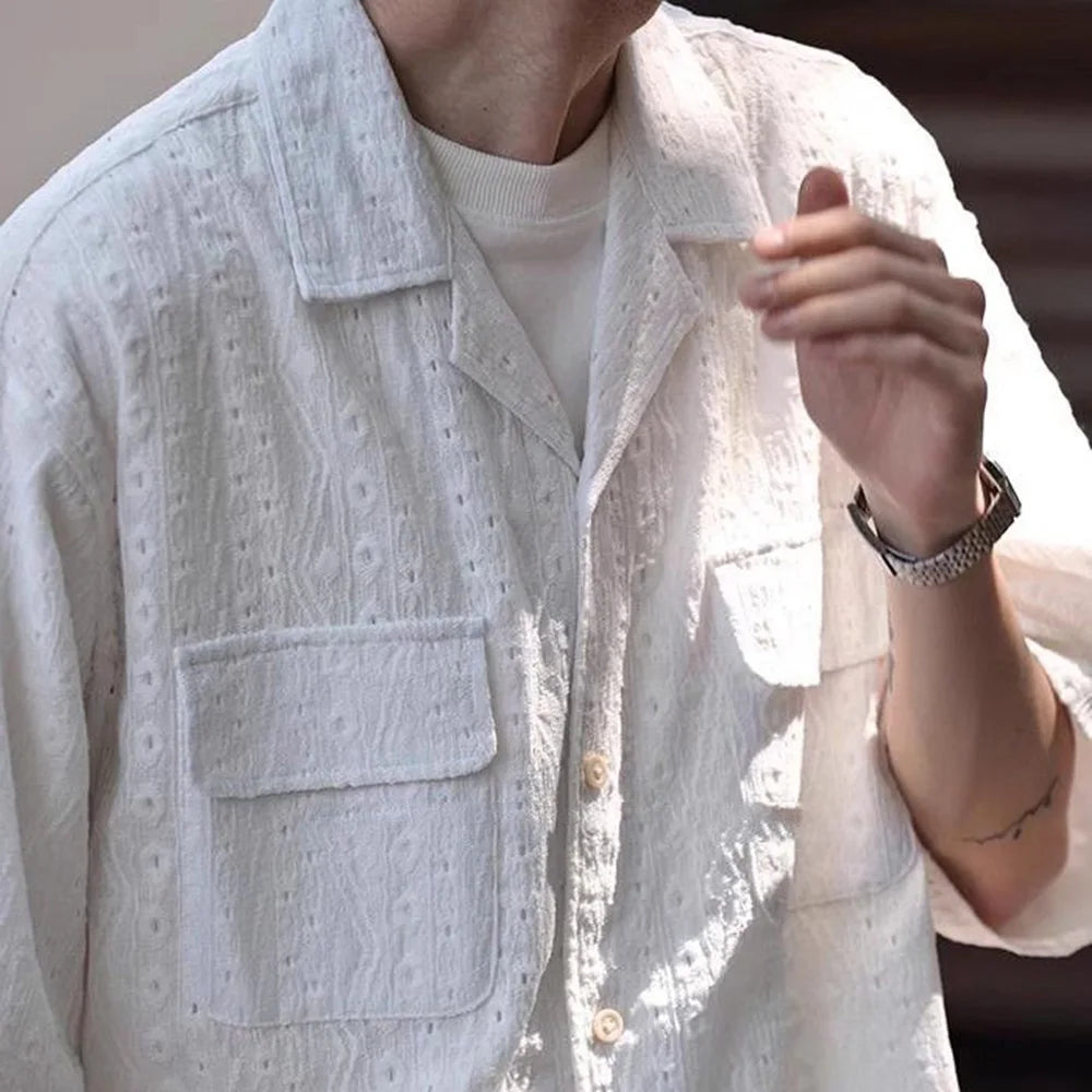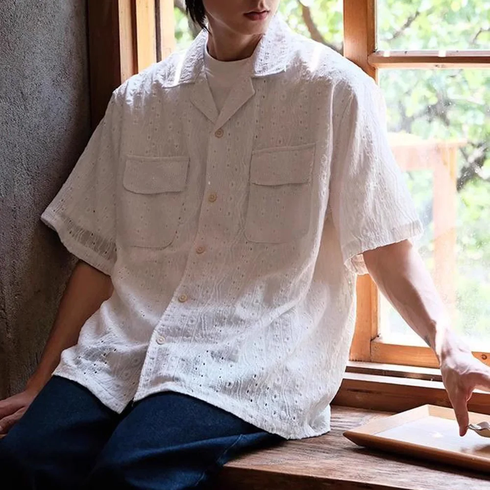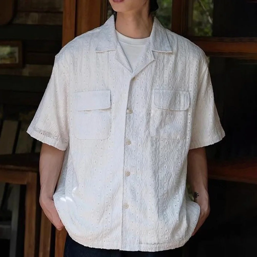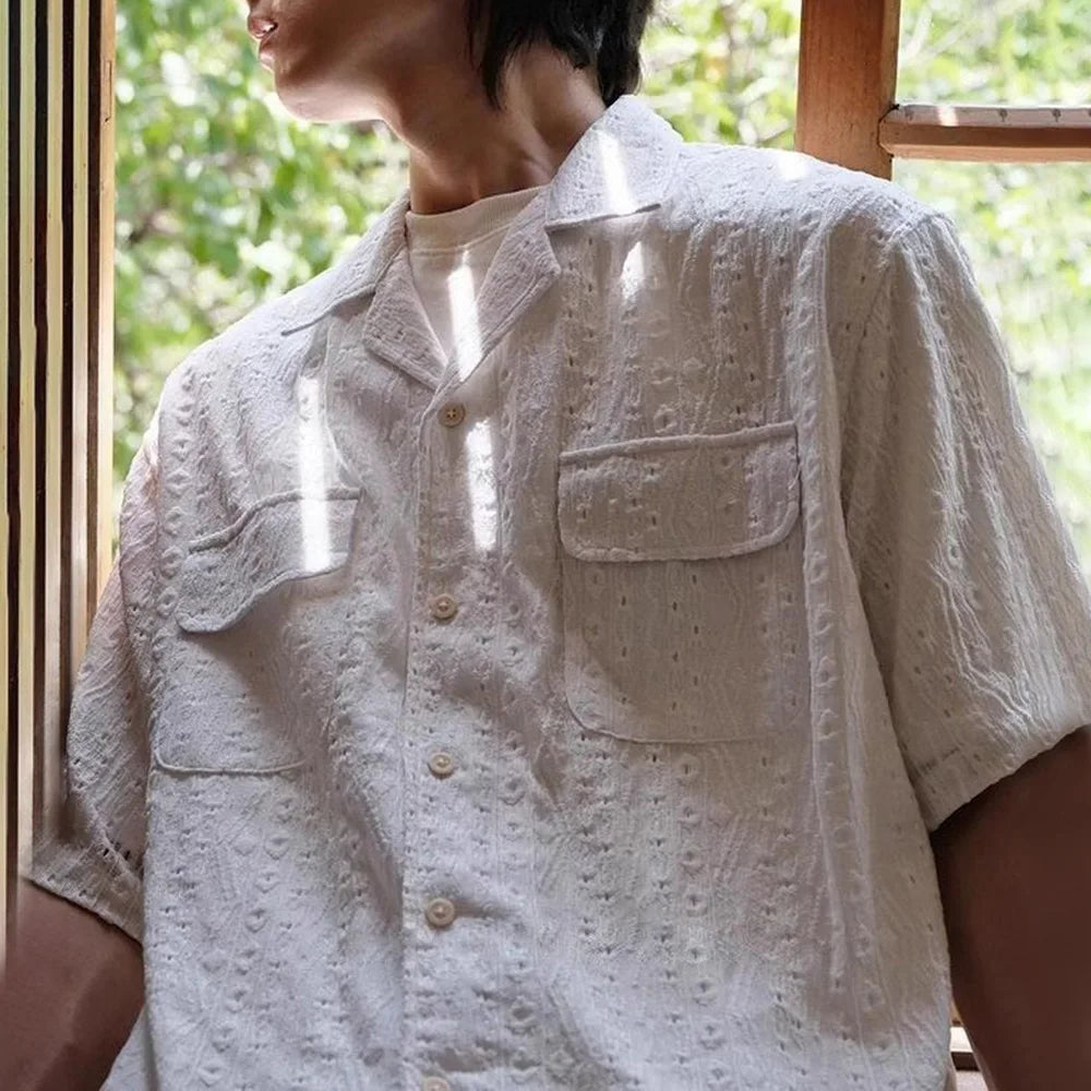 Mens Shirt Textured Pocket Casual Shirt Summer Streetwear Beach Vacation Solid Color Camping Short-Sleeve Top Men'S Clothing