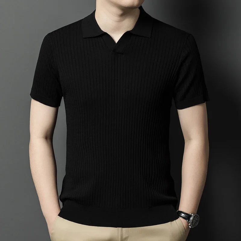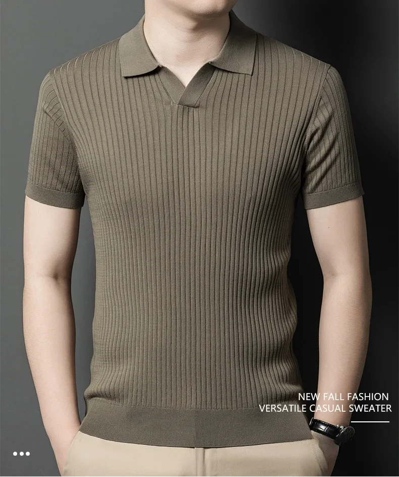 Men's Short-Sleeved Shirt, Slim Fit Summer Business Gentleman,Men's Polo Shirt 2024, High-End Knitwear Mulberry Silk