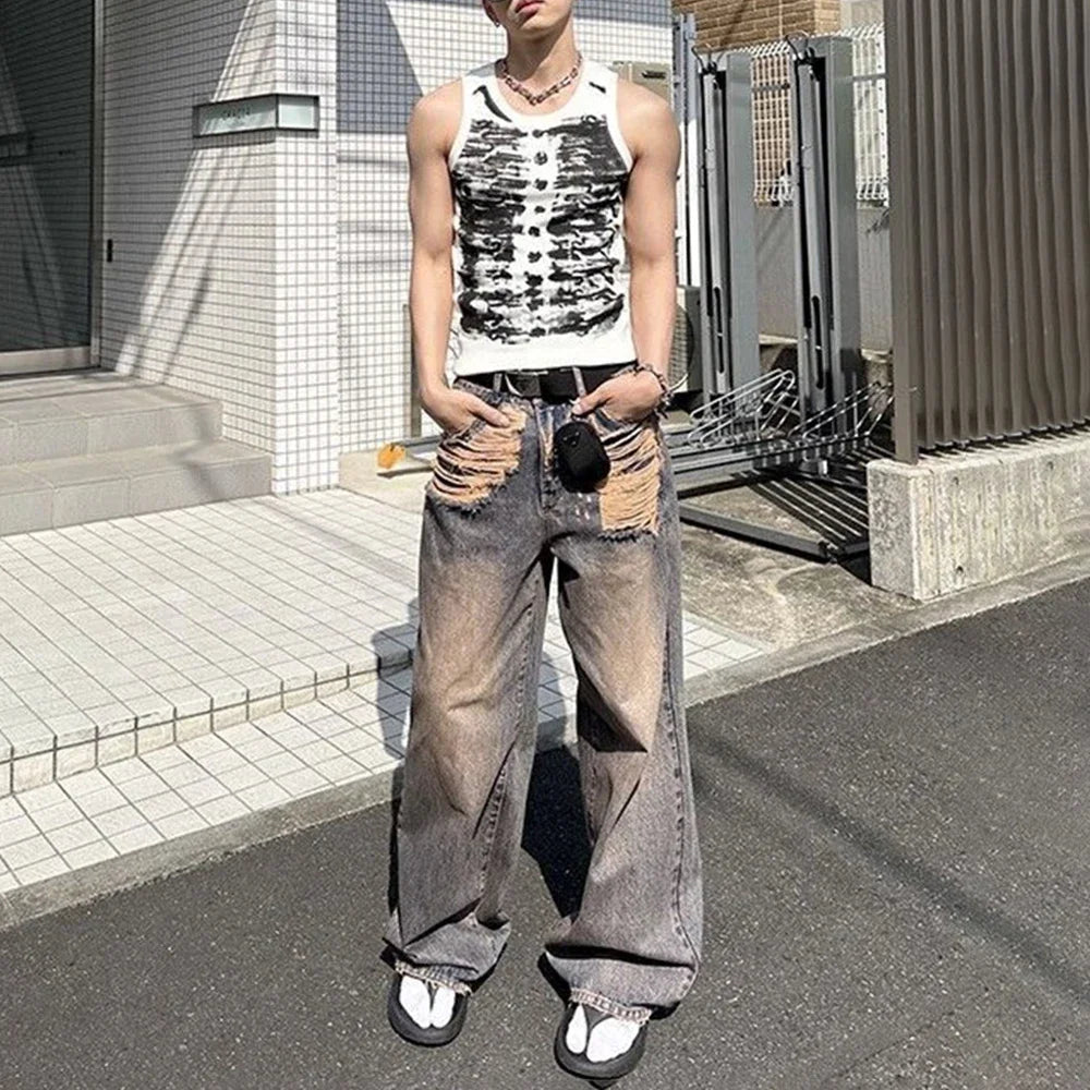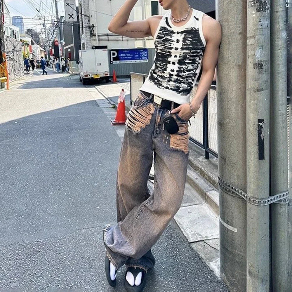 Mens Street Tie-Dye Tight-Fitting Sports Vest Genderless Sexy Fashion Youth Trendy Casual Printed Comfortable Vest Unisex