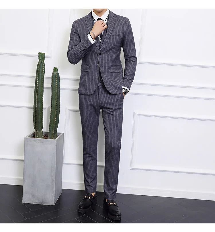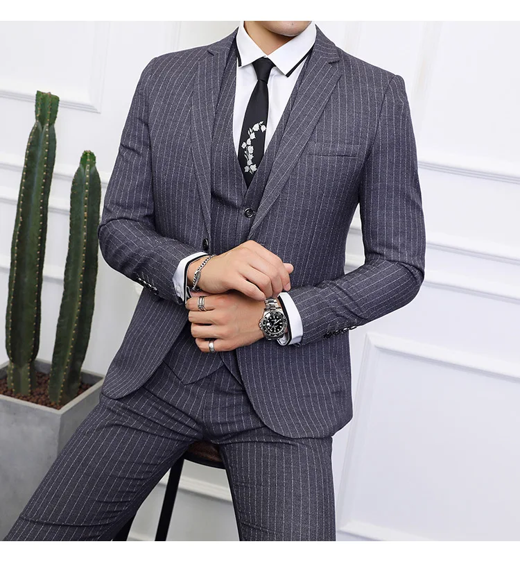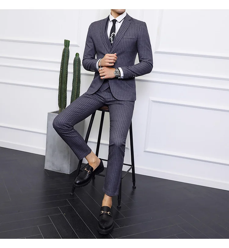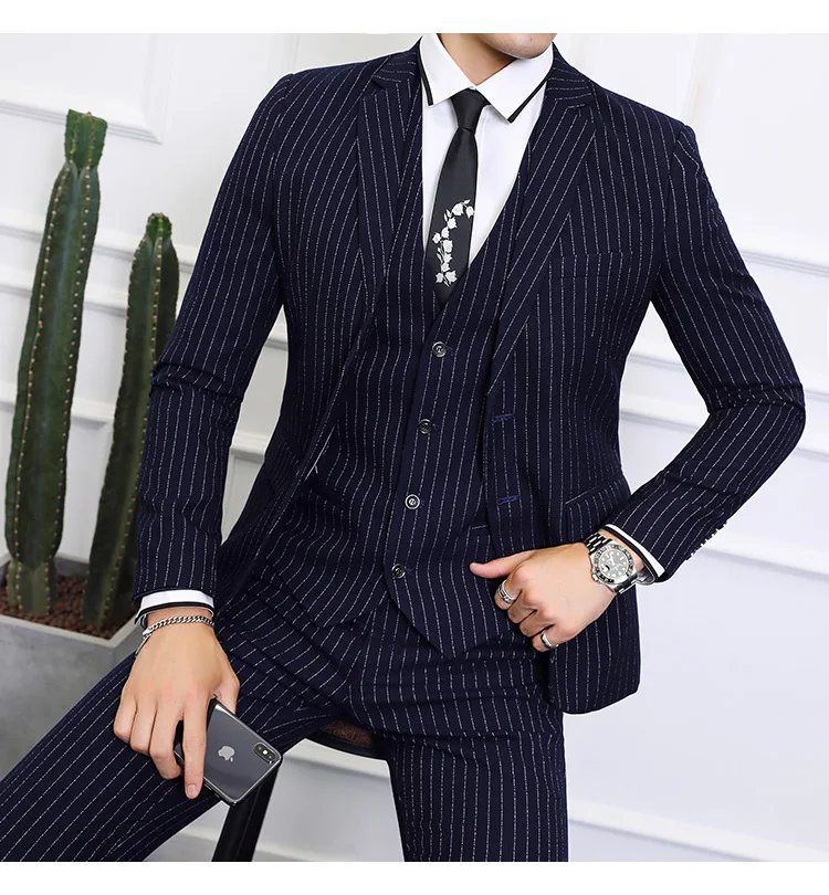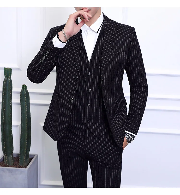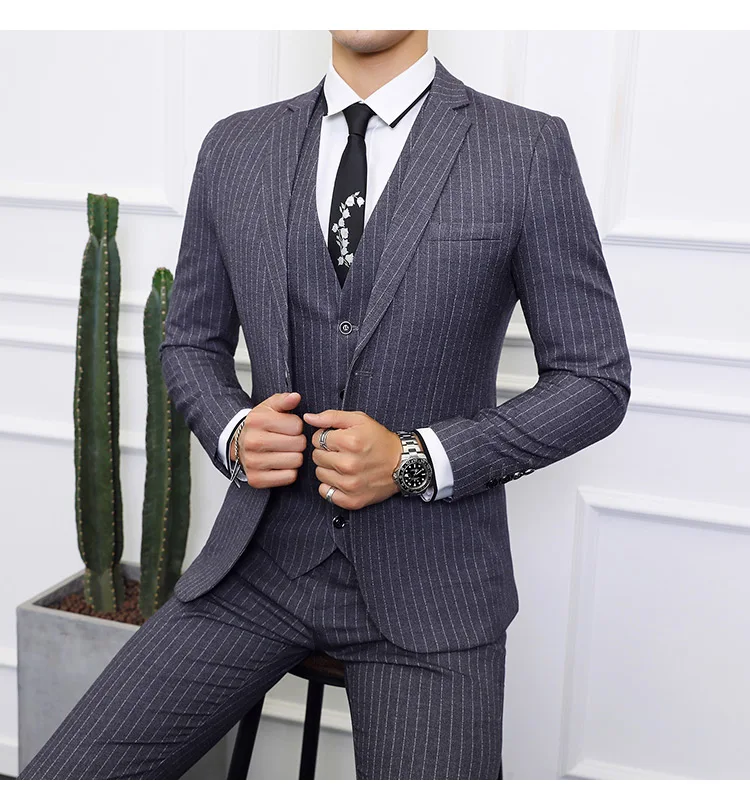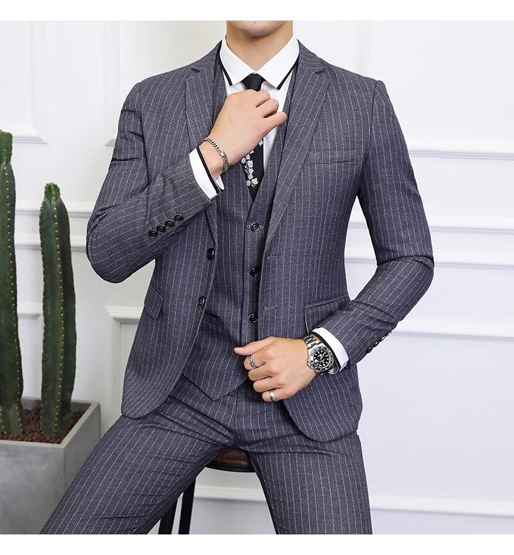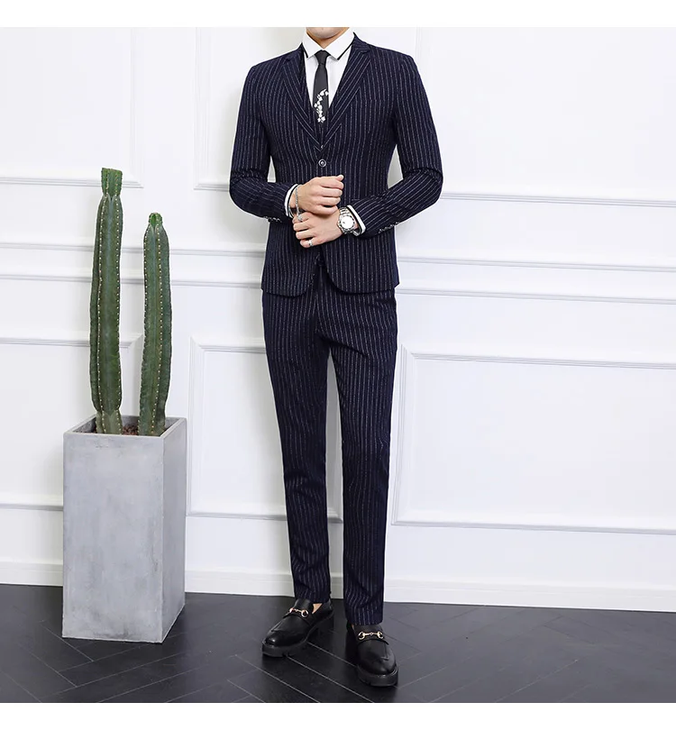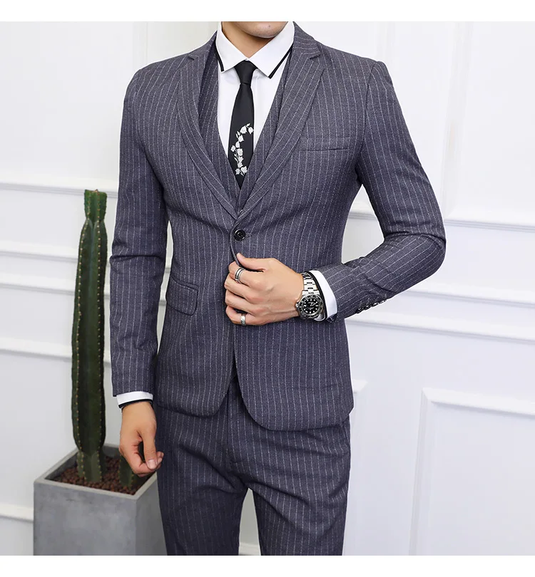 Aidase Men's Striped Suit Three-piece Large Size 6XL British Style Gentleman Business Banquet Wedding Host Fashion Quality Formal Suit
