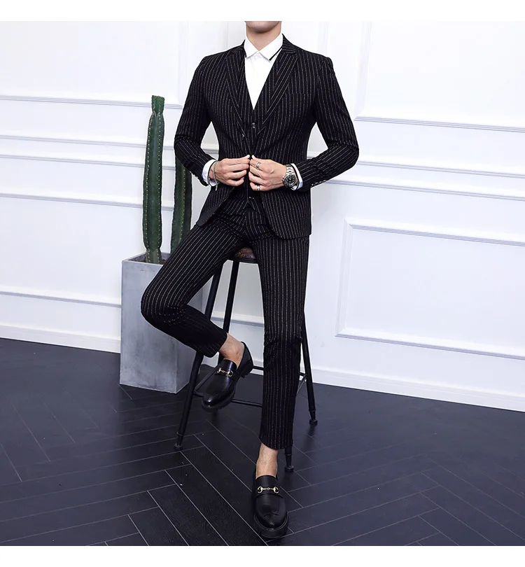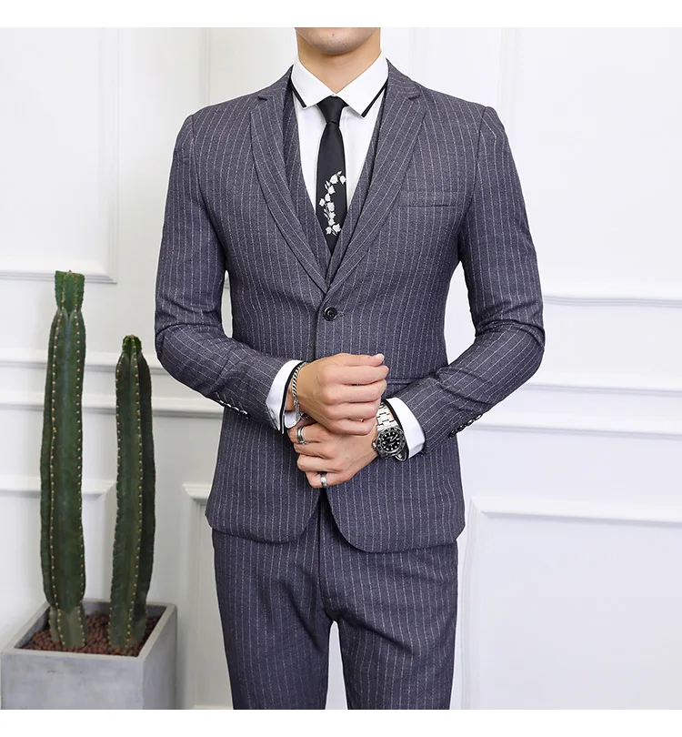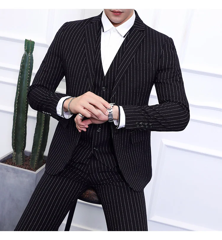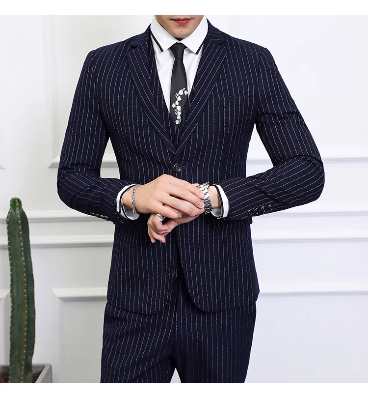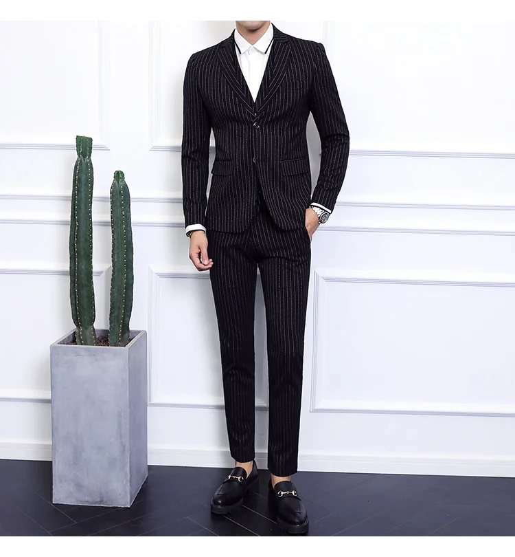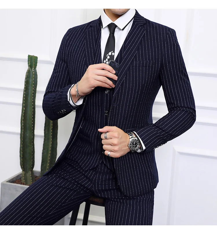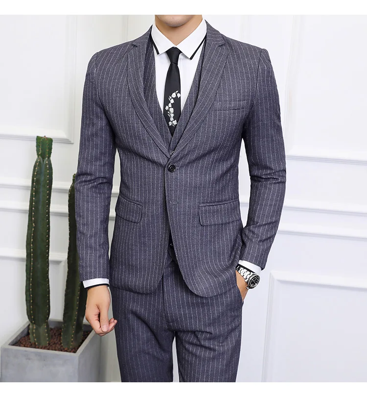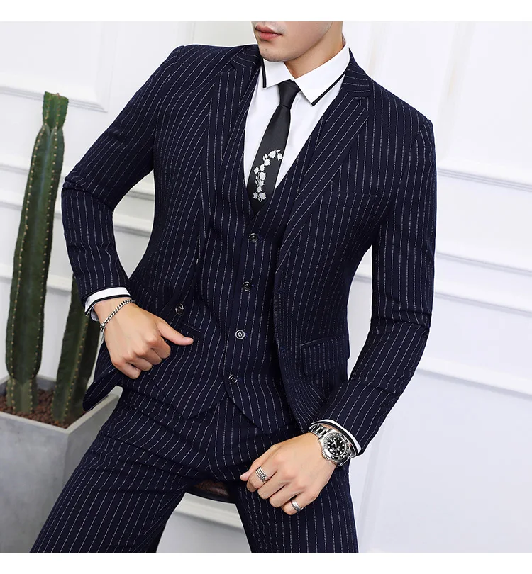 Aidase Men's Striped Suit Three-piece Large Size 6XL British Style Gentleman Business Banquet Wedding Host Fashion Quality Formal Suit
