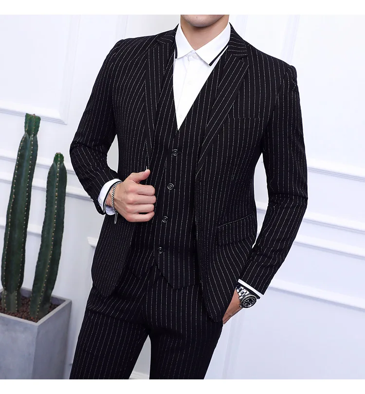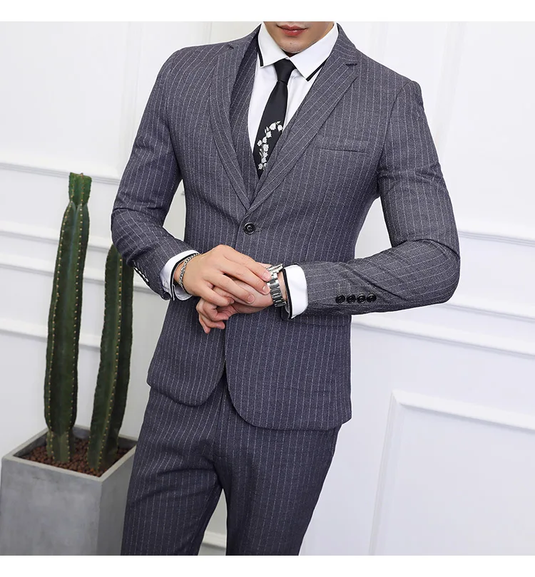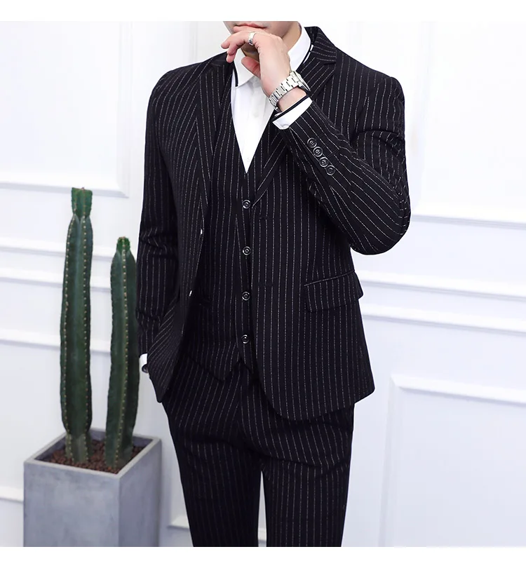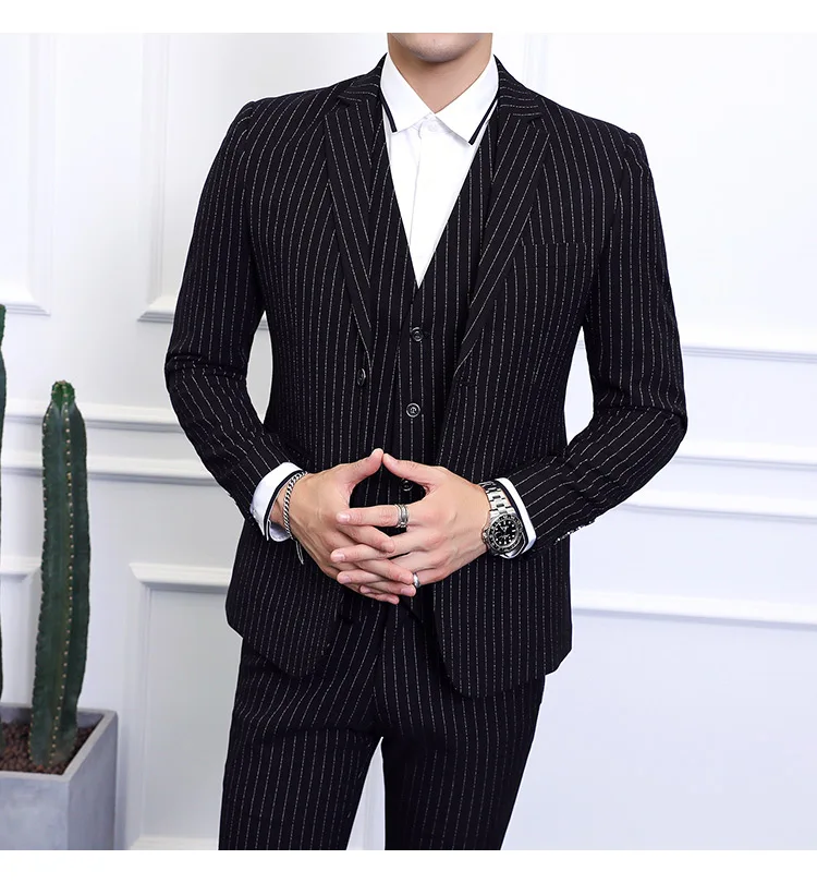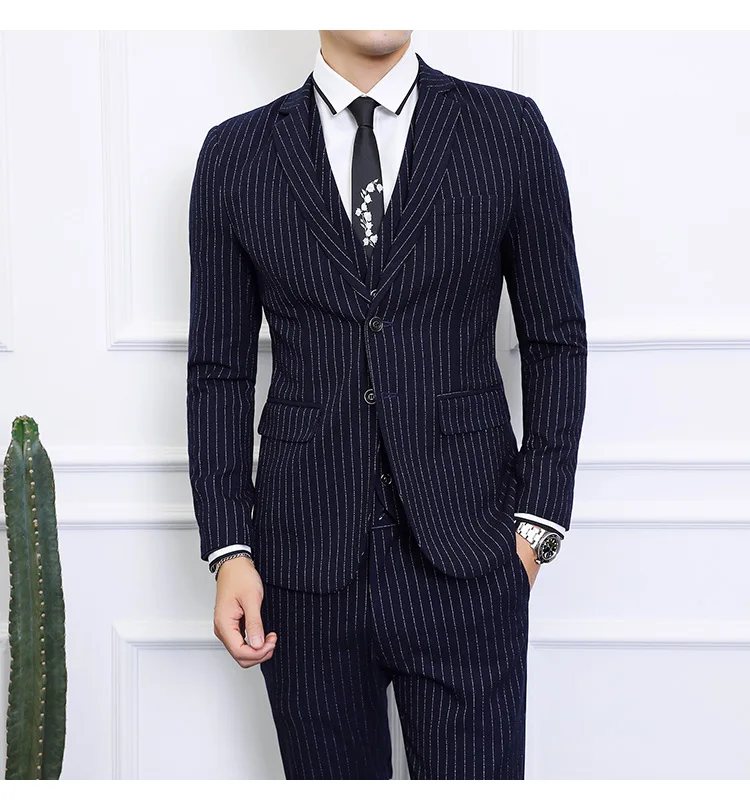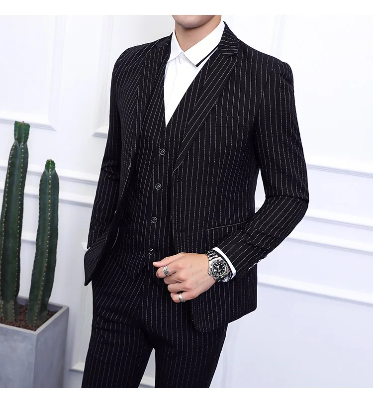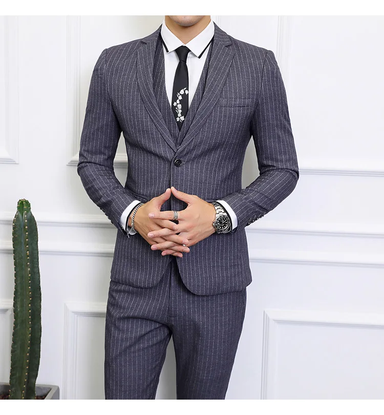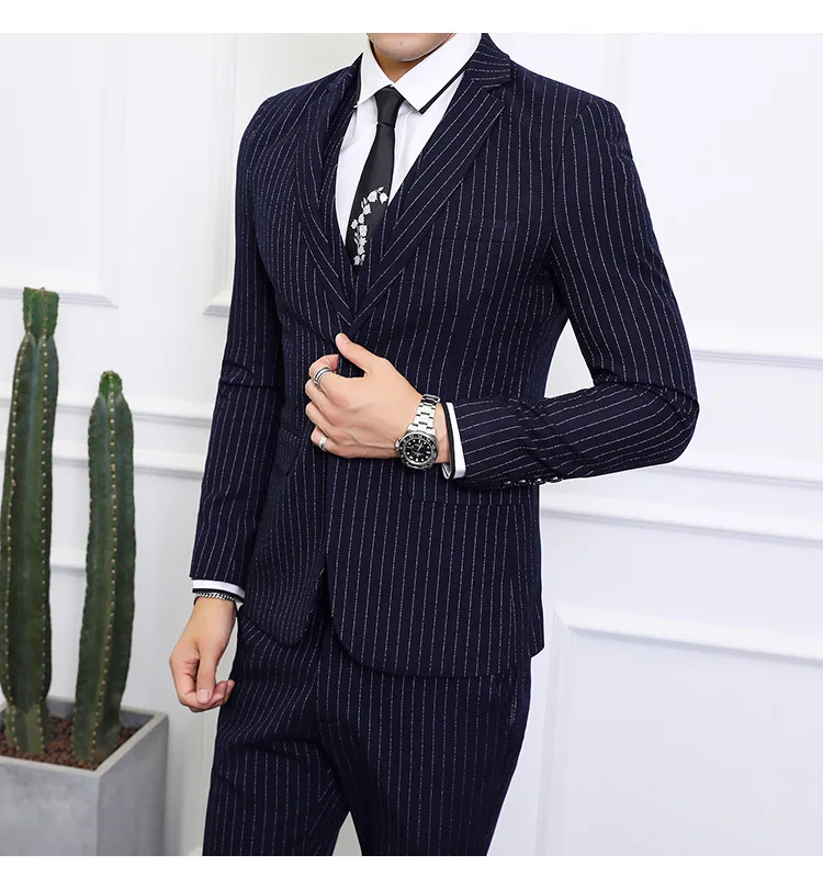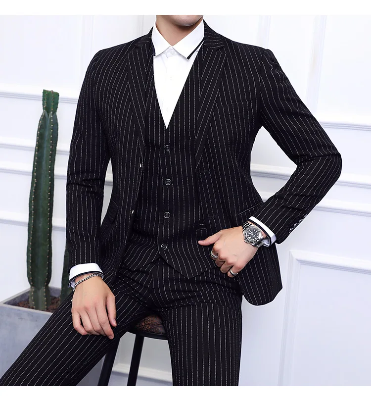 Aidase Men's Striped Suit Three-piece Large Size 6XL British Style Gentleman Business Banquet Wedding Host Fashion Quality Formal Suit