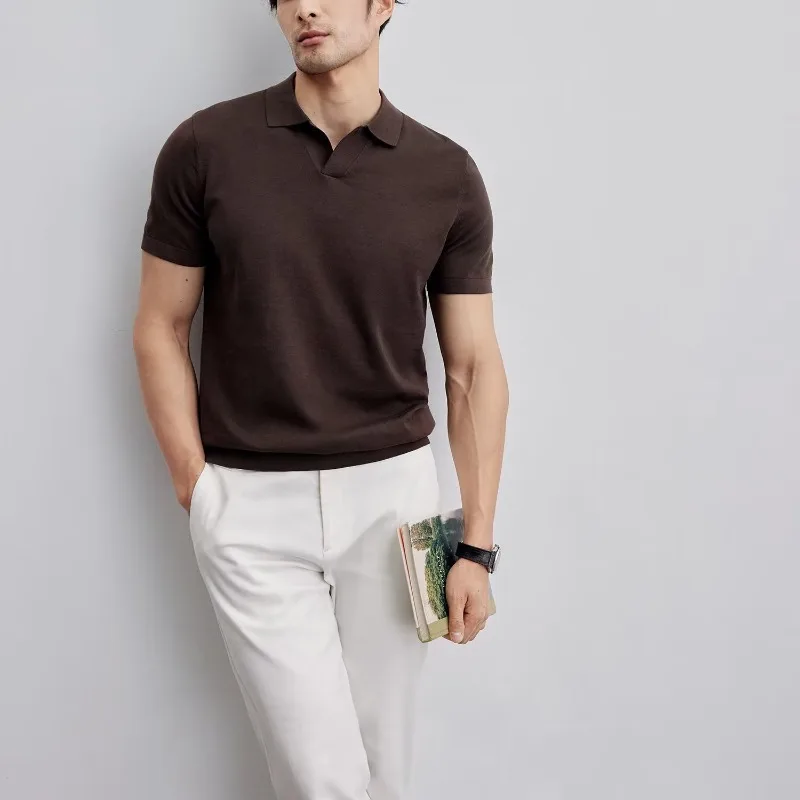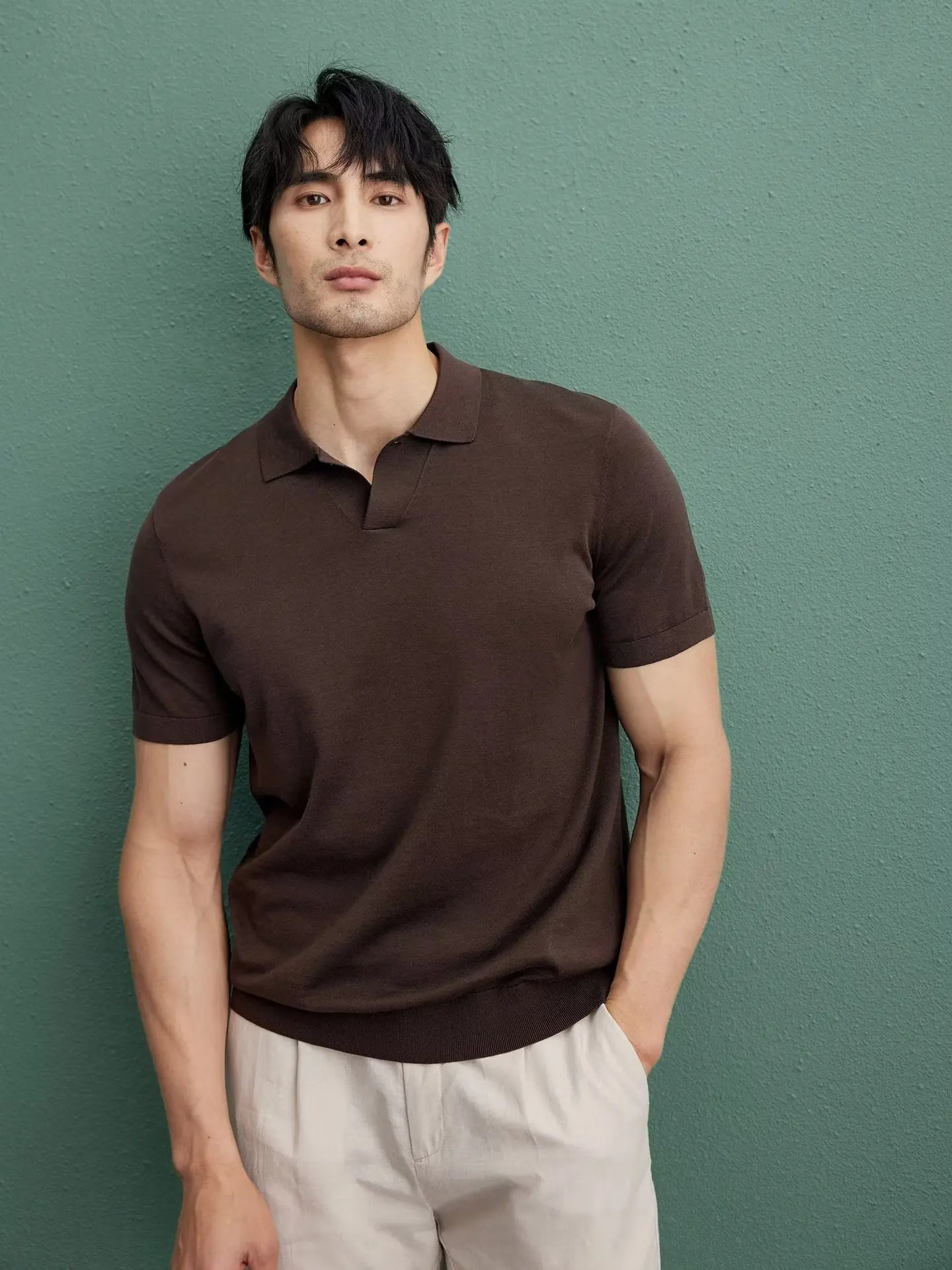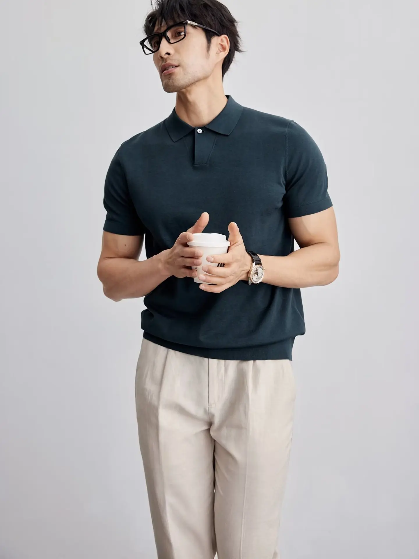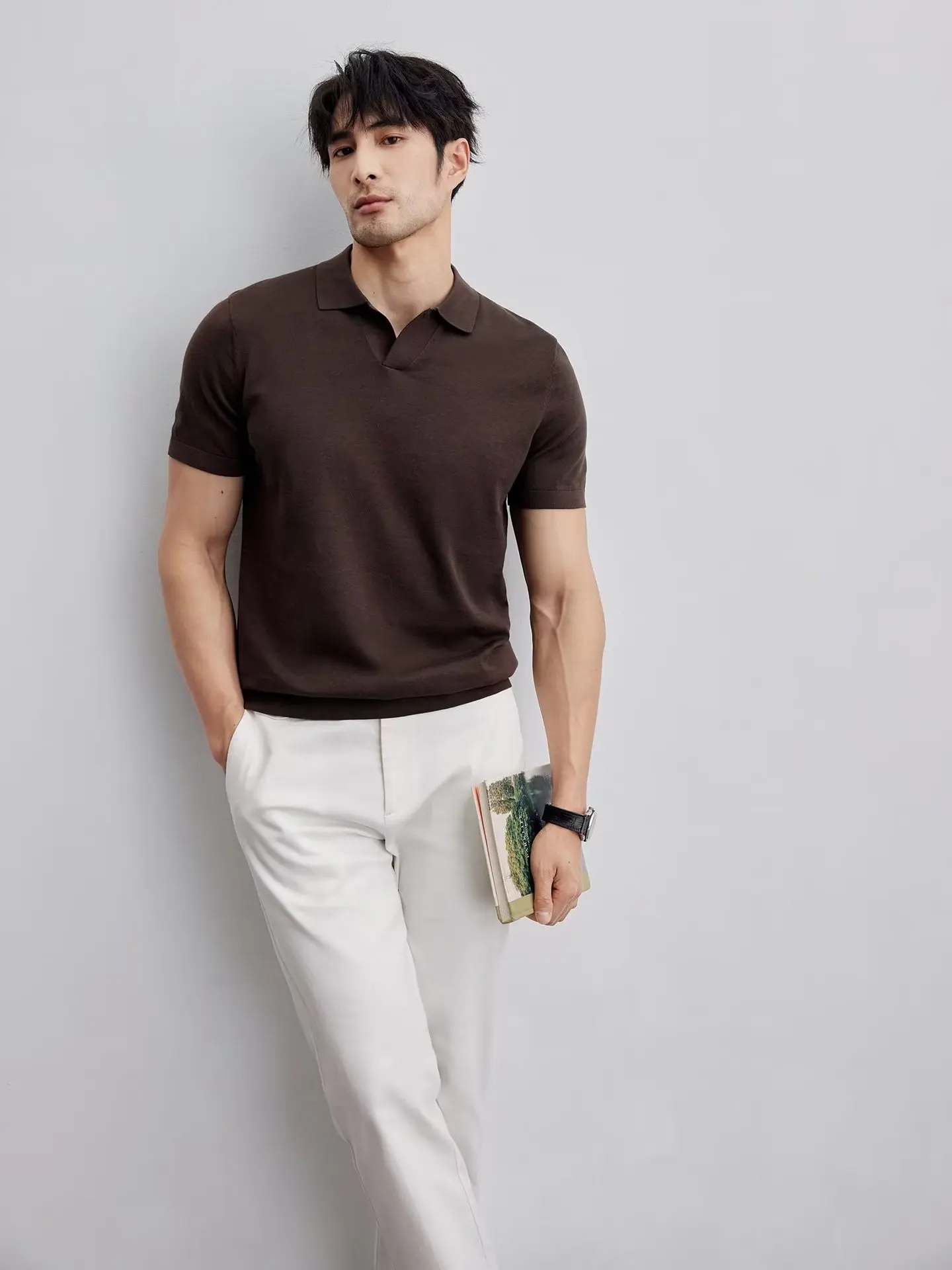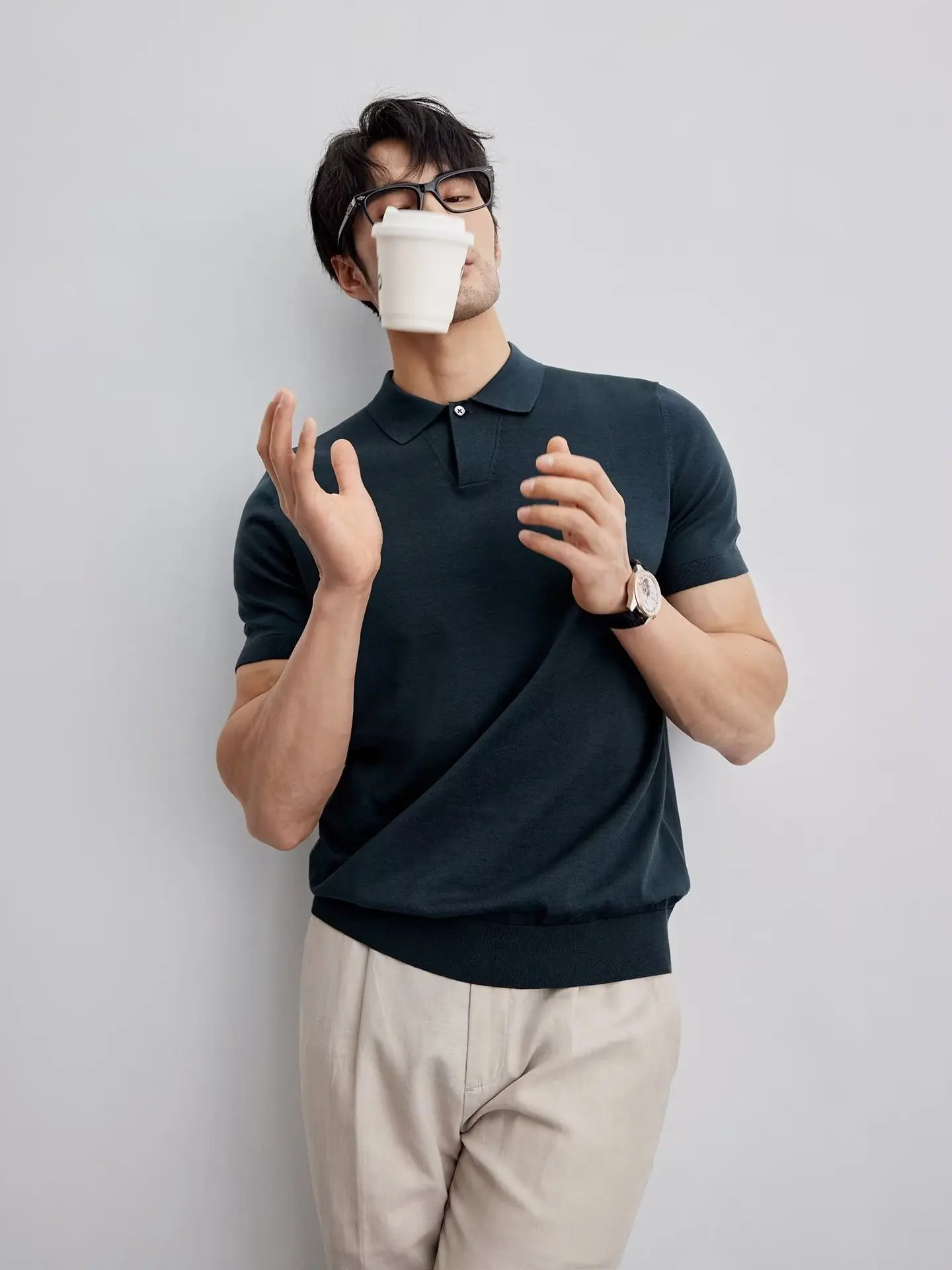 AIDASE - Men's Summer Casual Fashion Solid Color Versatile Slim FitPOLONew Knitted Short Sleeve Shirt