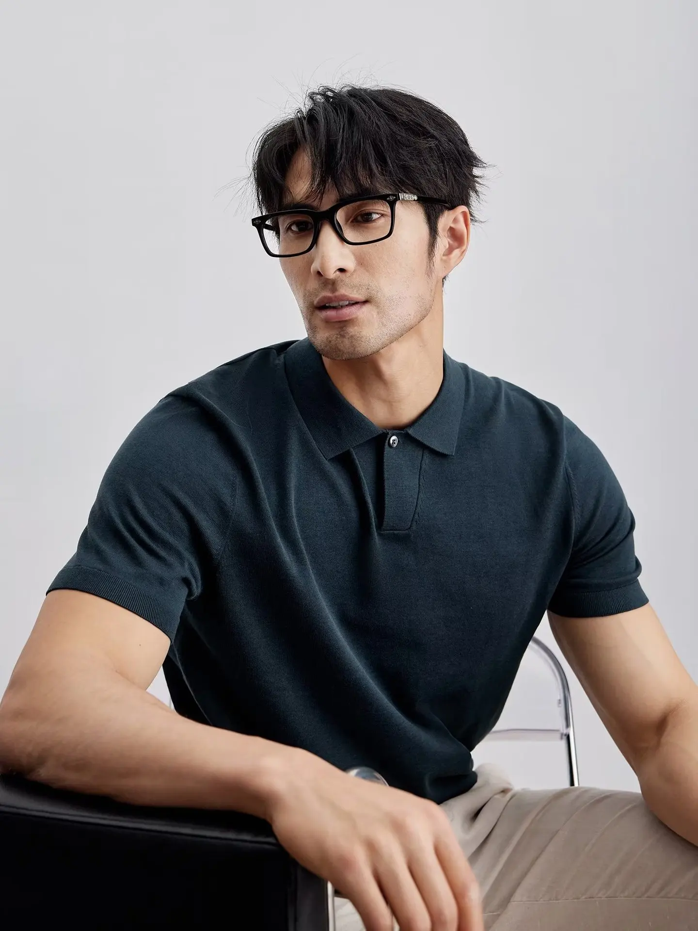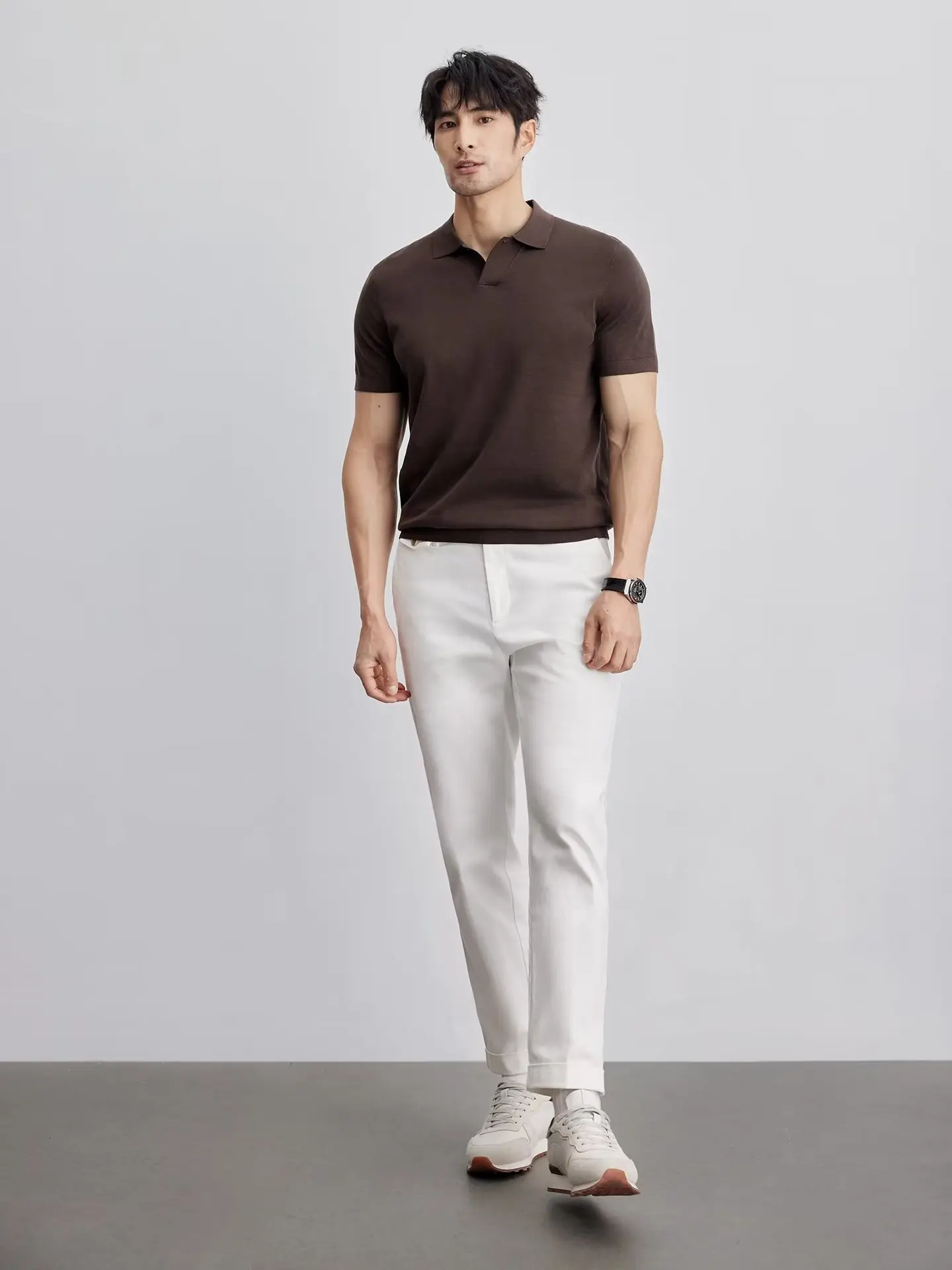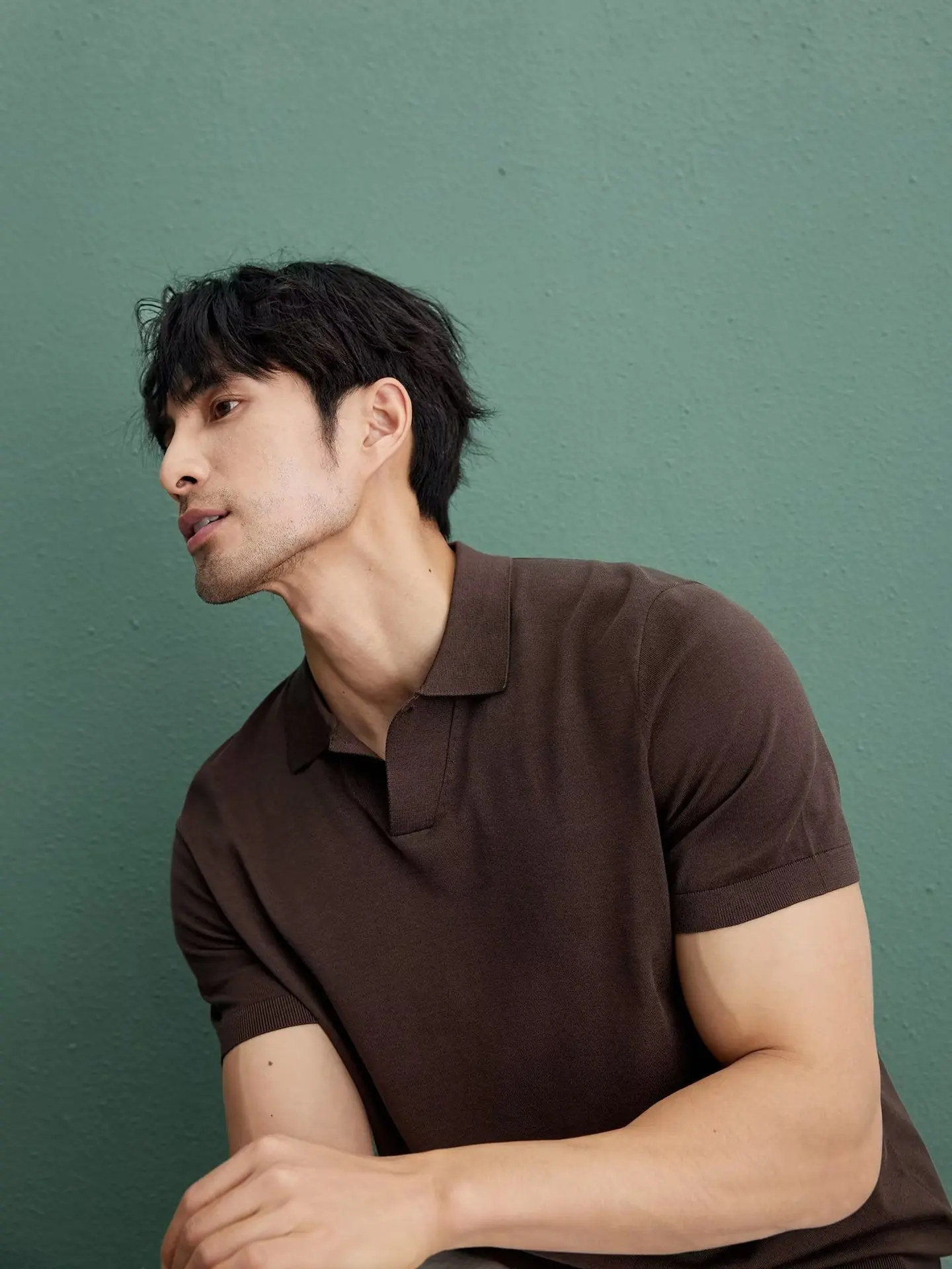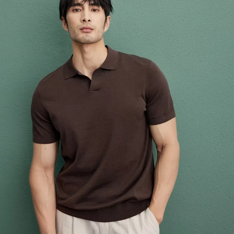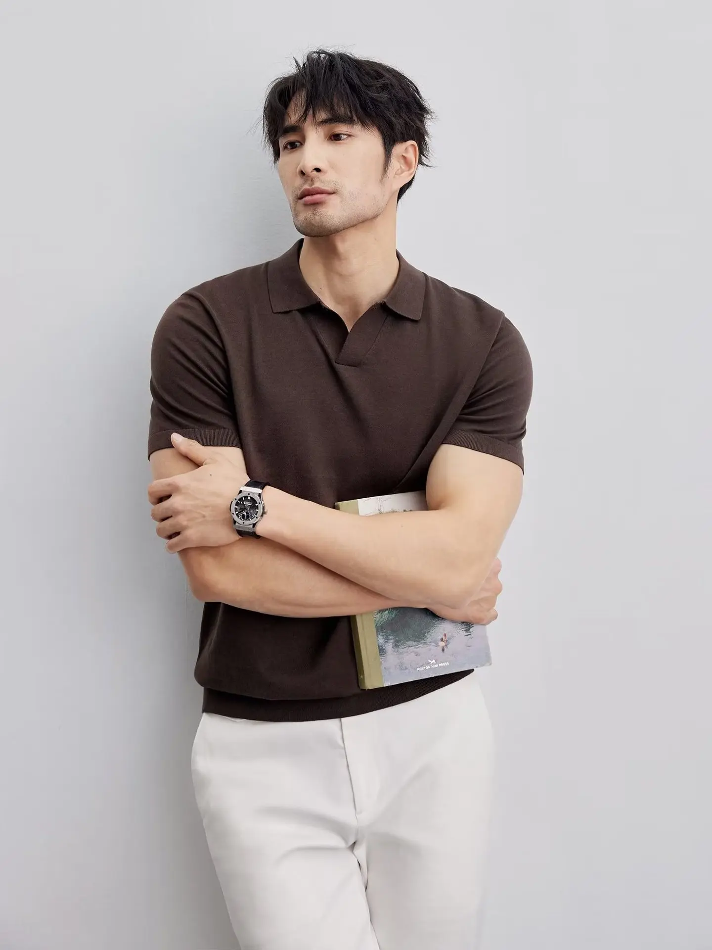 AIDASE - Men's Summer Casual Fashion Solid Color Versatile Slim FitPOLONew Knitted Short Sleeve Shirt