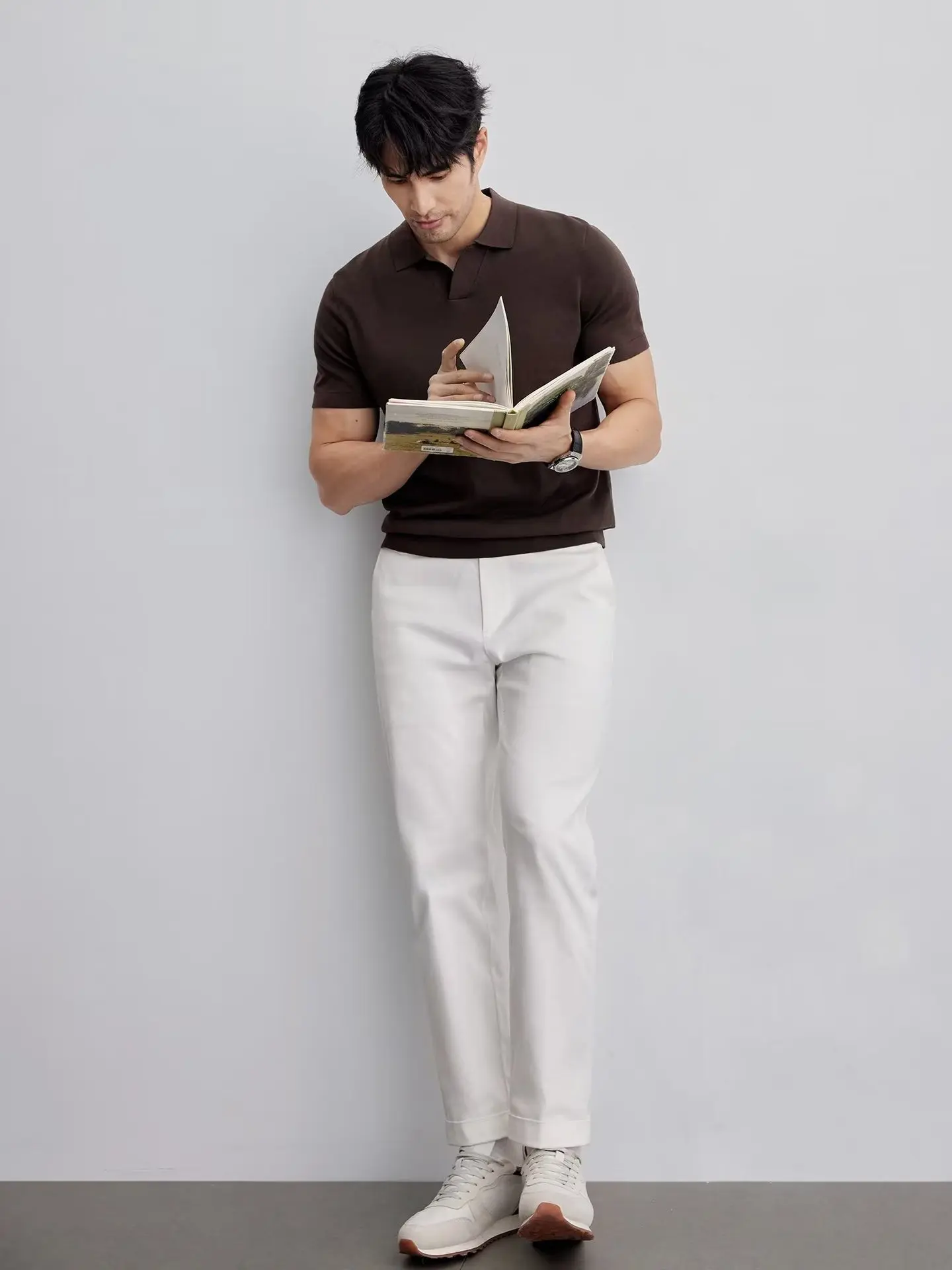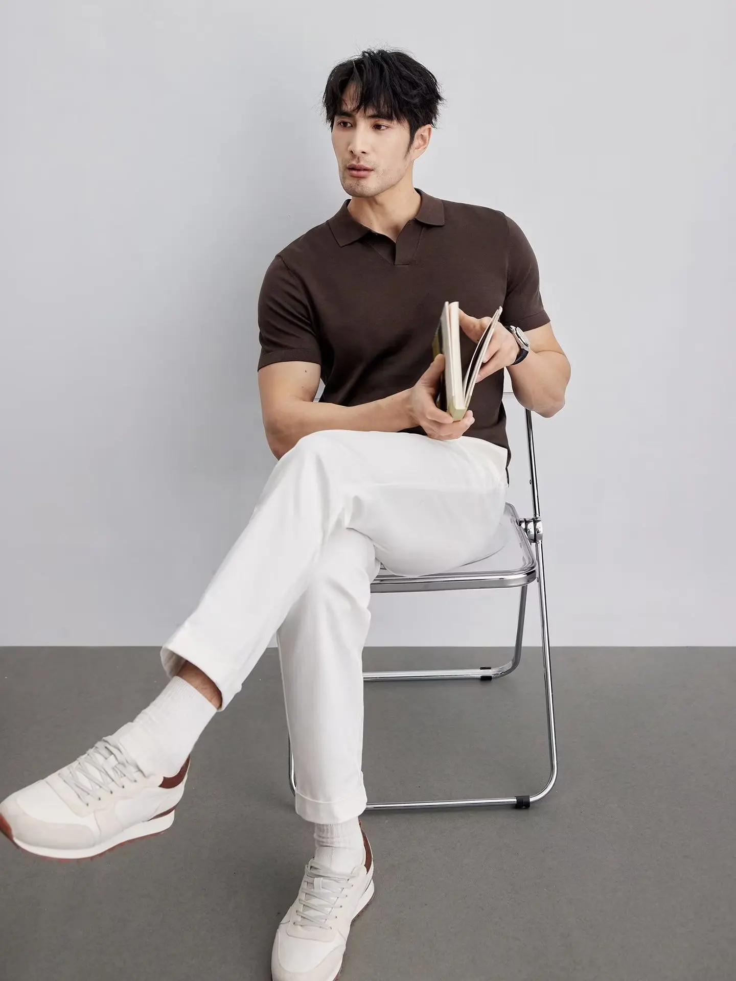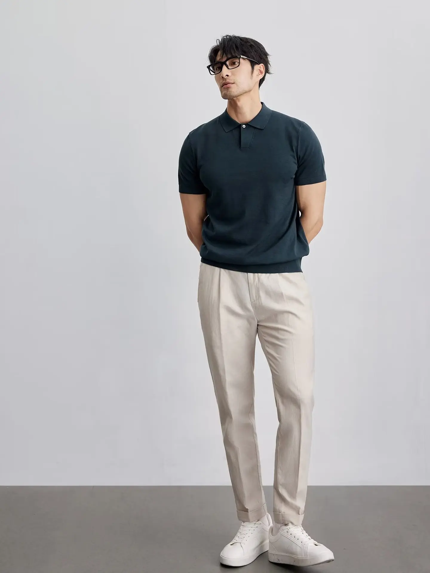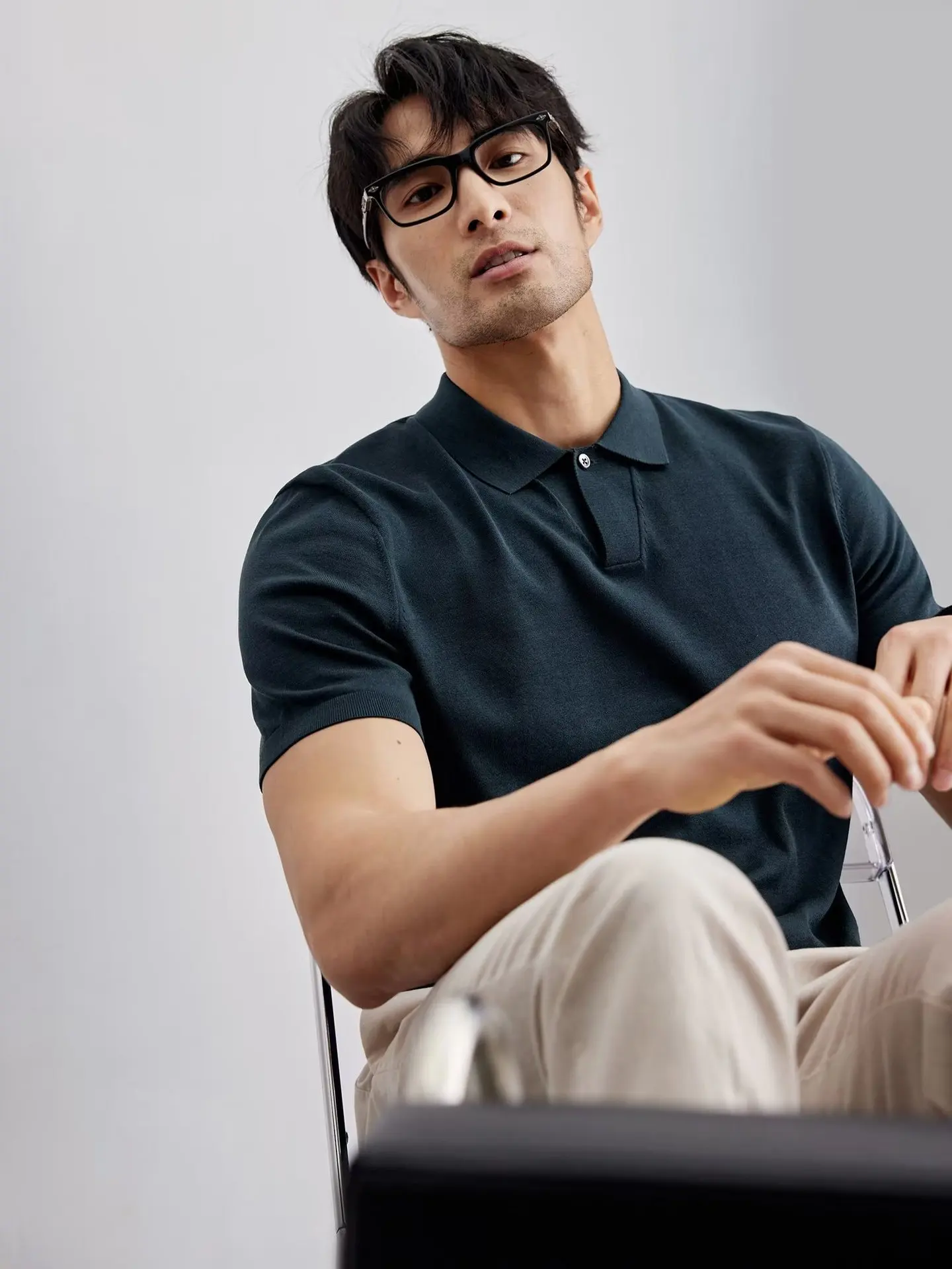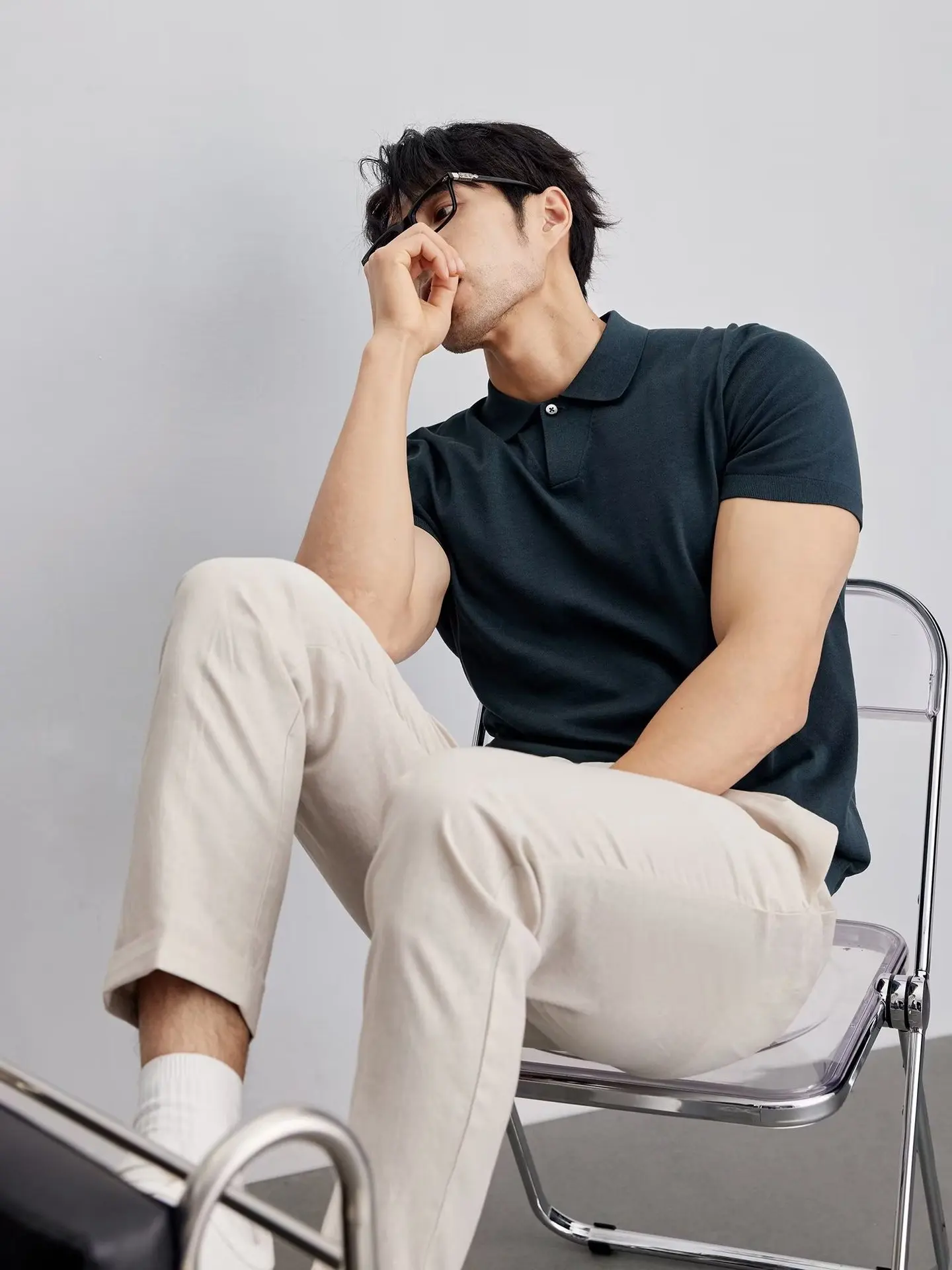 AIDASE - Men's Summer Casual Fashion Solid Color Versatile Slim FitPOLONew Knitted Short Sleeve Shirt