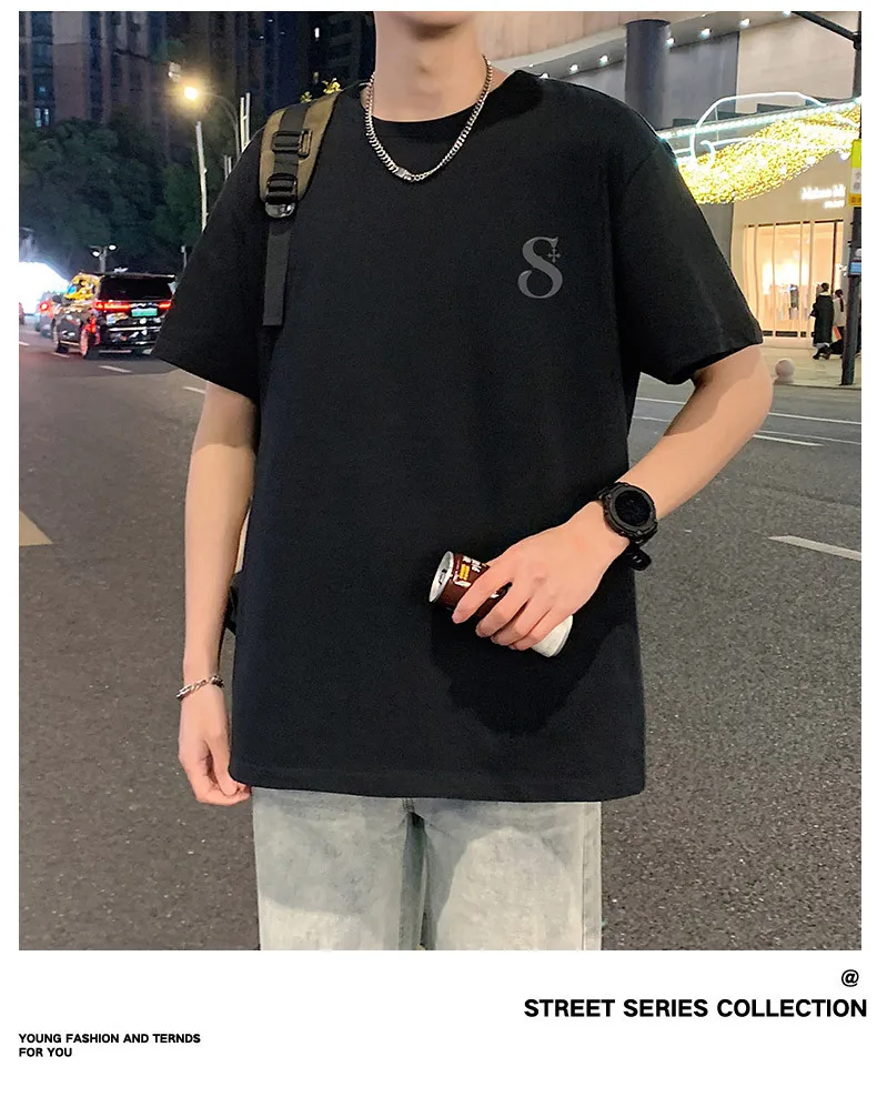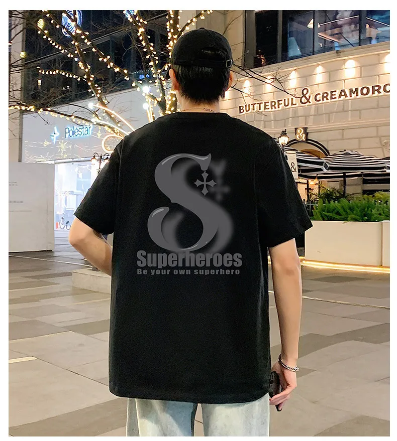 AIDASE - Men's T-Shirt 2025 Summer Trendy Personalized Letter Print Design Short Sleeve Round Neck Tees Versatile Menswear