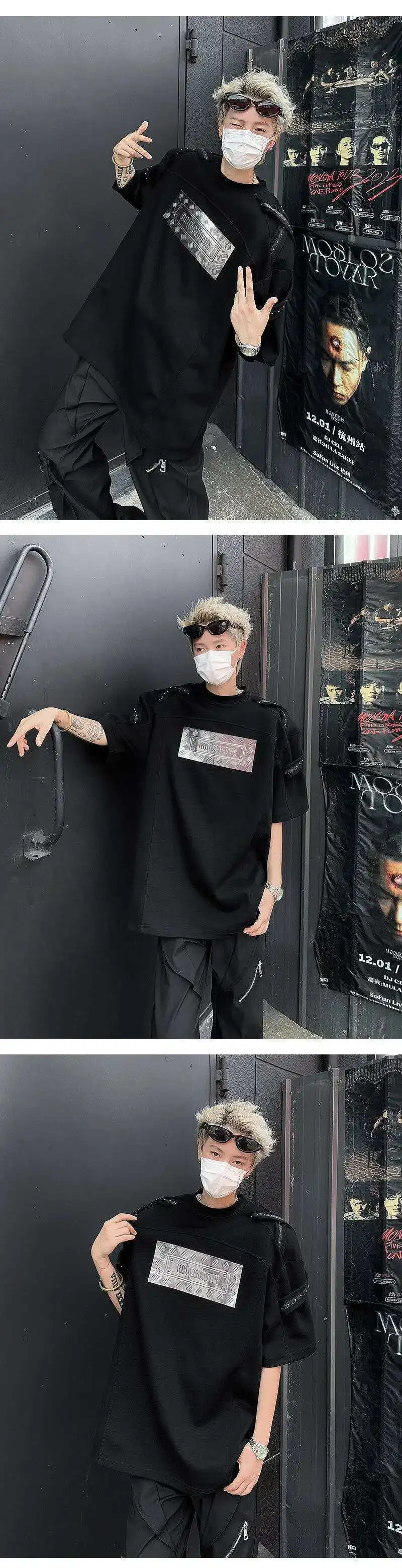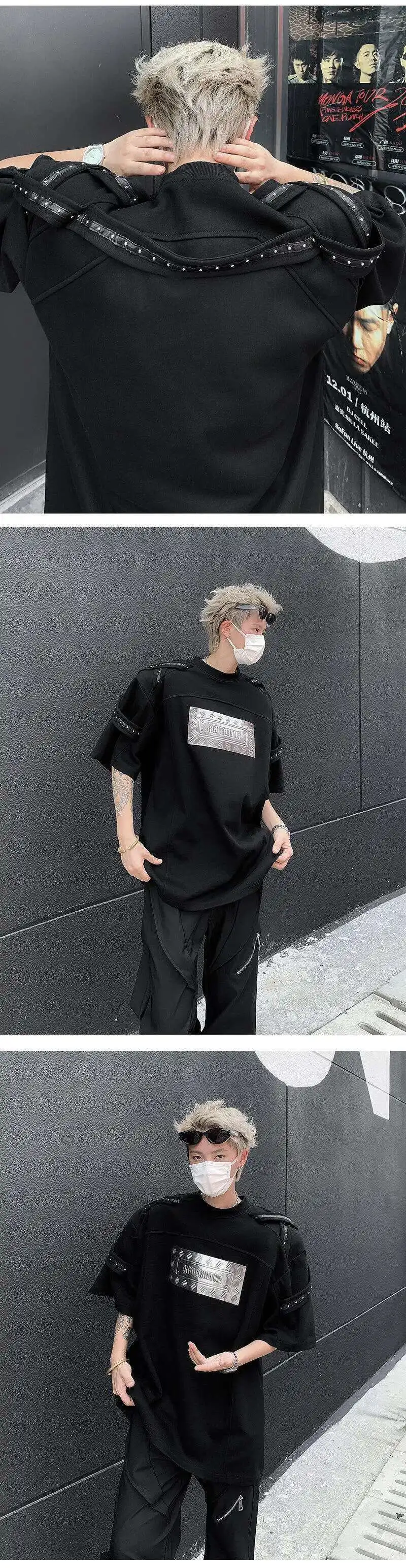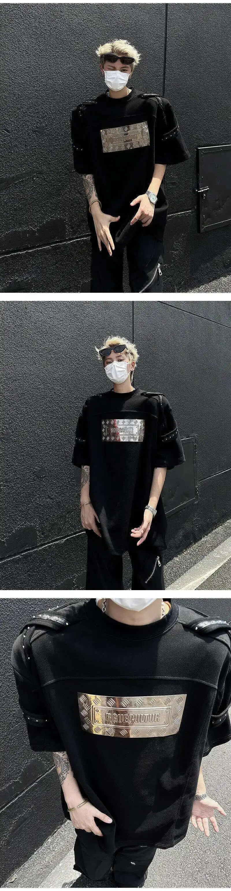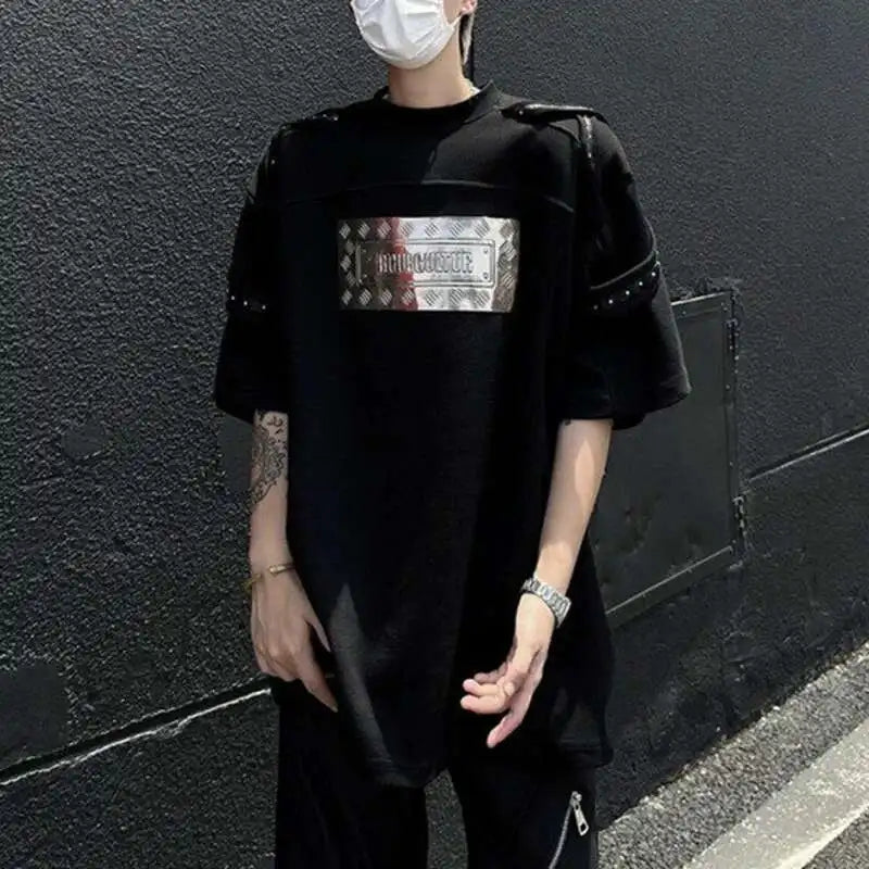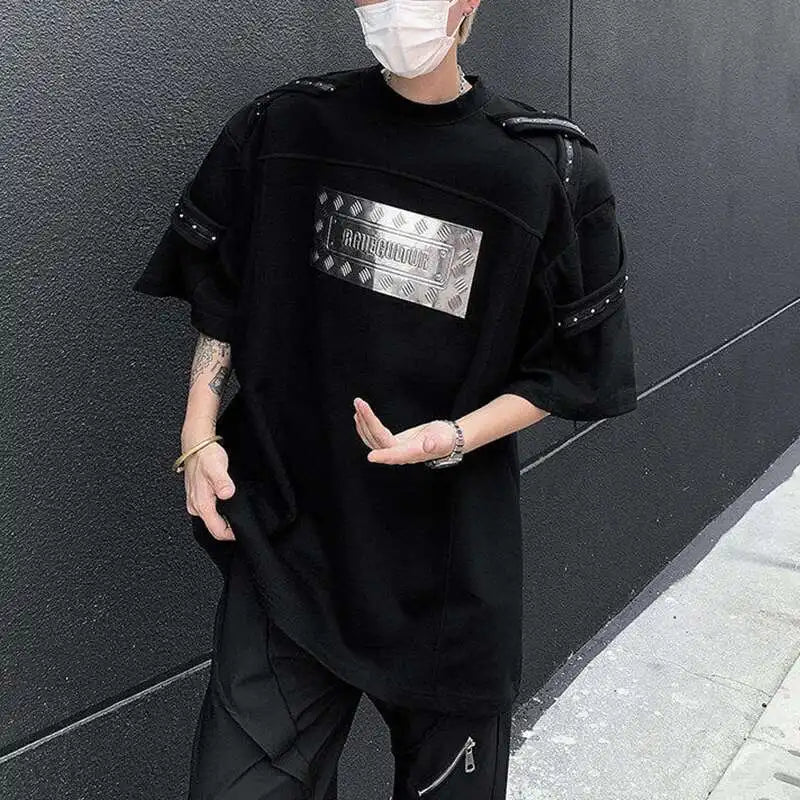AIDASE - Men's T-shirts Fashion Metal Rivets Belt Decoration Round Collar Short Sleeved Loose Pullover Niche Male Tees Summer