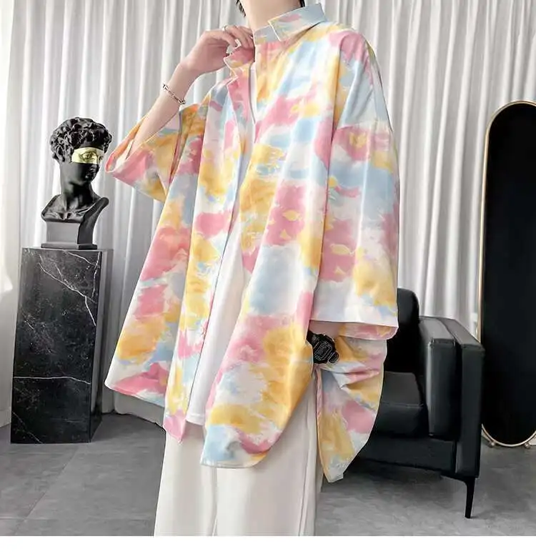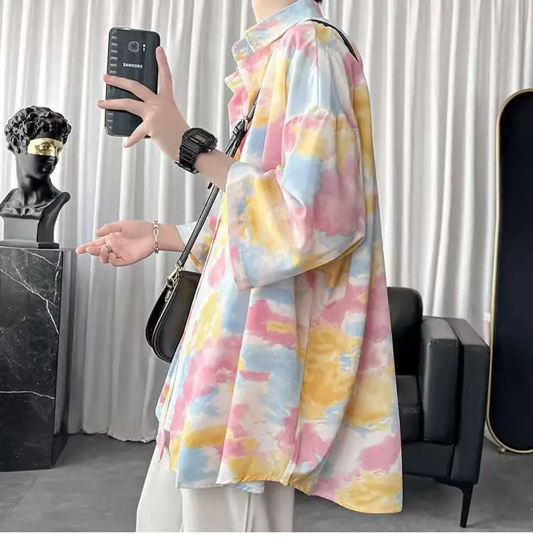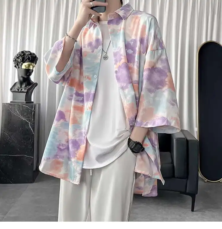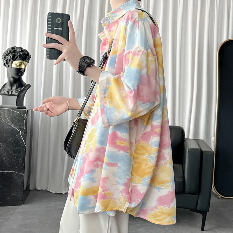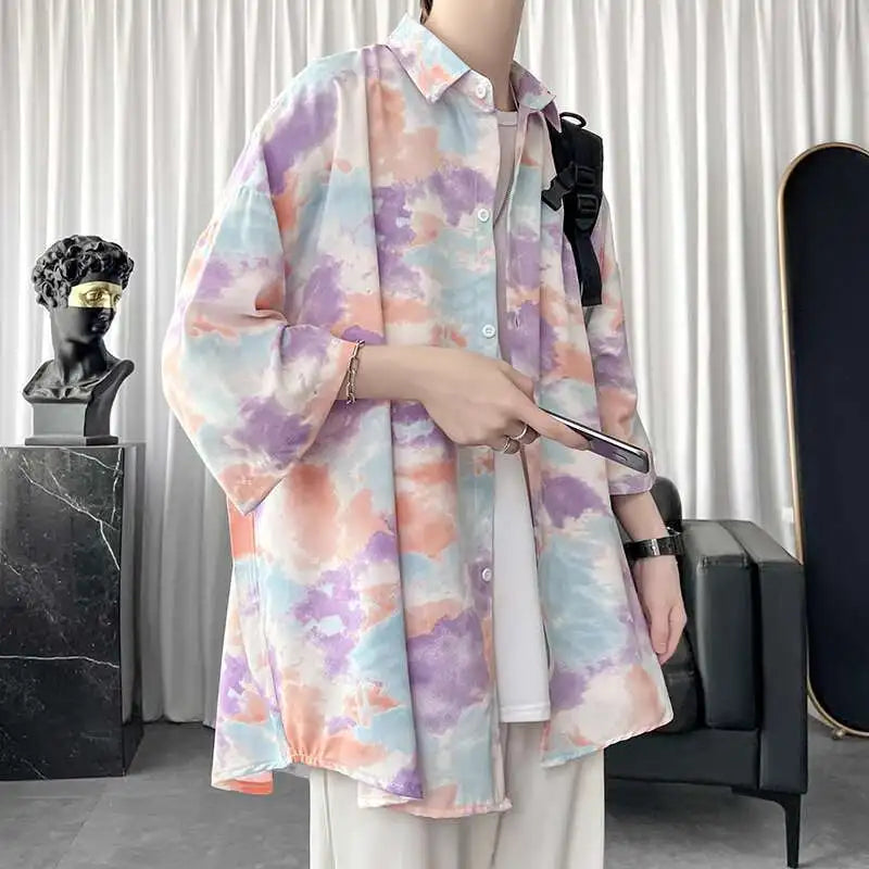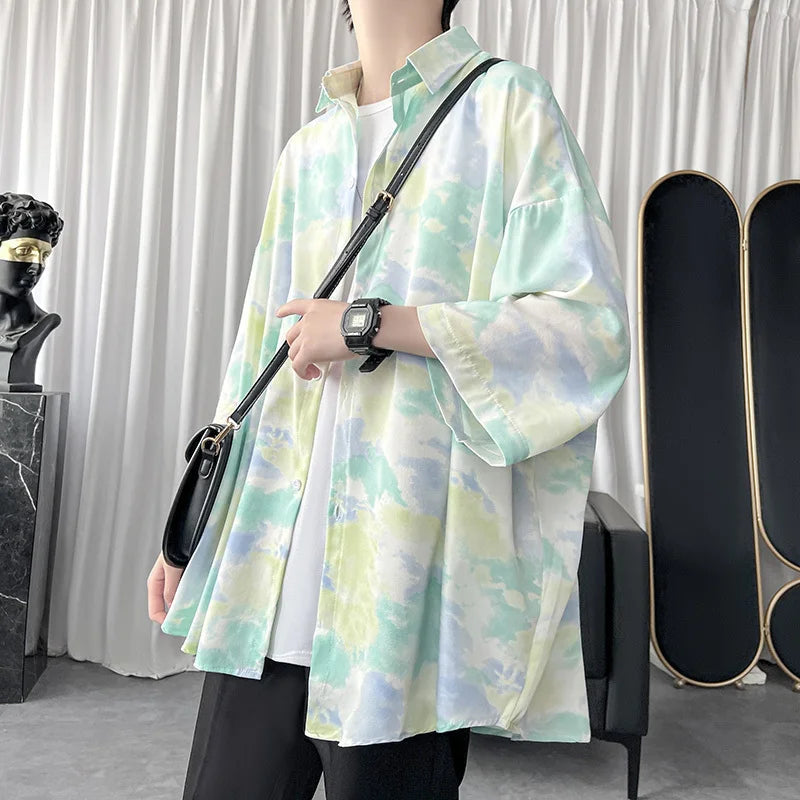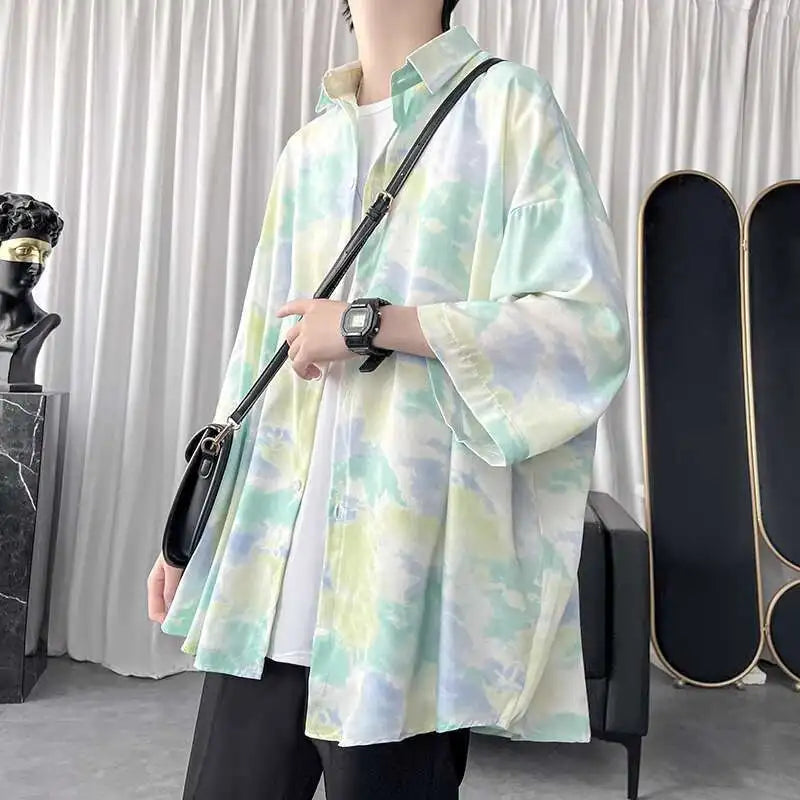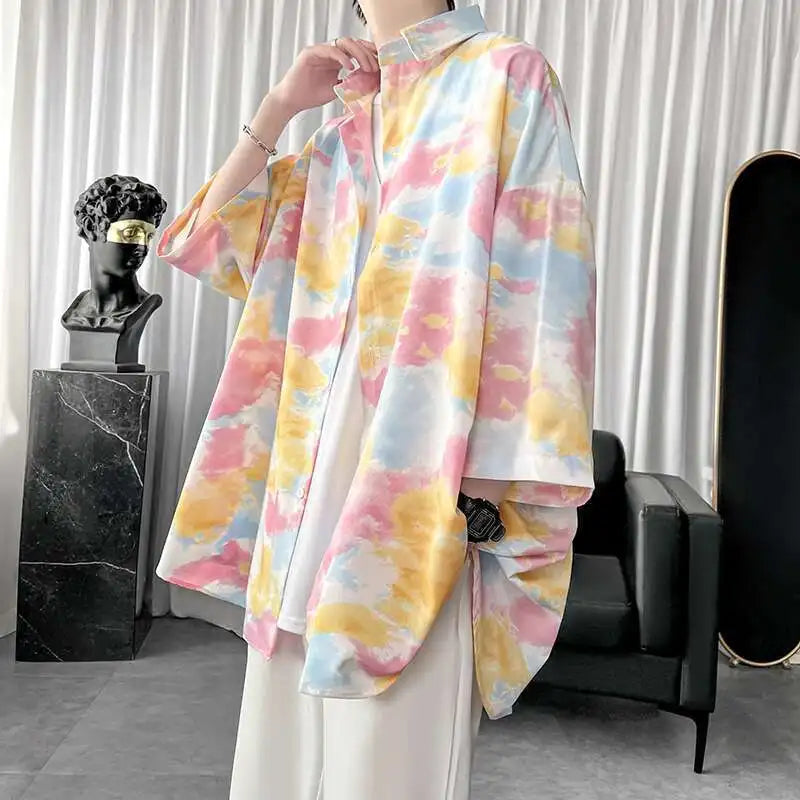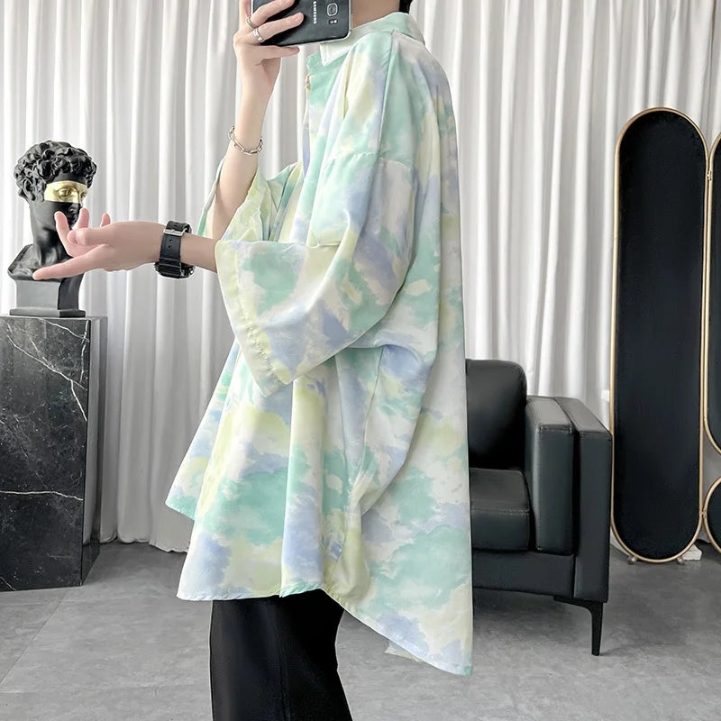 AIDASE - Men's Trendy Tie-Dye Short Sleeve Casual Shirt 2025 Summer New Fashion Lapel Single Breasted Tops Handsome Clothes 21E6522