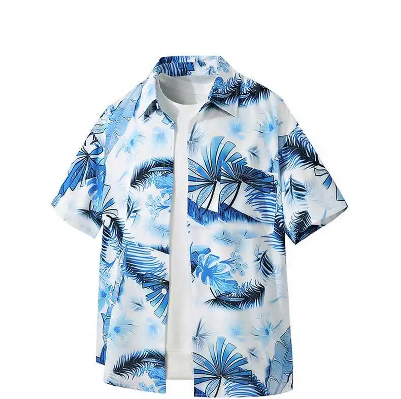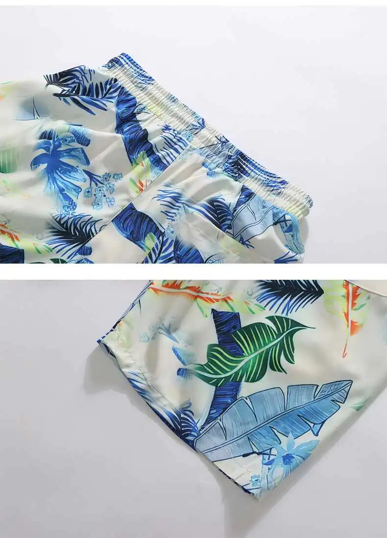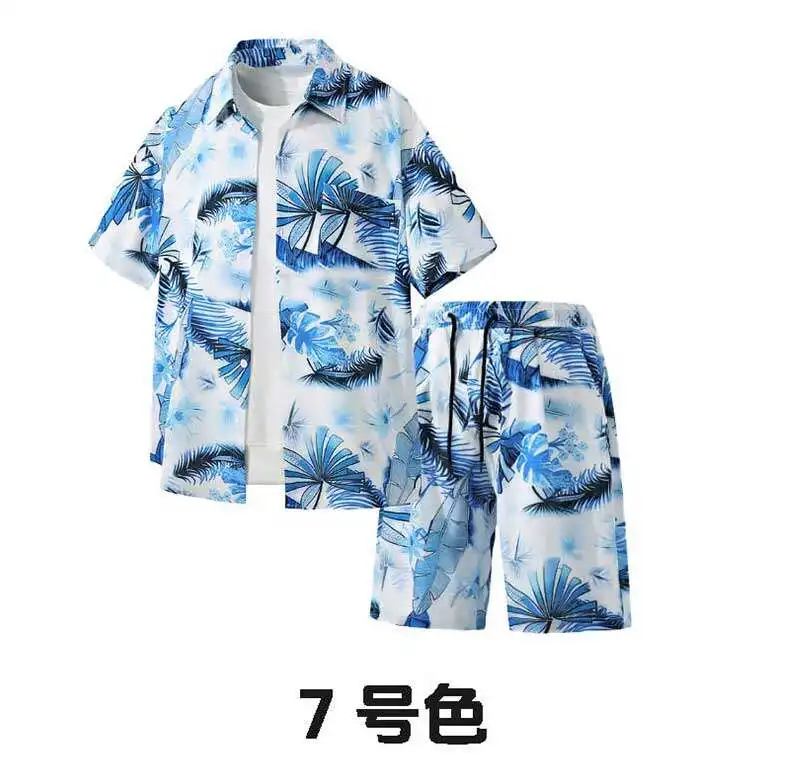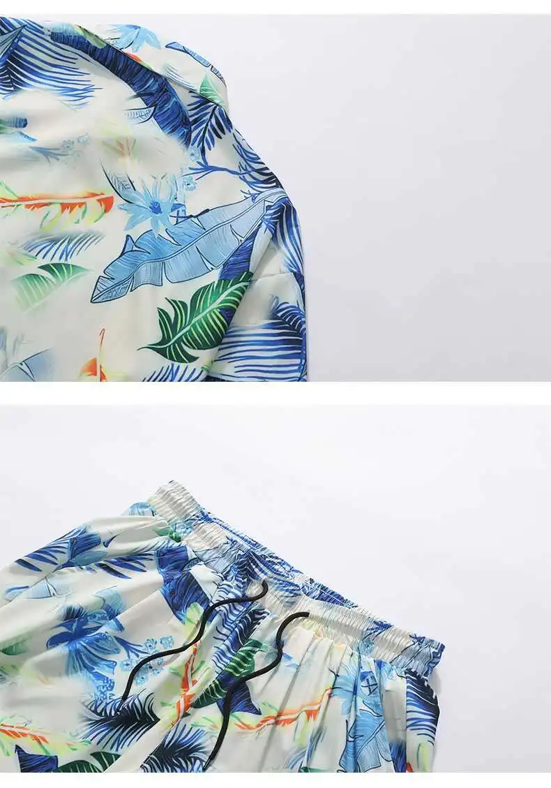 AIDASE - Men's Tropical Print 2 Piece Hawaiian Outfits Short Sleeve Button Down Shirt Tops and Shorts Set