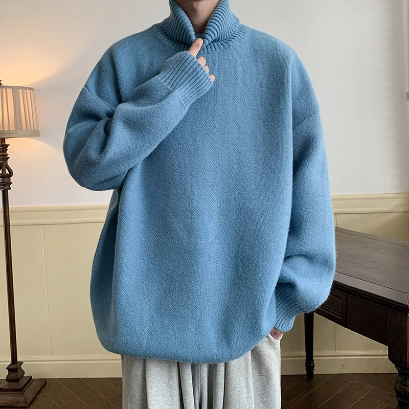 Aidase Men's Turtleneck Sweater Pullover Men Loose Casual Harajuku Korean Fashion Mens Oversized Sweater Fashion Thicken Warm Sweaters