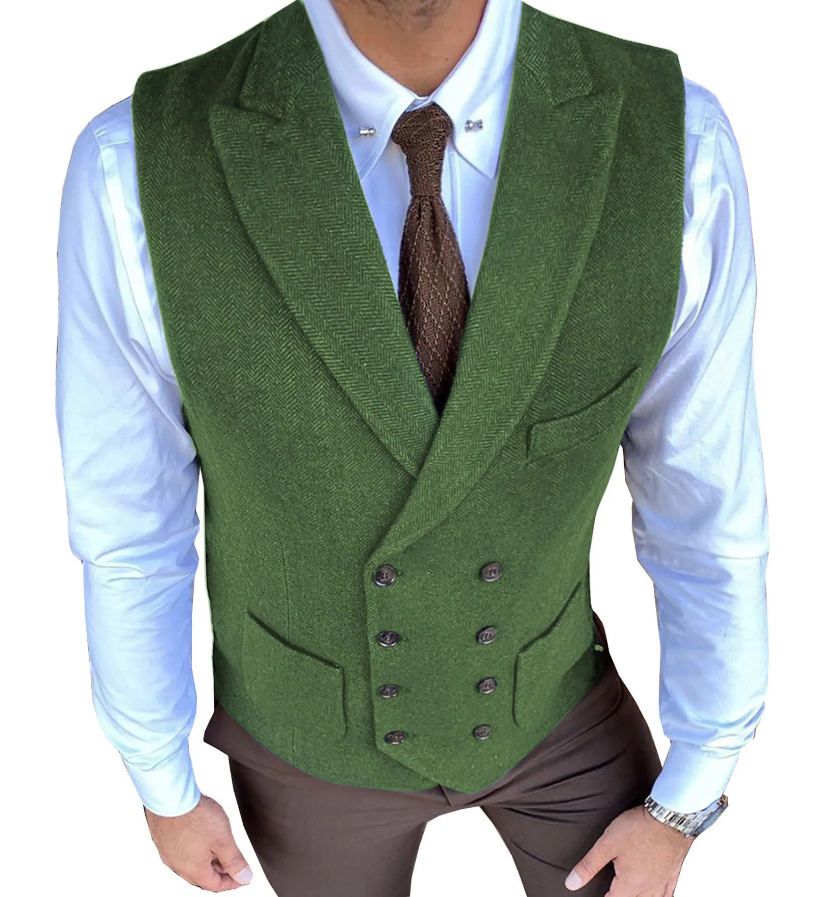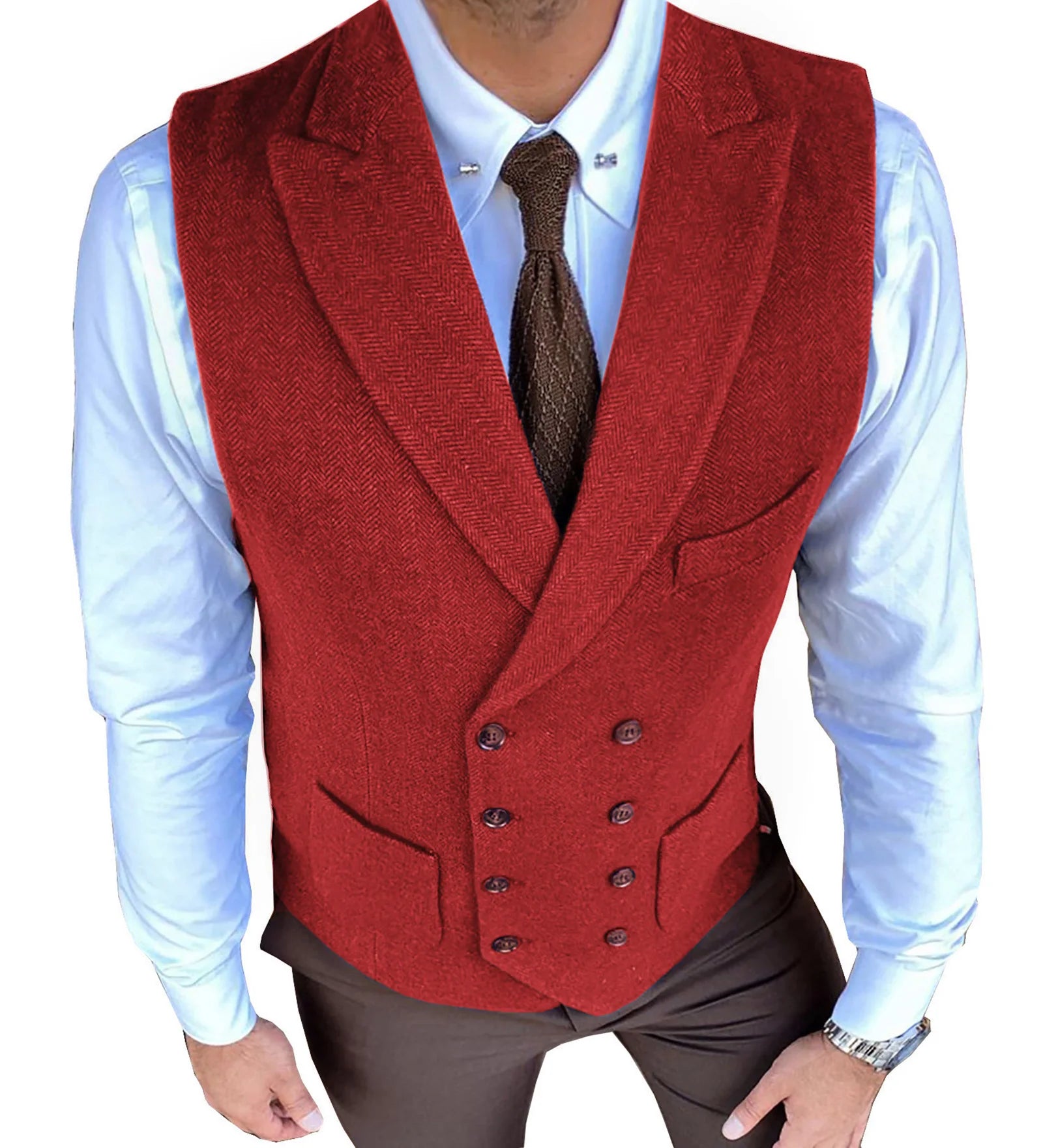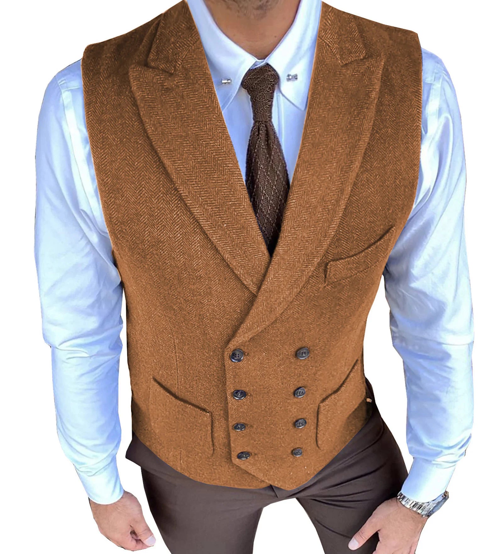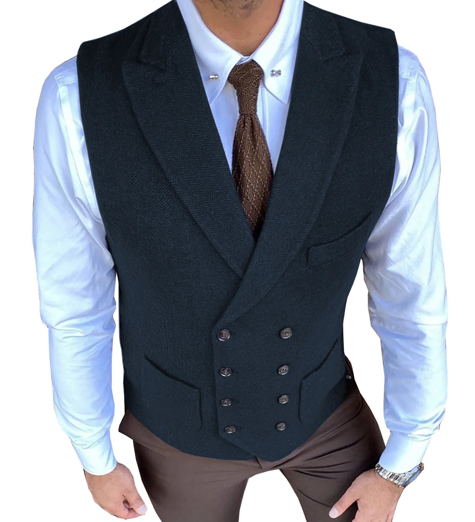 Men's Vest Casual Double Breasted Suit Vest Herringbone Pattern Notch Lapel Waistcoat for Groomsmen for Men Vest