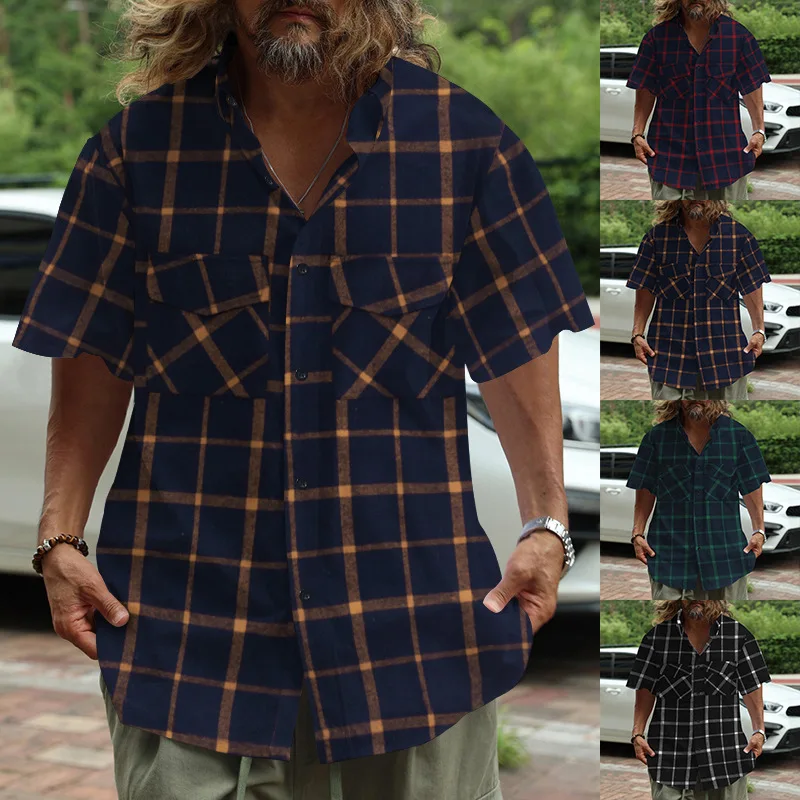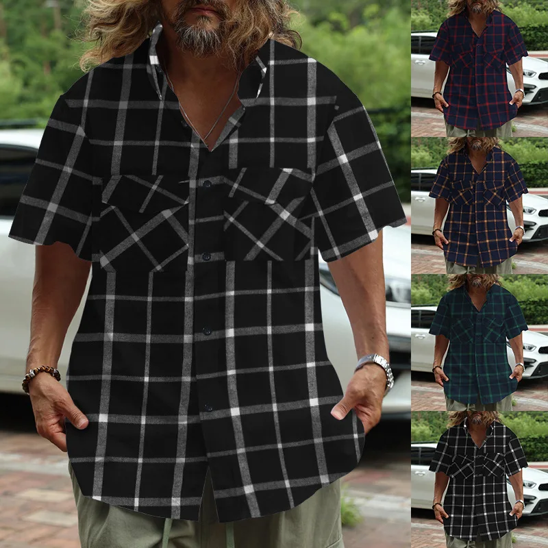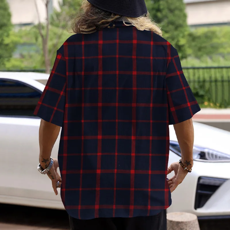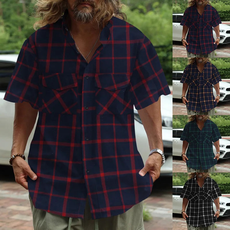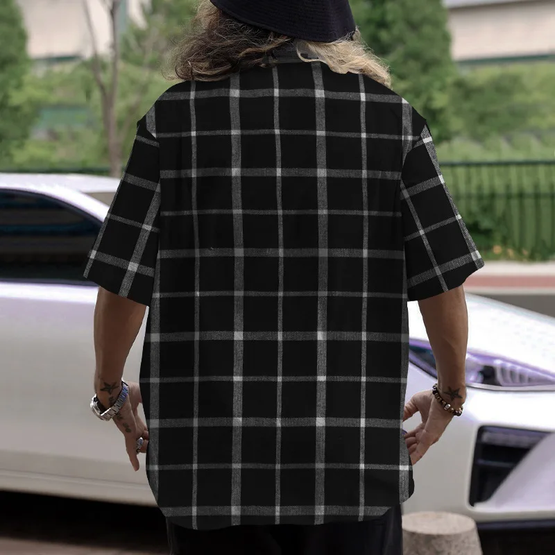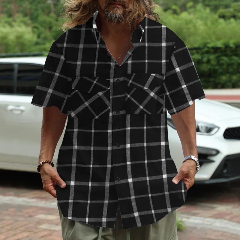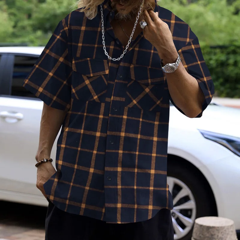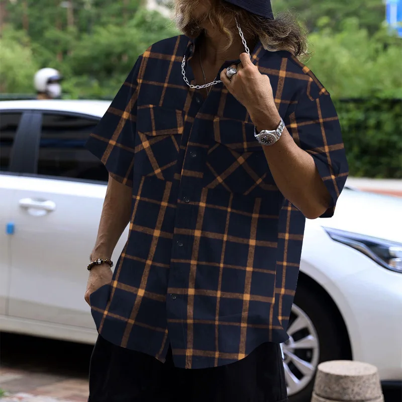 AIDASE - Men's viral trends Plaid-stitched button-down casual sports short-sleeved shirt
