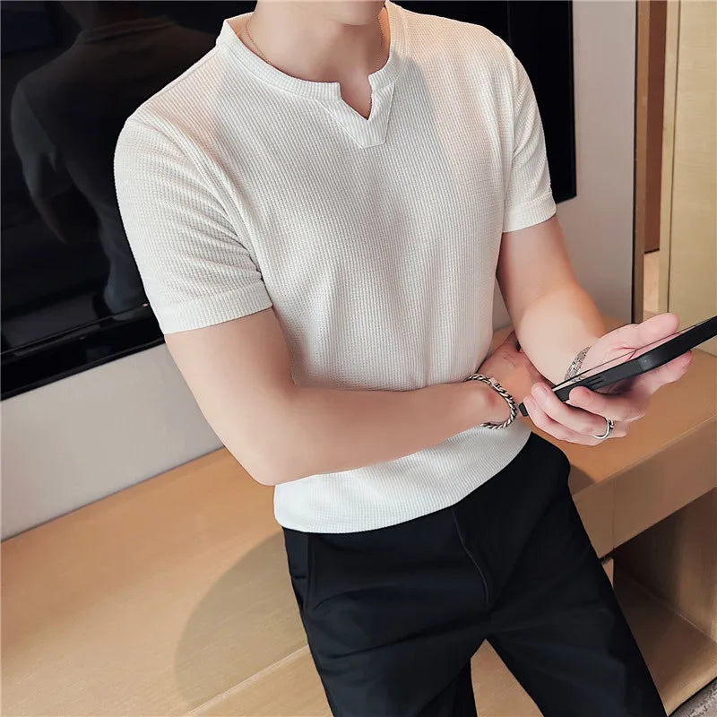 AIDASE - Men's Waffle Knit T-Shirt Short Sleeve - Premium Breathable Ice Silk Slim Fit Tee, Lightweight Casual Top, Coffee