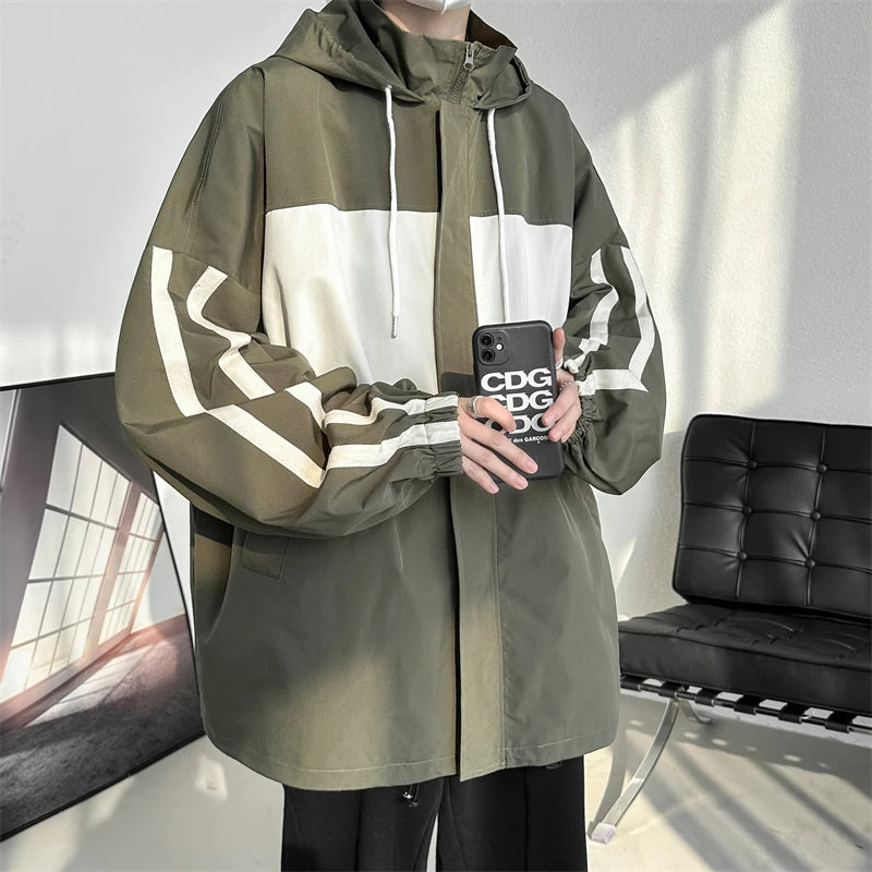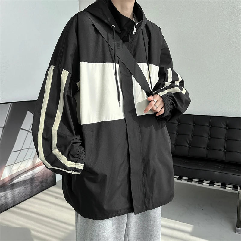 New Autumn Men Trend Jackets Streetwear Loose Windbreaker Coats Jaqueta Masculina Mens Clothing Outwear Black Plus Size M-5XL