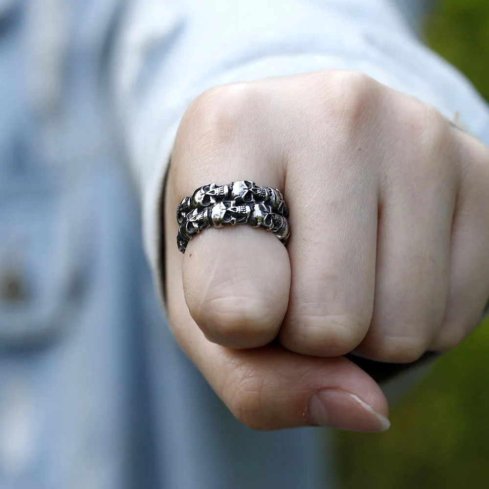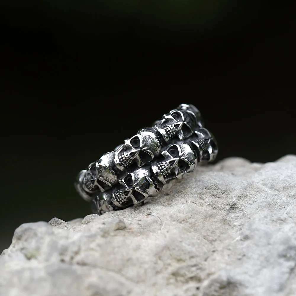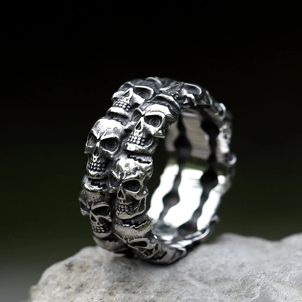 Aidase NEW Men's 316L stainless steel rings Unique Skull ring Vintage Aegishjalmur PUNK Jewelry Gifts