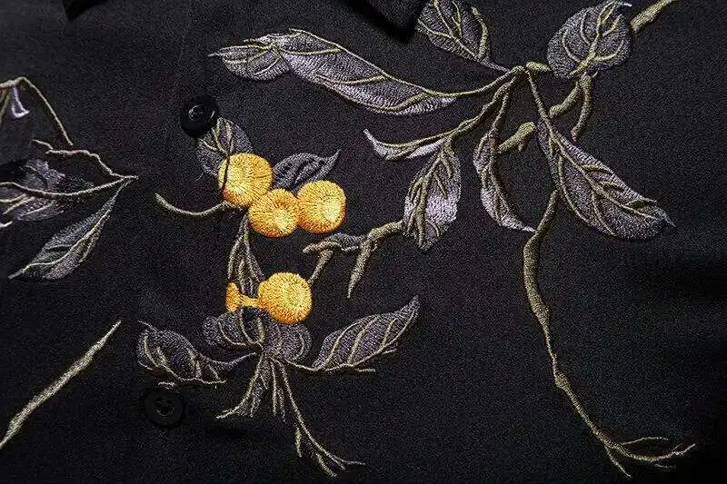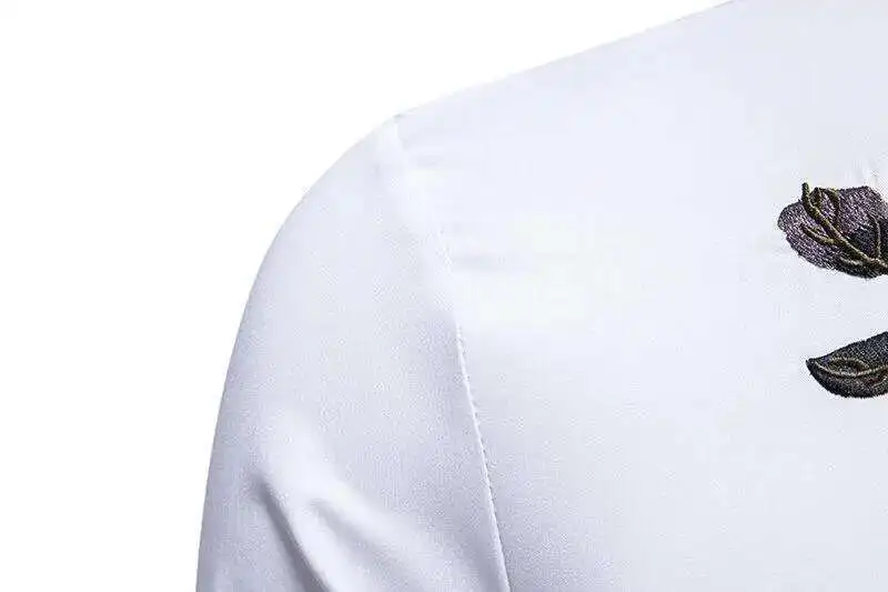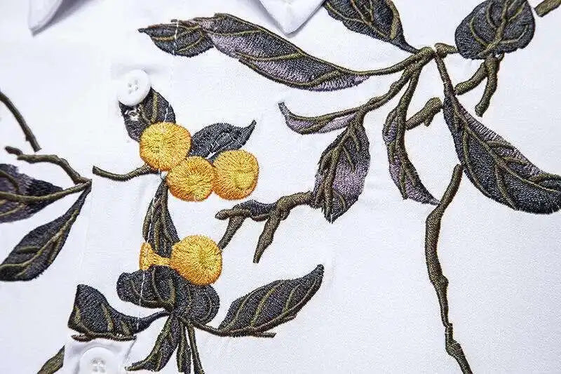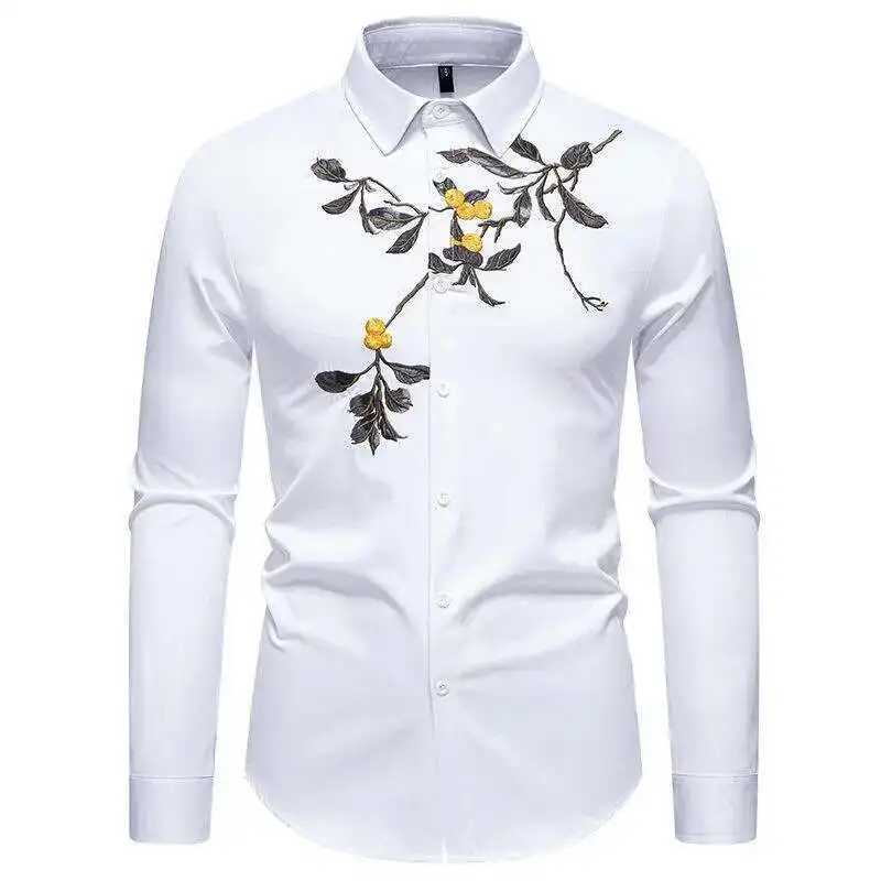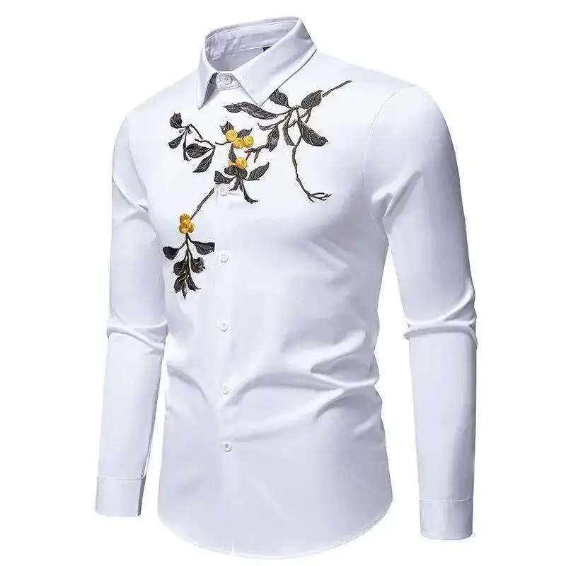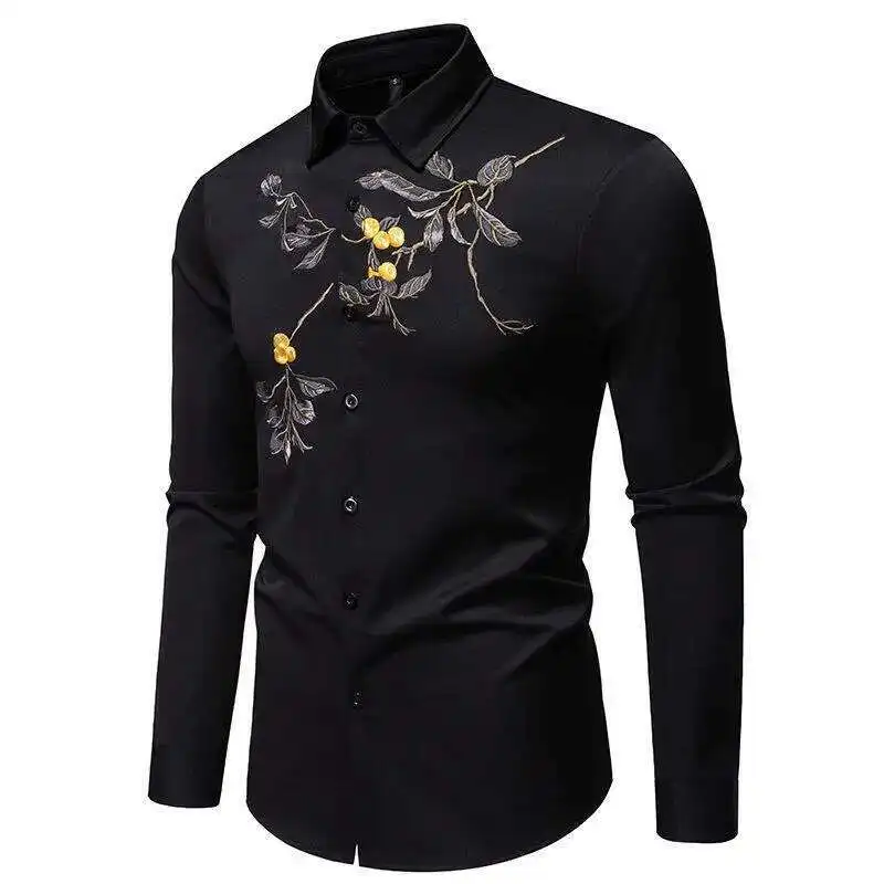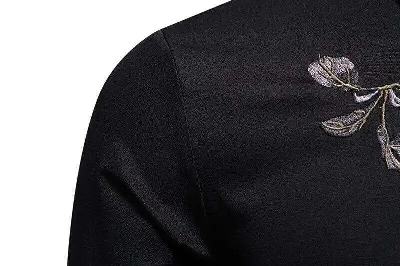 AIDASE - New Men's Floral Embroidered Long Sleeved Shirt Single Breast Luxury Male Tops Contrast Color