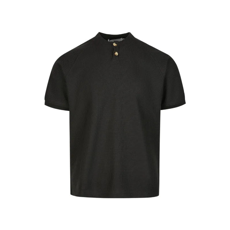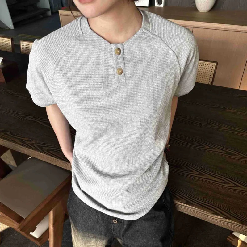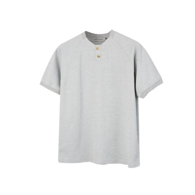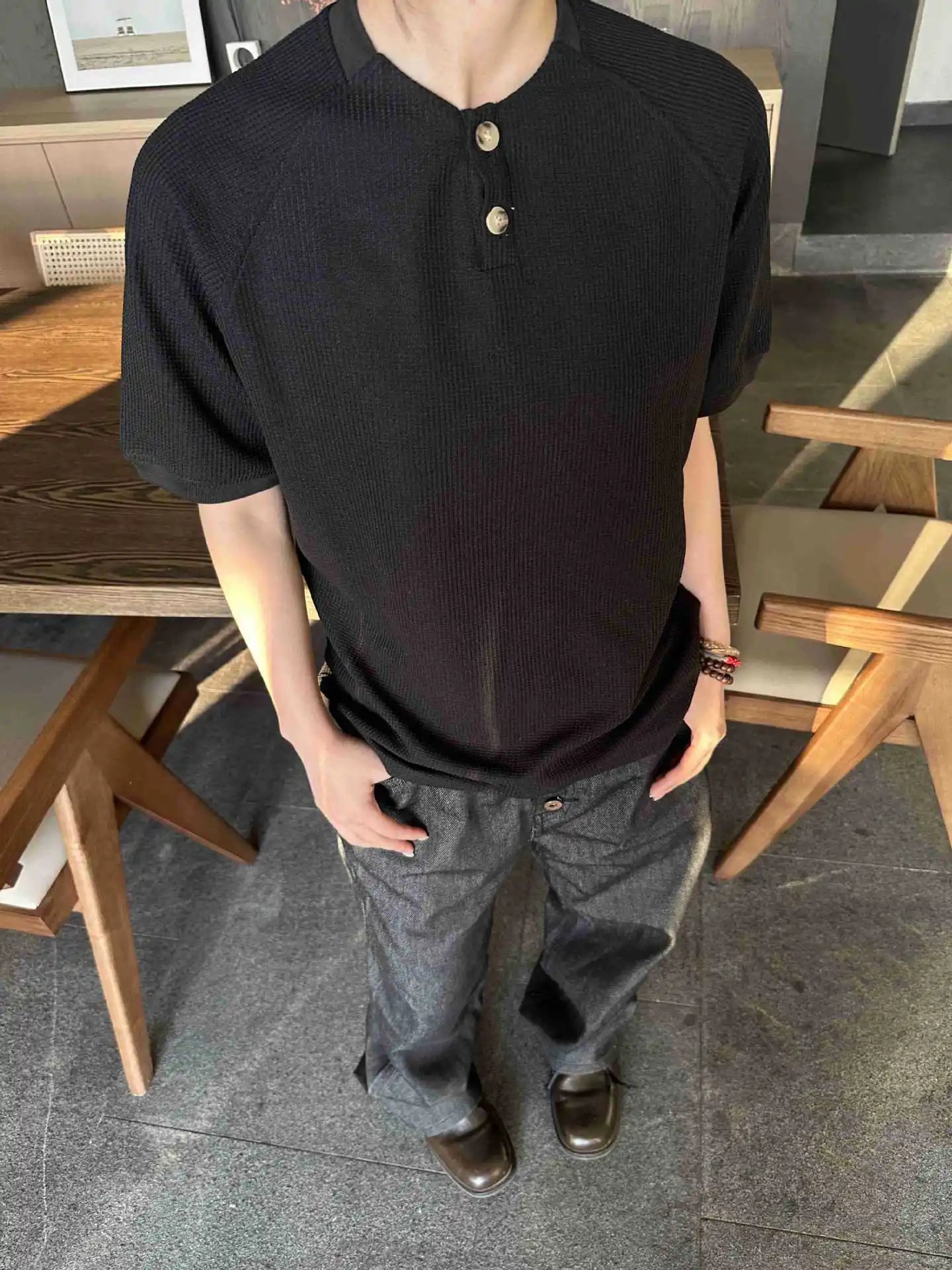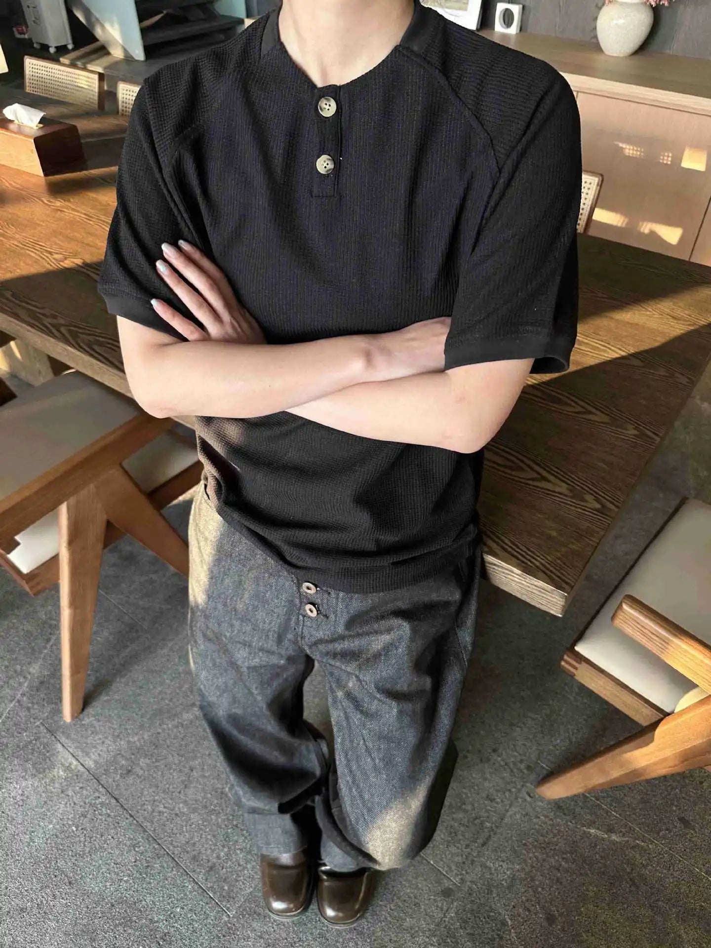AIDASE - New Simple Men's Short Sleeved T-shirts Round Neck Button Design Casual Menswear Solid Color Loose Male Pullover Tee 9W3225