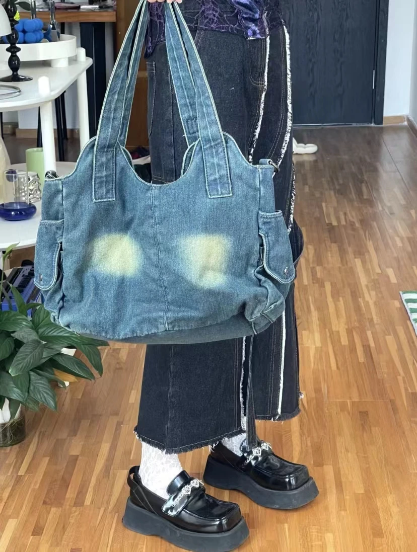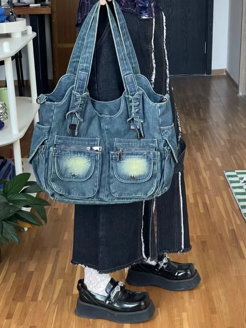 AIDASE - New Spicy Girl Cowboy Bags Single Shoulder Bag Diagonal Strap Large Capacity Bags Shoe Laces Casual Retro Denim Bag Women's Bag