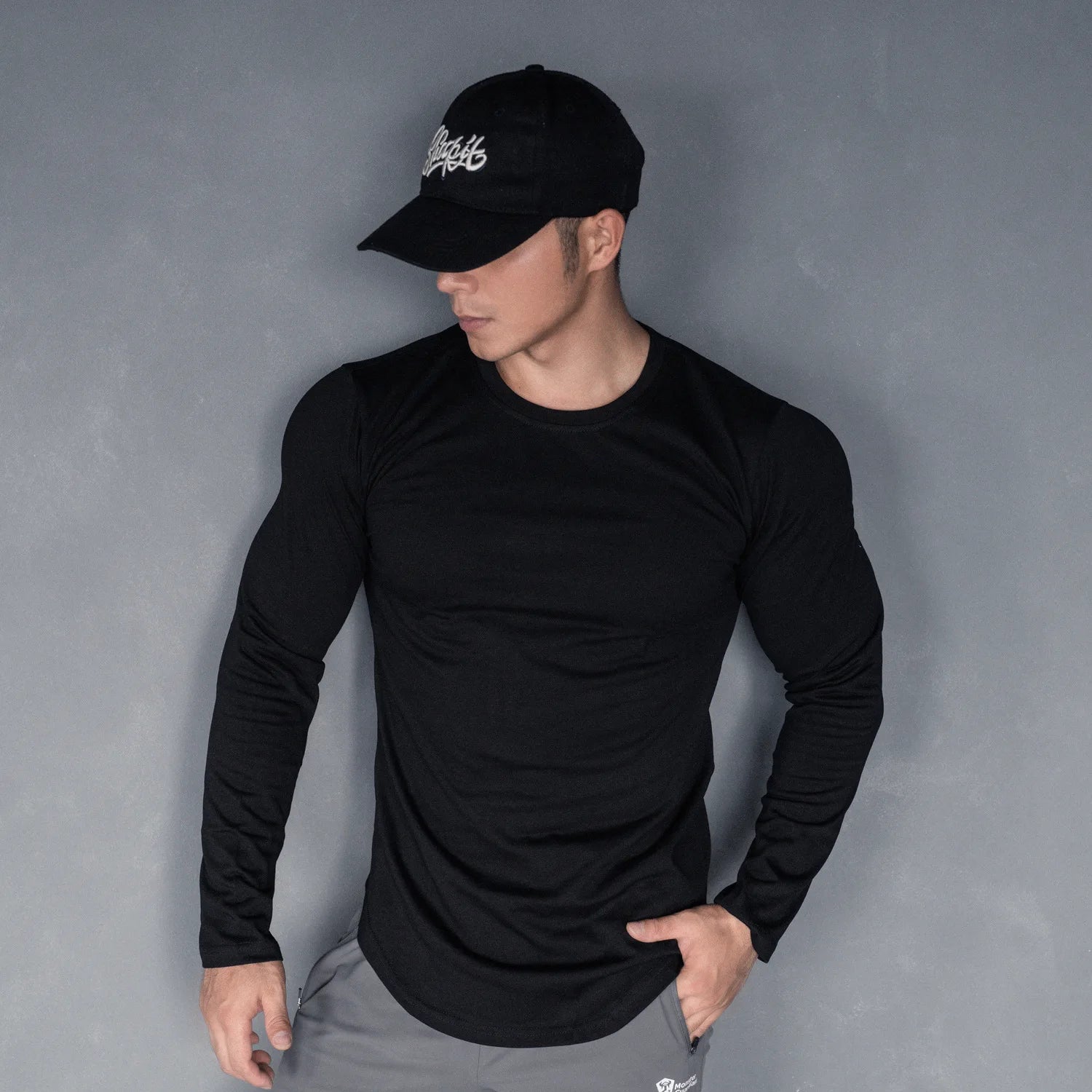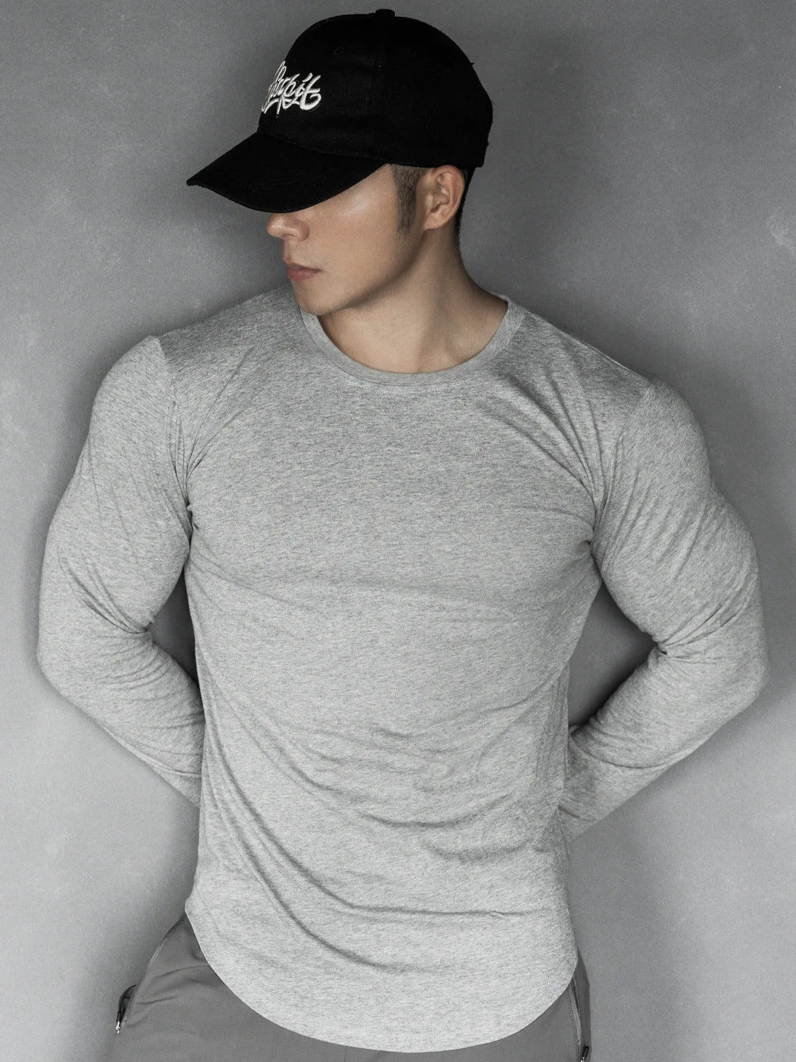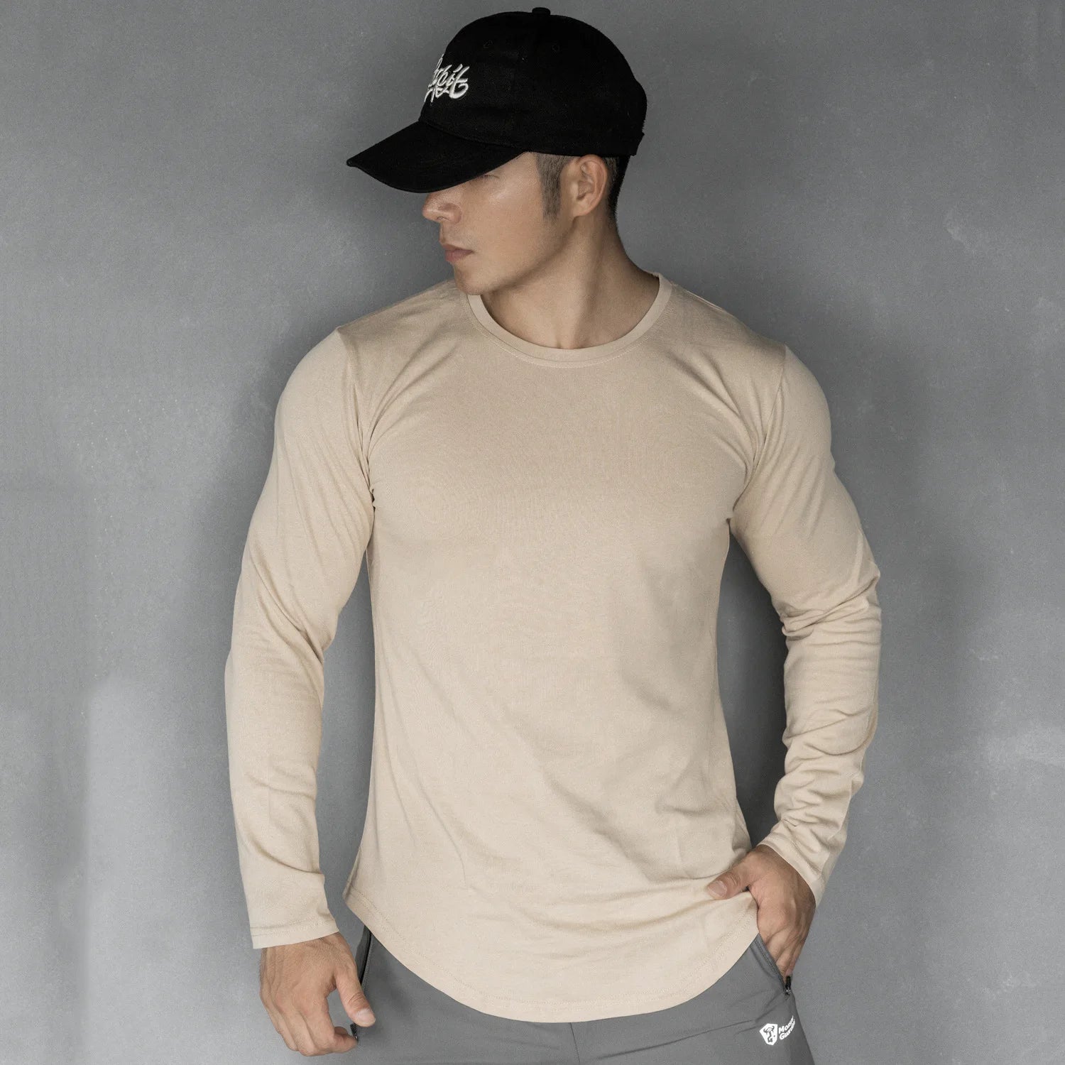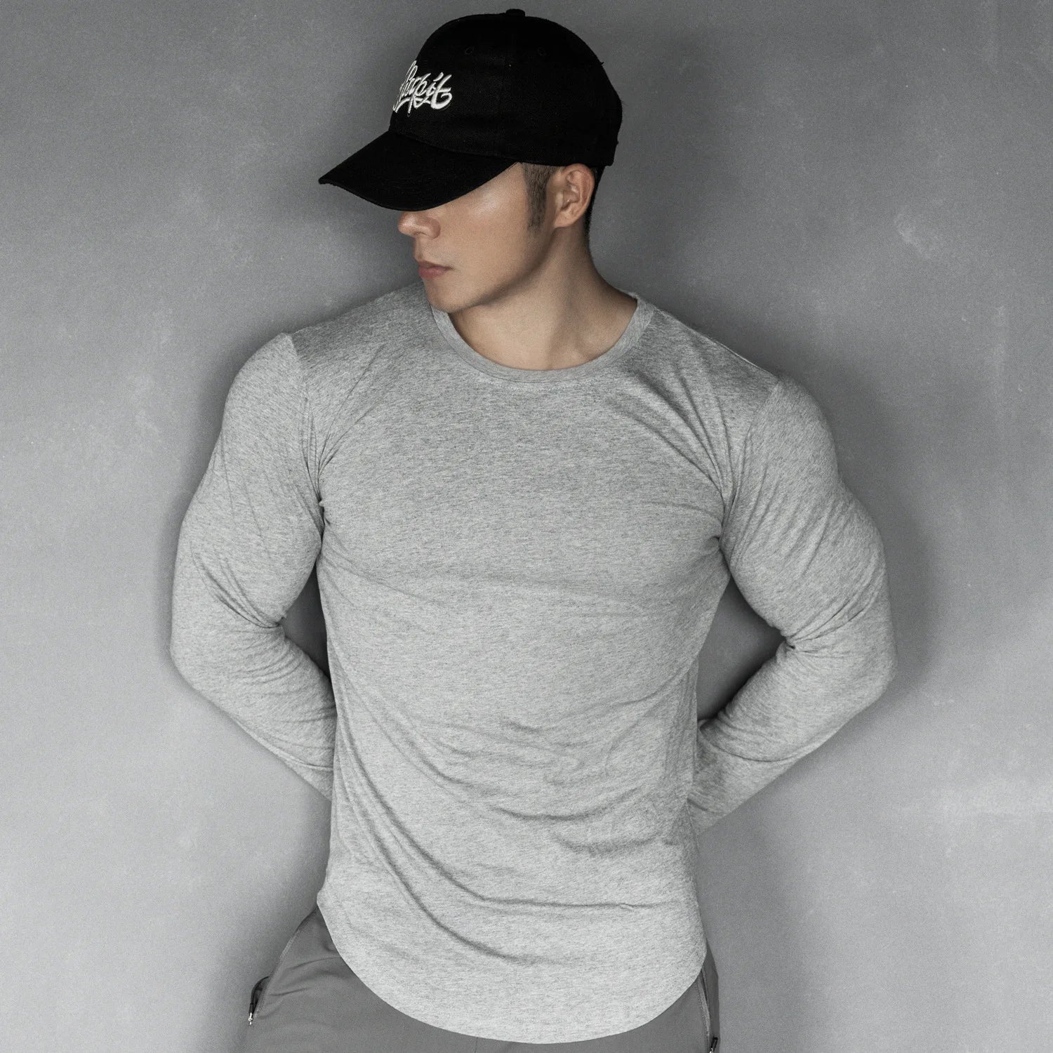 AIDASE - New Spring And Autumn Male Sports Leisure Running Fitness Exercise Cotton Elastic Solid Color Long Sleeve Base T-Shirt