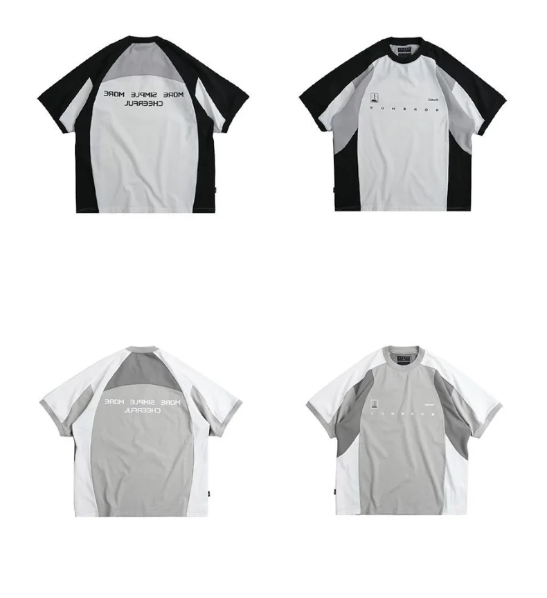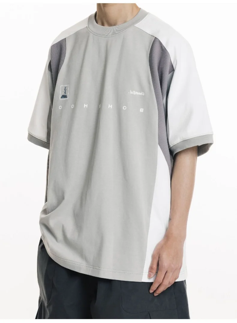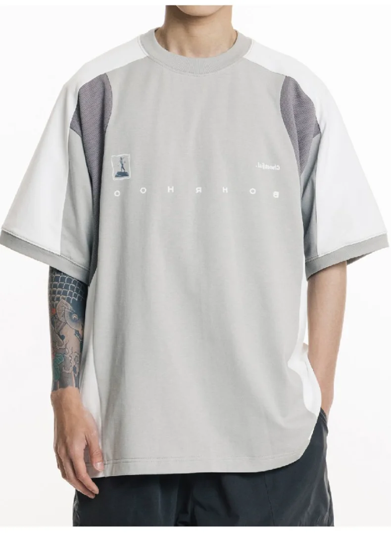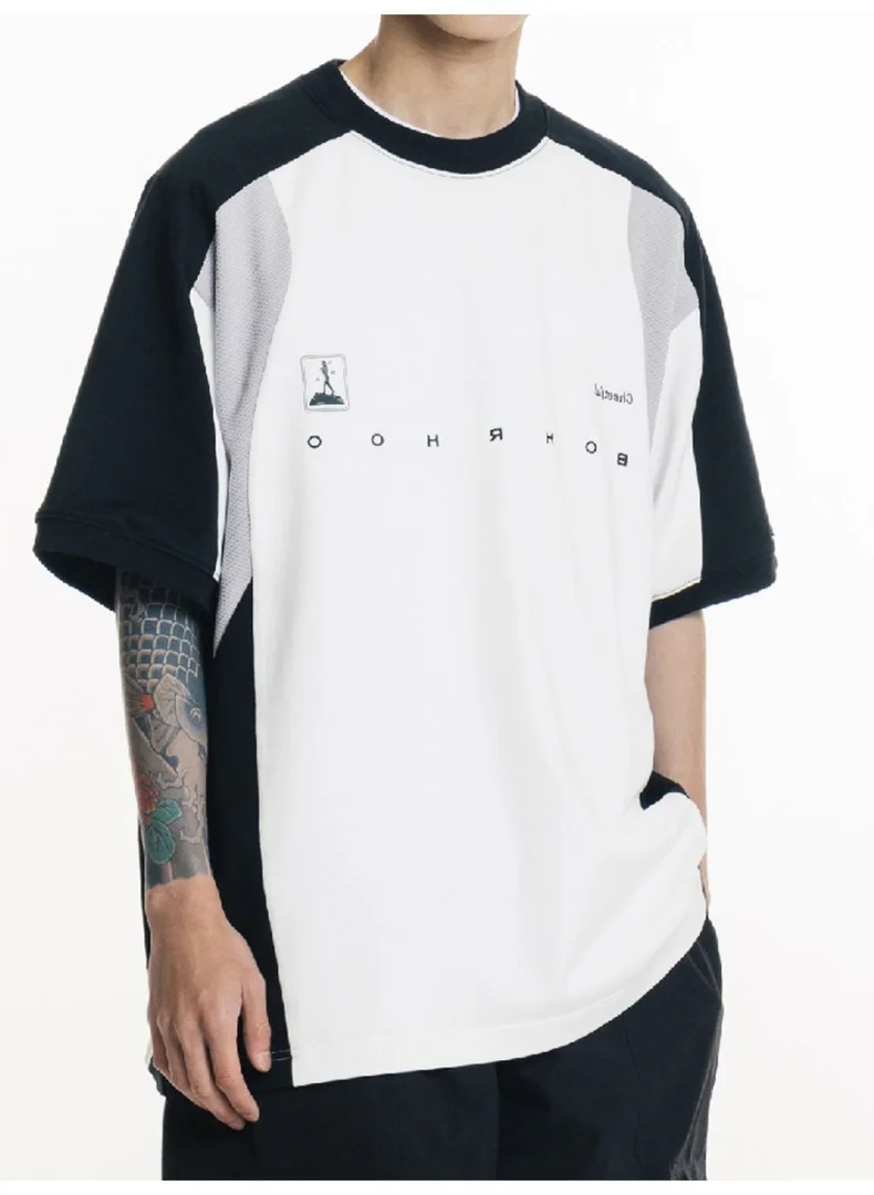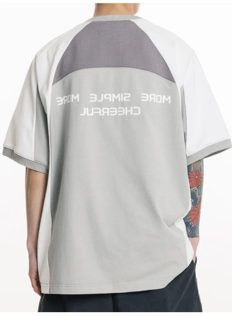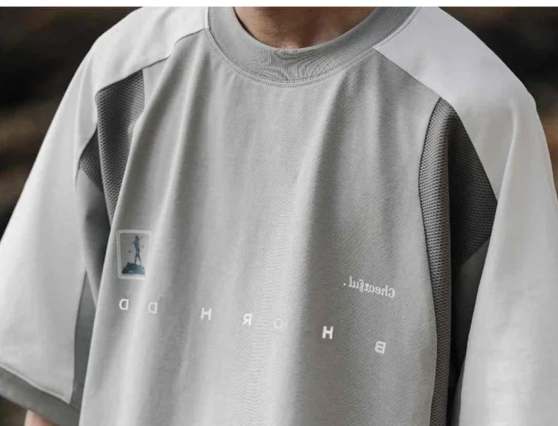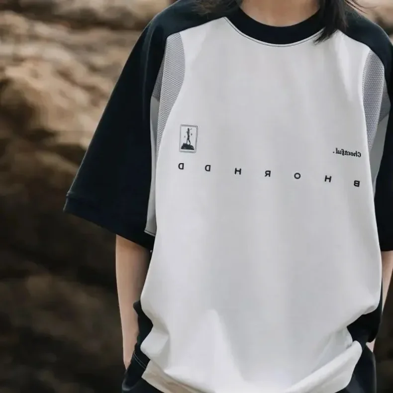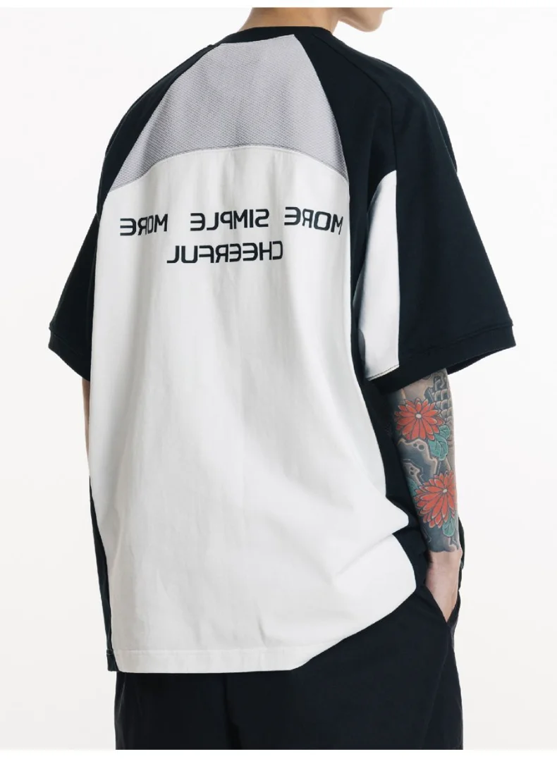 AIDASE - Oversized Summer New Japanese T-shirt Men Cotton Mesh Patchwork Printed Jersey Round Neck Loose Couple Short Sleeve Top Tees
