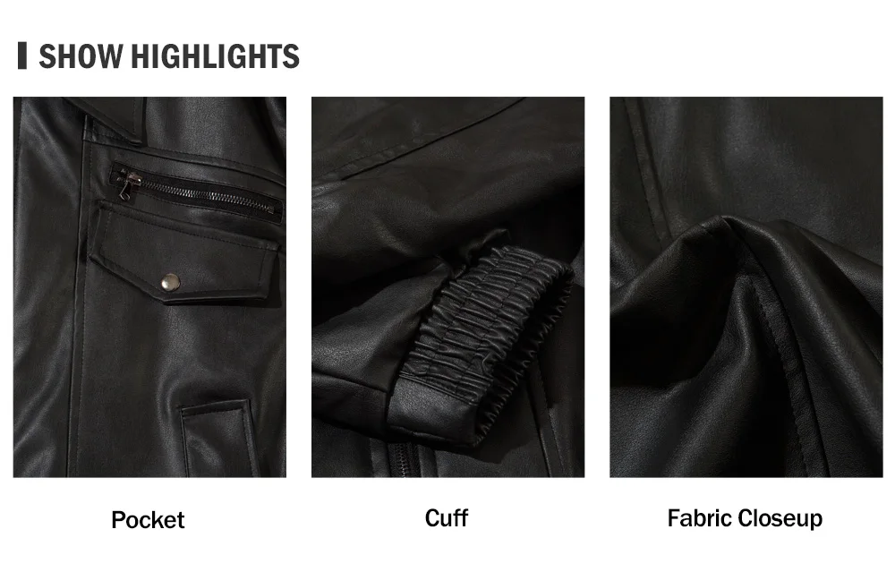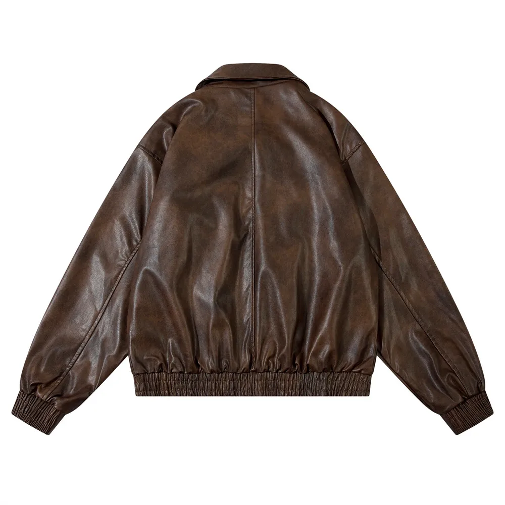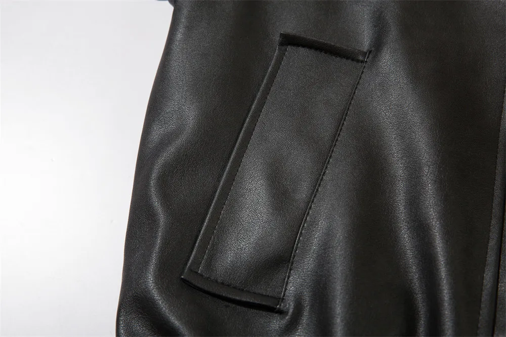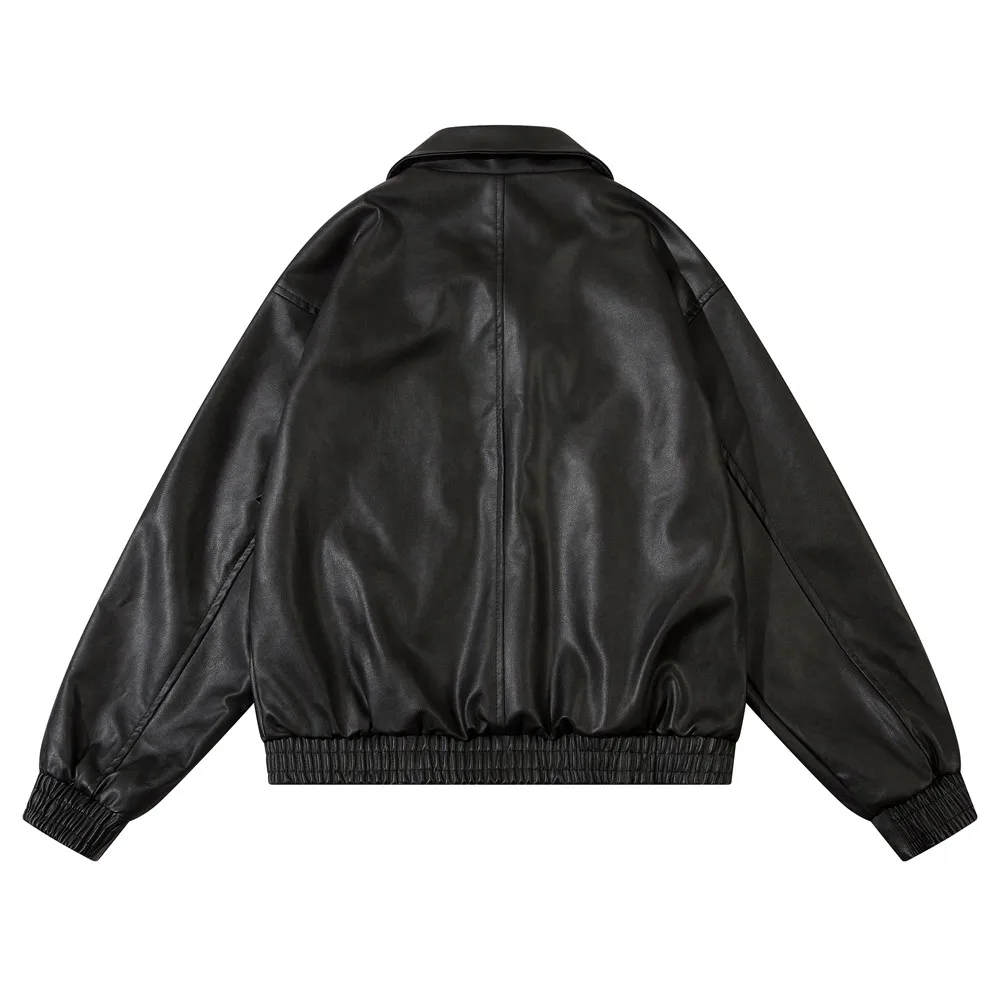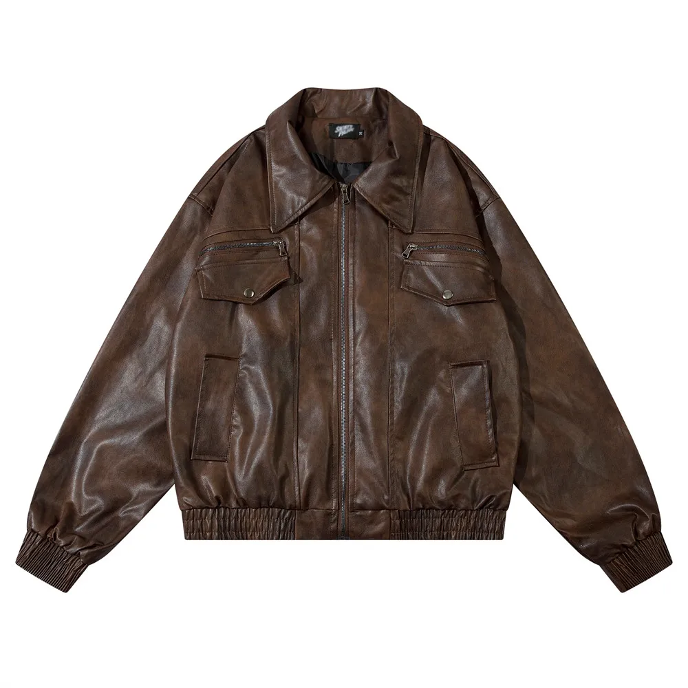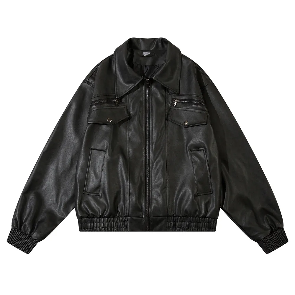 Aidase Pocket Spliced Motorcycle Leather Jacket Mens Spring Streetwear Lapel Zipper Long Sleeve Jacket Men