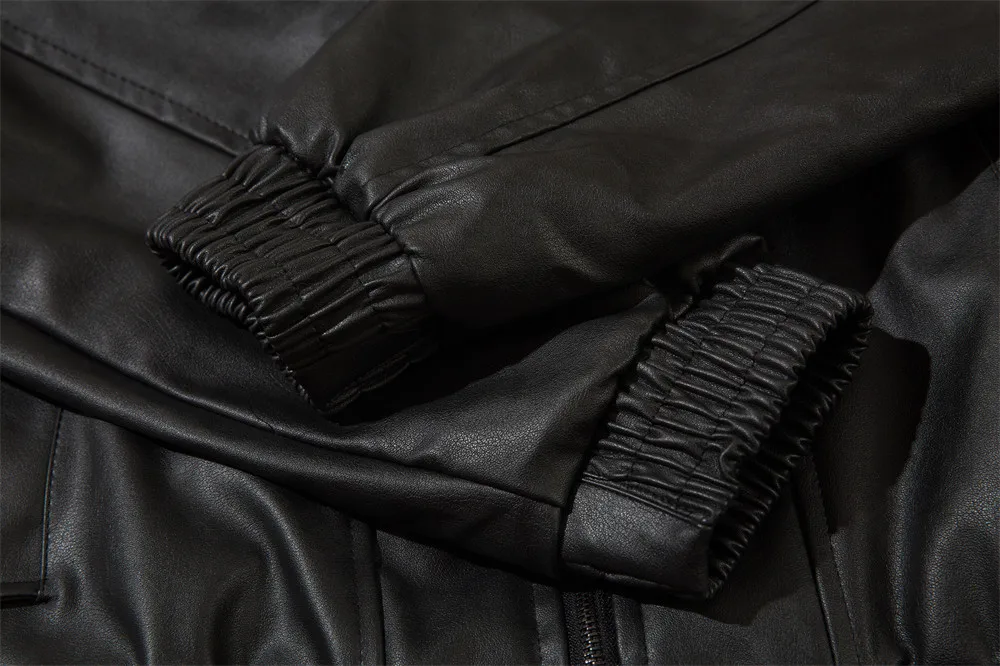 Aidase winter outfits men Pocket Spliced Motorcycle Leather Jacket Mens Spring Streetwear Lapel Zipper Long Sleeve Jacket Men