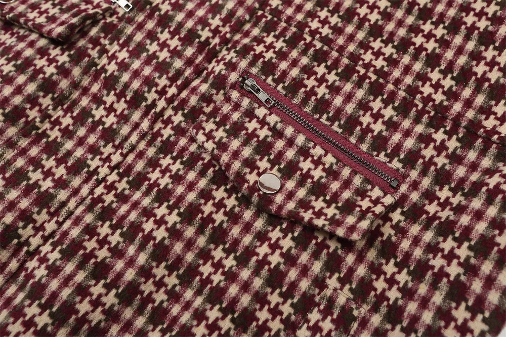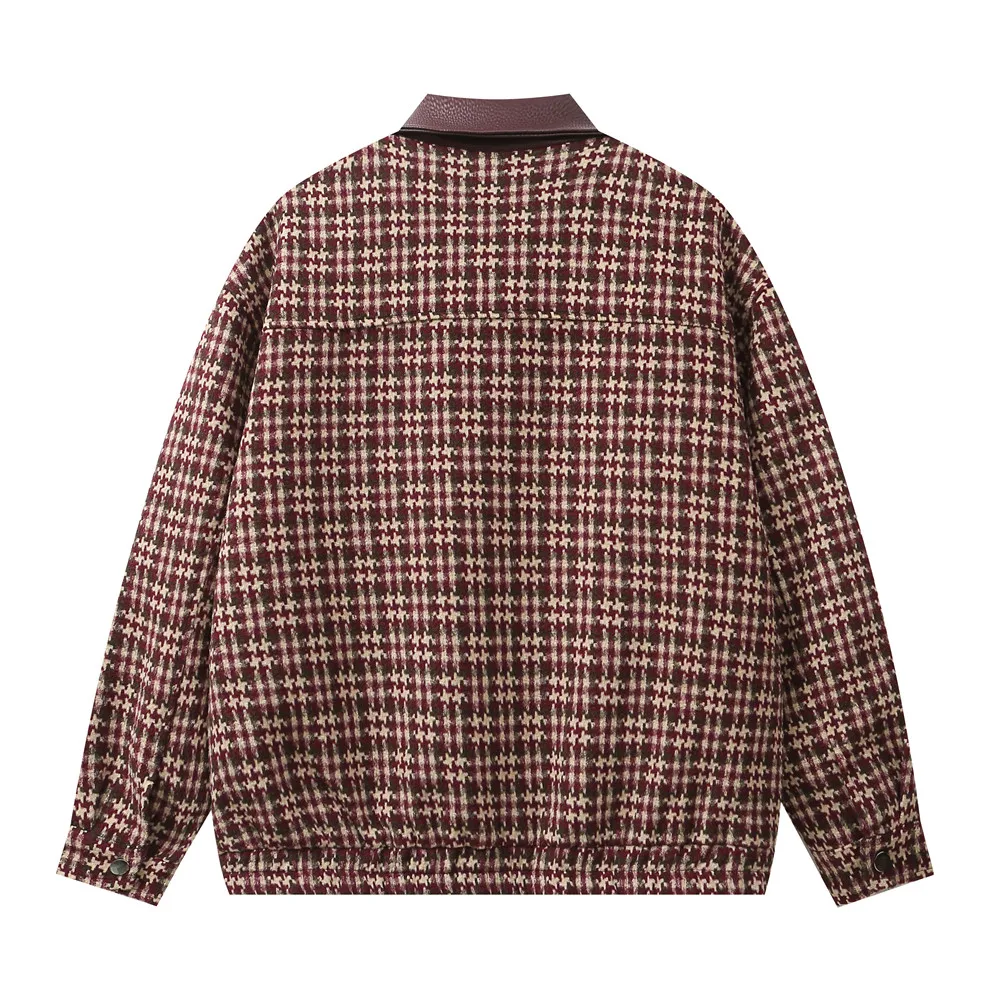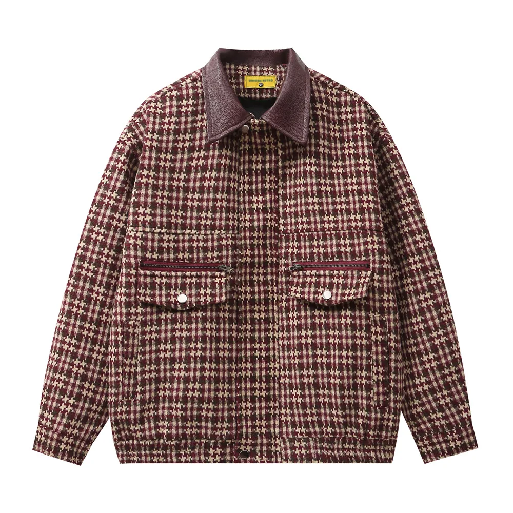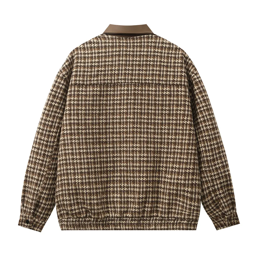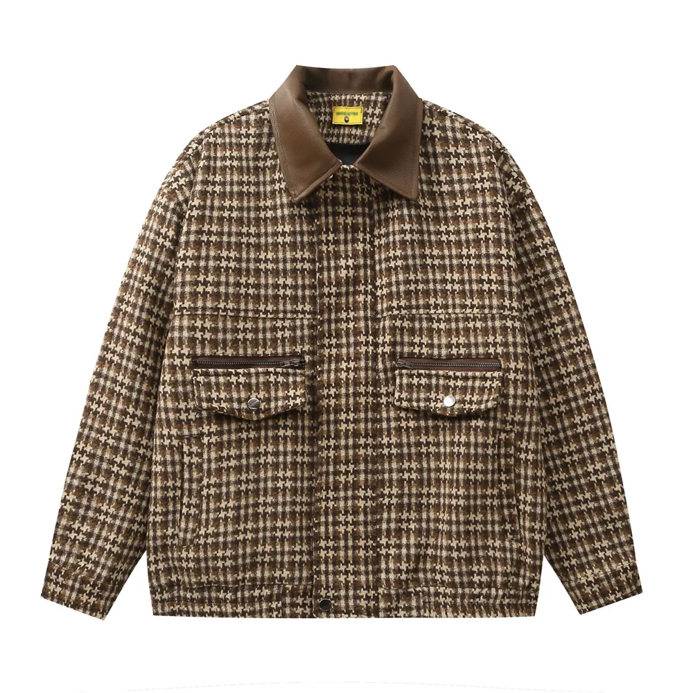 Aidase Retro Plaid Jacket Mens Spliced Pocket Retro Streetwear Autumn Winter Loose Long Sleeve Lapel Outerwear Men