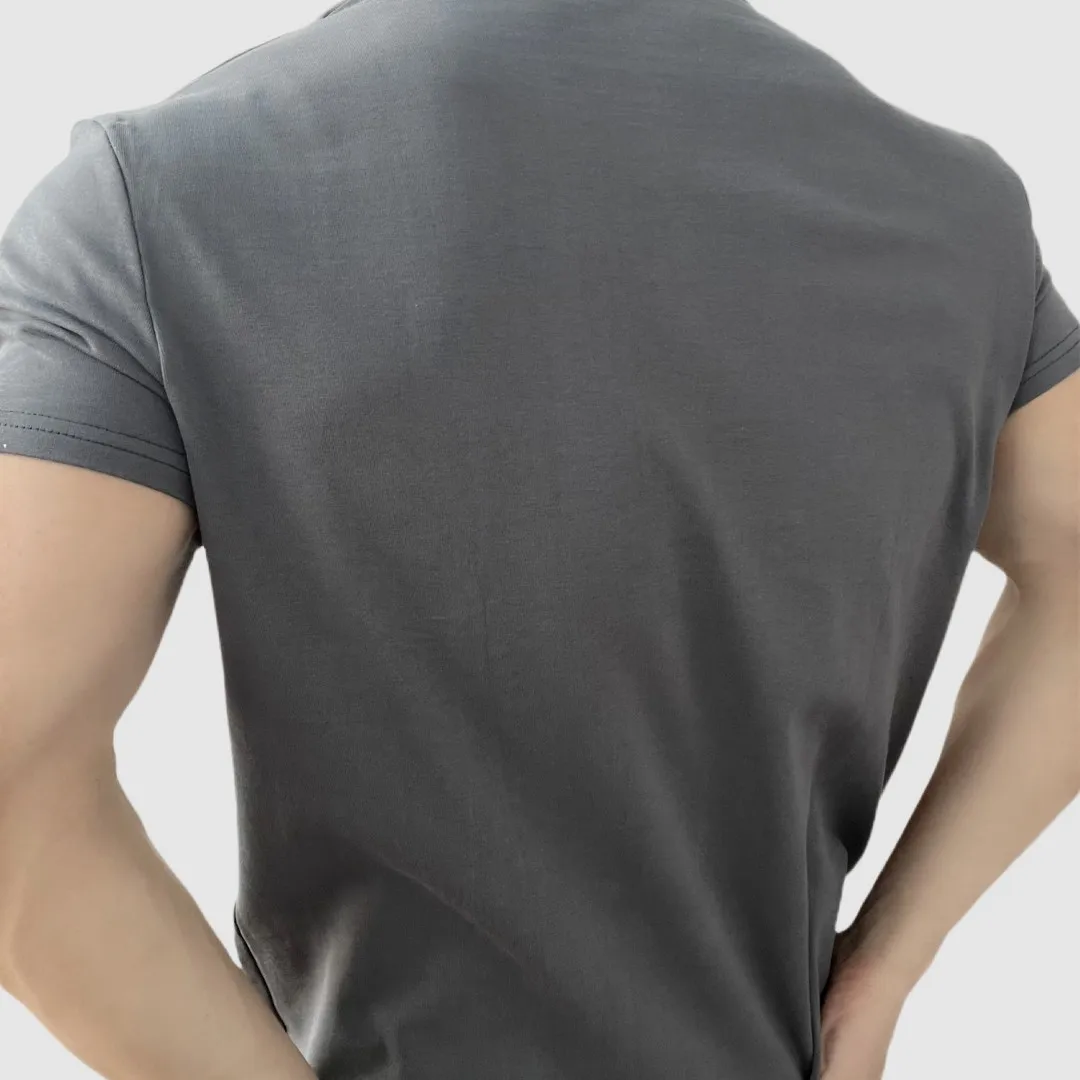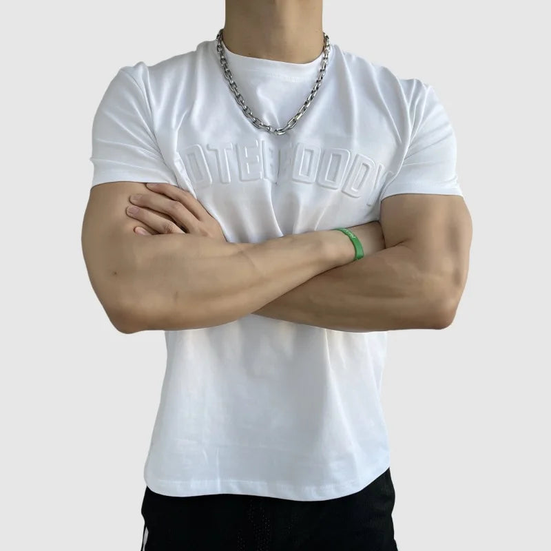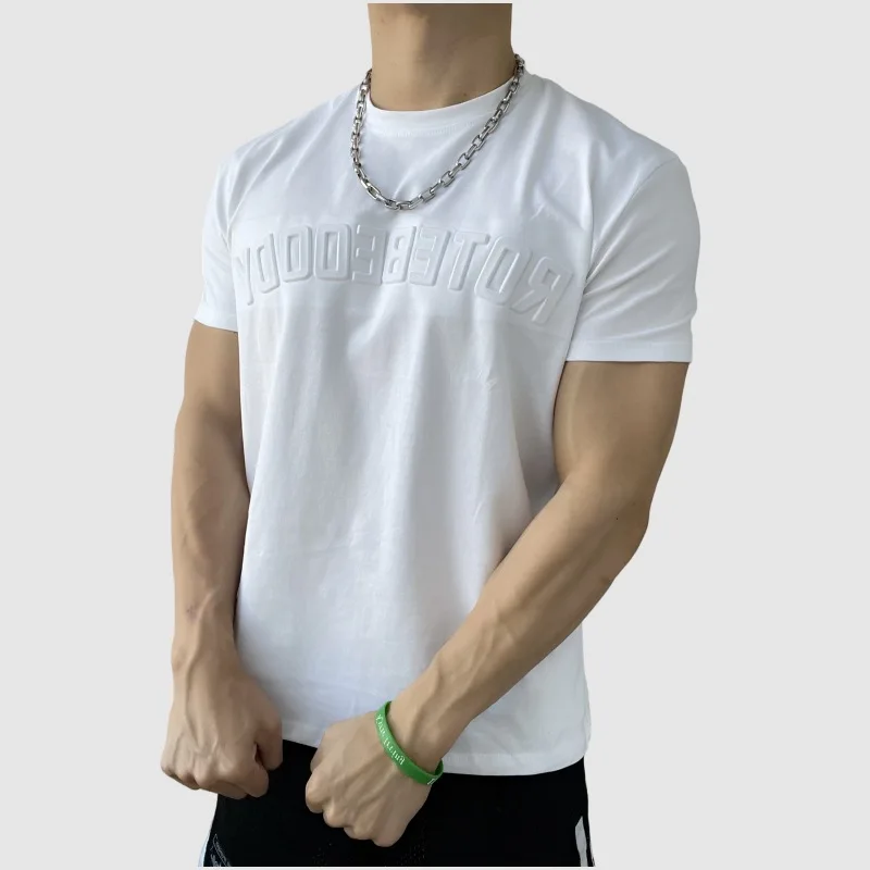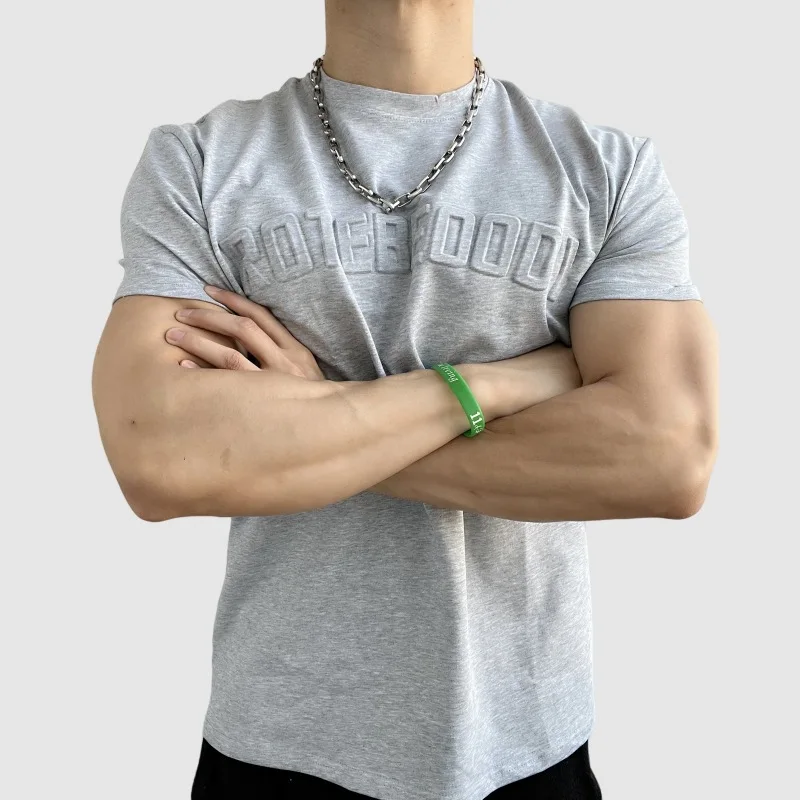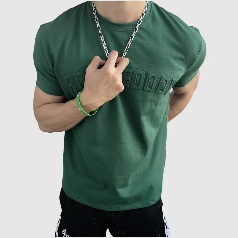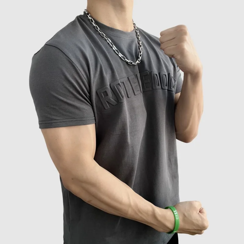 AIDASE - Round Neck Fitness Trend Steel Printed T-shirt Shoulder Pad Version Close-in Sleeve Slim Men's Sports Training Short Sleeve