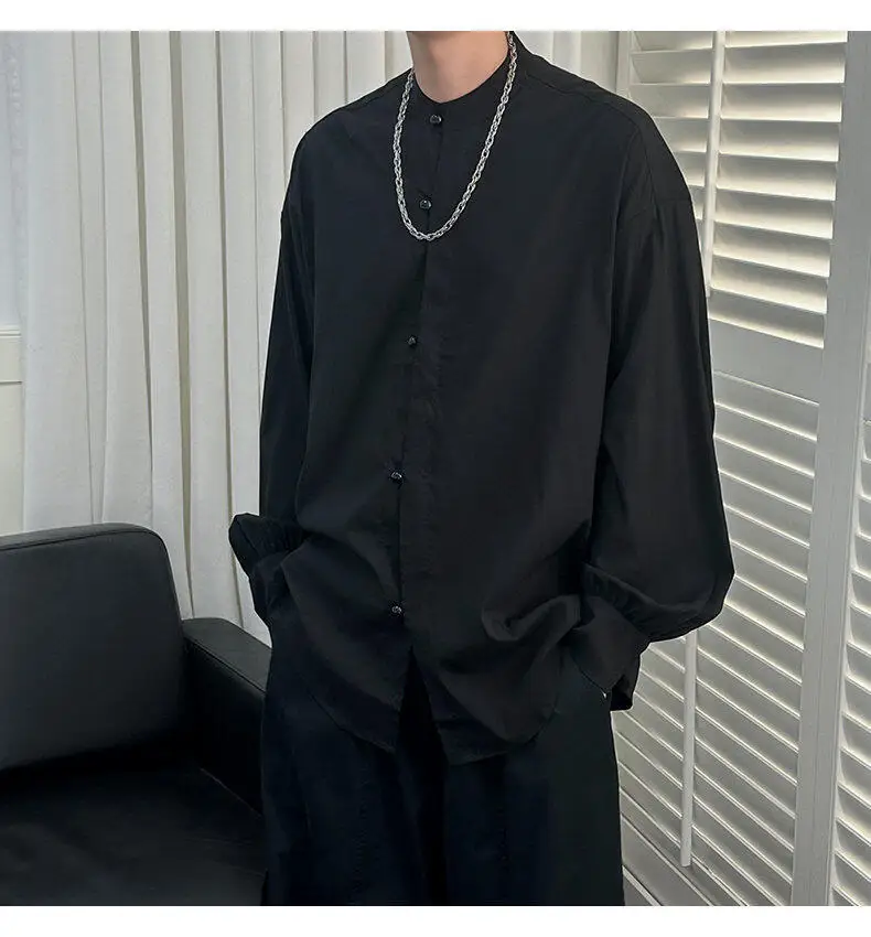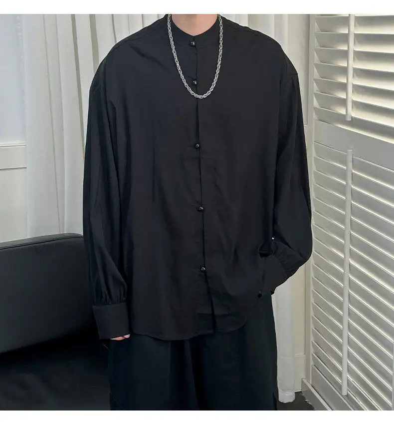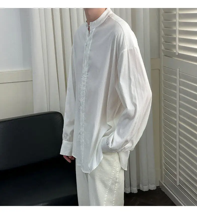 AIDASE - Simple Male Shirt 2025 Summer New Niche Design Casual Trendy Long Sleeve Stand Collar Tops Versatile Menswear Tide