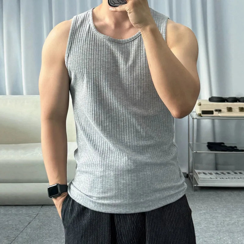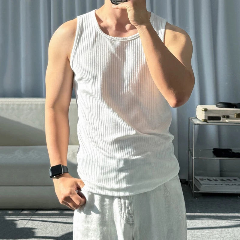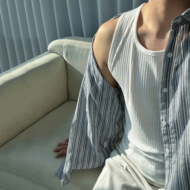 AIDASE - Simple Men's Tank Tops Round Collar Summer Solid Color Sleeveless T-shirts Casual Korean Style Pullover Male Vests 9W3108