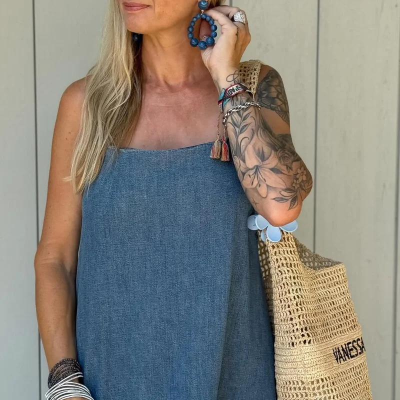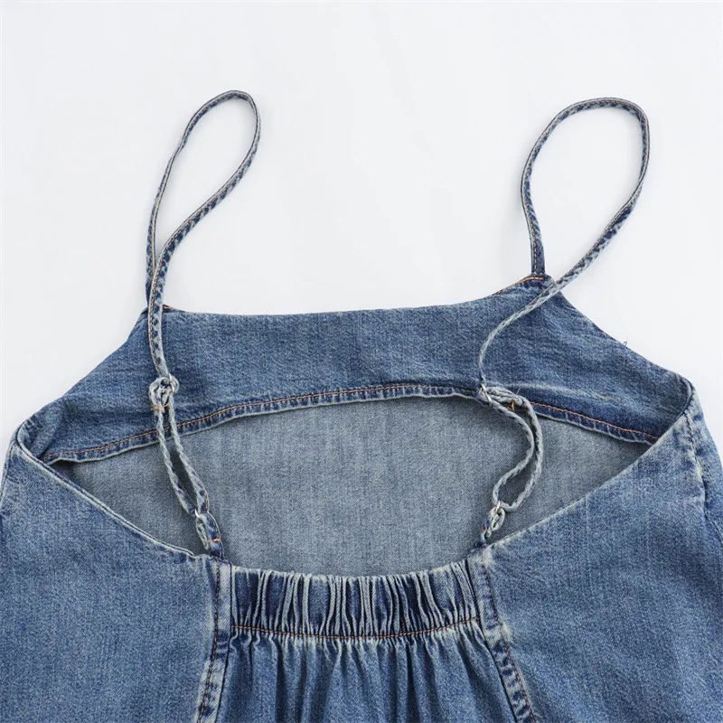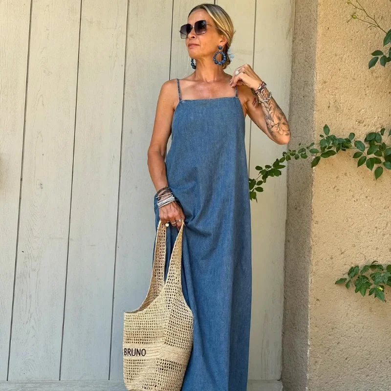 AIDASE - Solid Loose Denim Camisole Maxi Dress Women Casual Daily Commuting Sleeveless Backless Long Dresses 2025 Summer Outdoor Vestidos