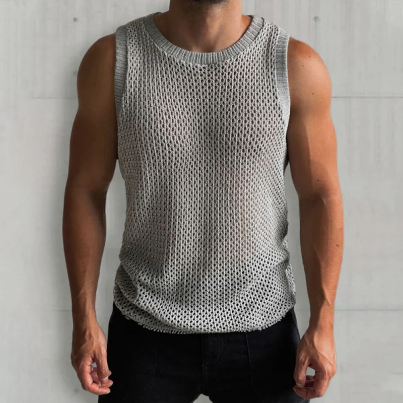 Sports Fitness Breathable Knitted Mesh Tank Tops Men Summer Casual Solid Color Hollow Out Knit Vest Men Fashion Sleeveless Tops