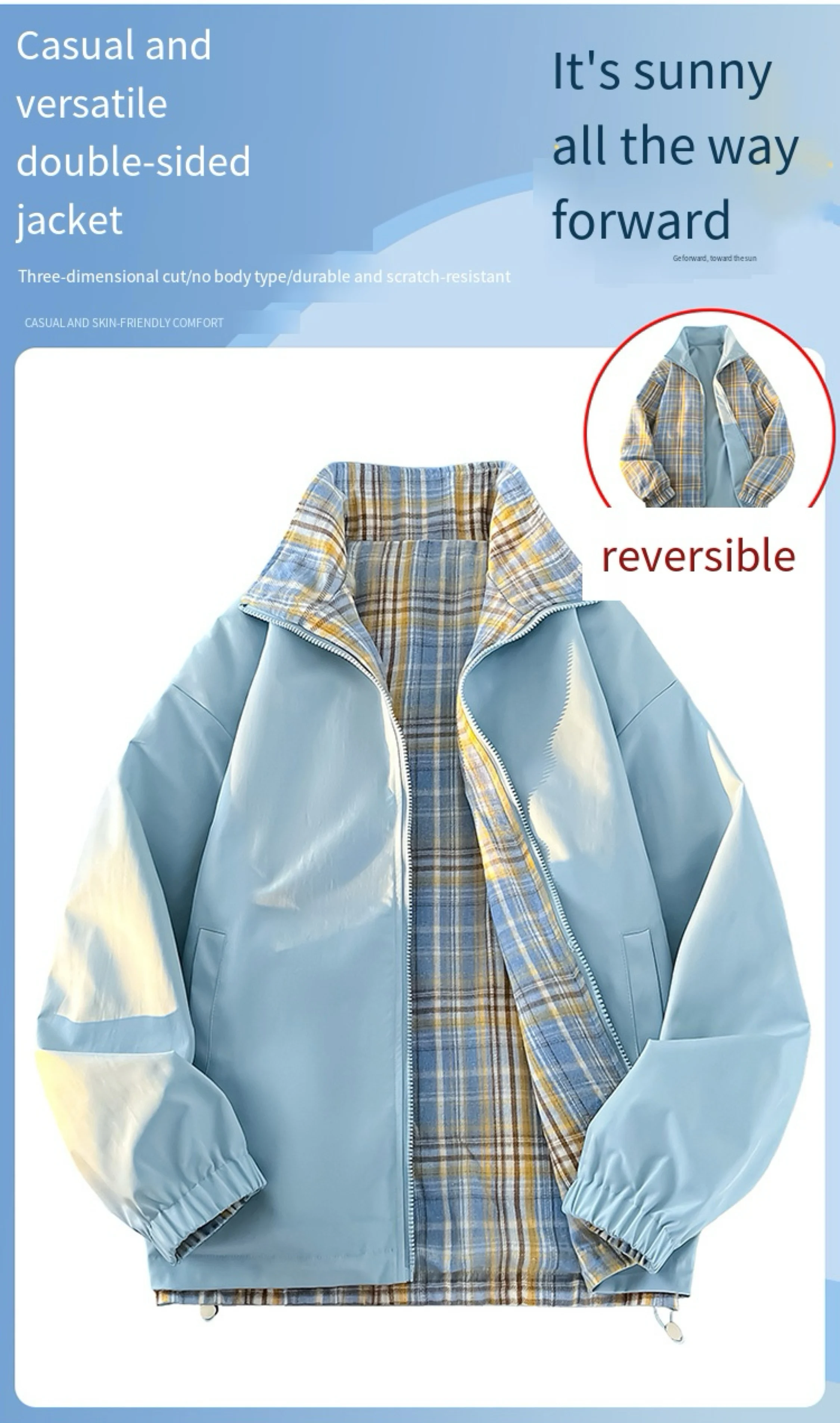 AIDASE - Spring and Autumn jacket men's new double-sided wear stand-up collar sports jacket men's American tide couples tops