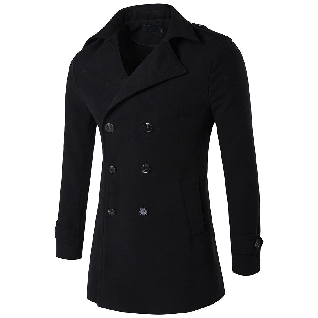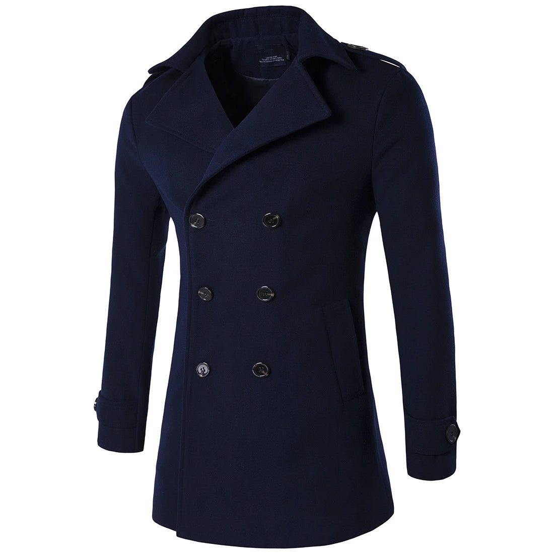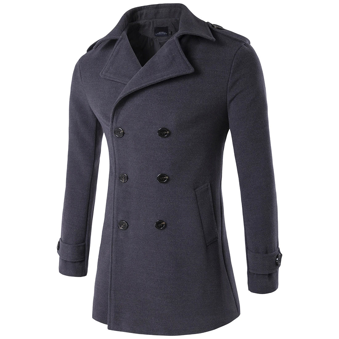 Aidase Spring and Autumn Mens Double Breasted Woolen Coat Long Sleeve Long Trench Coat Men Army Green Long Overcoat Wool Windbreaker
