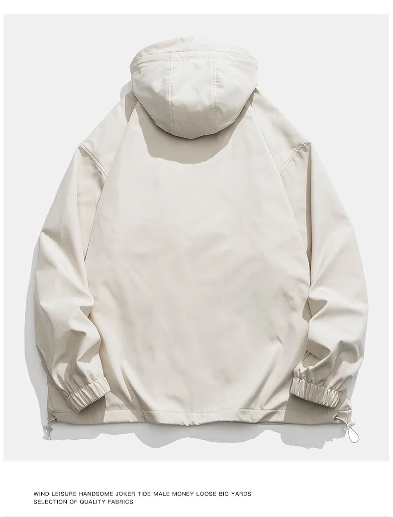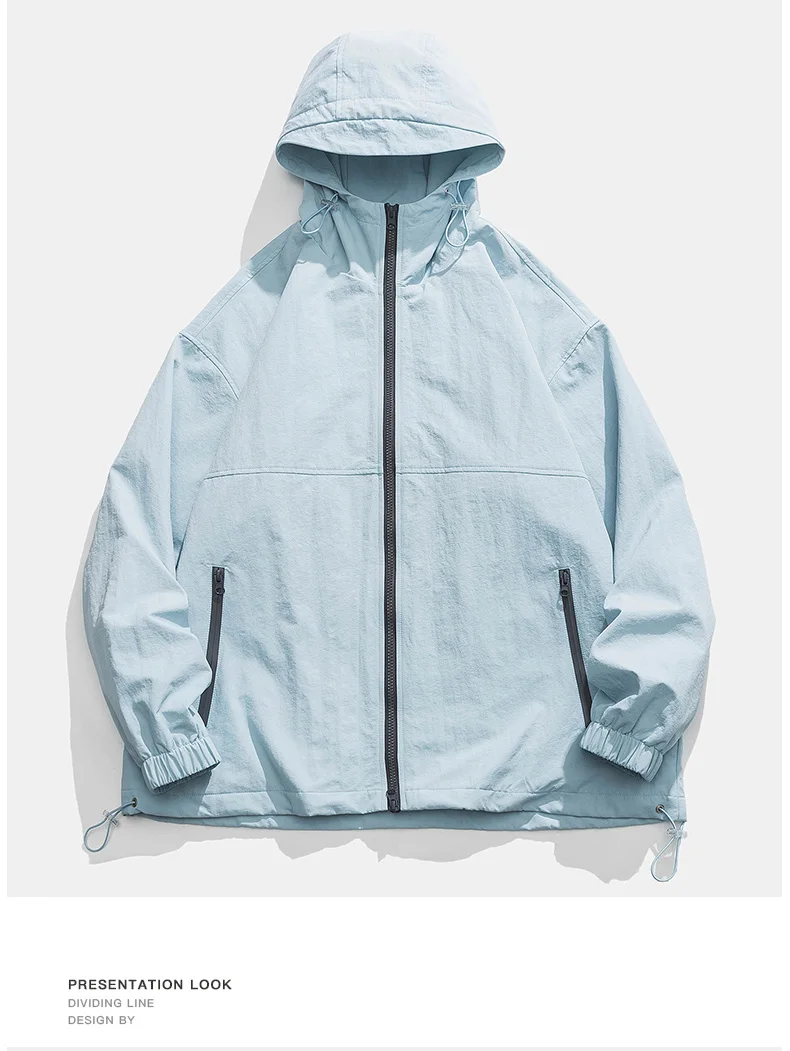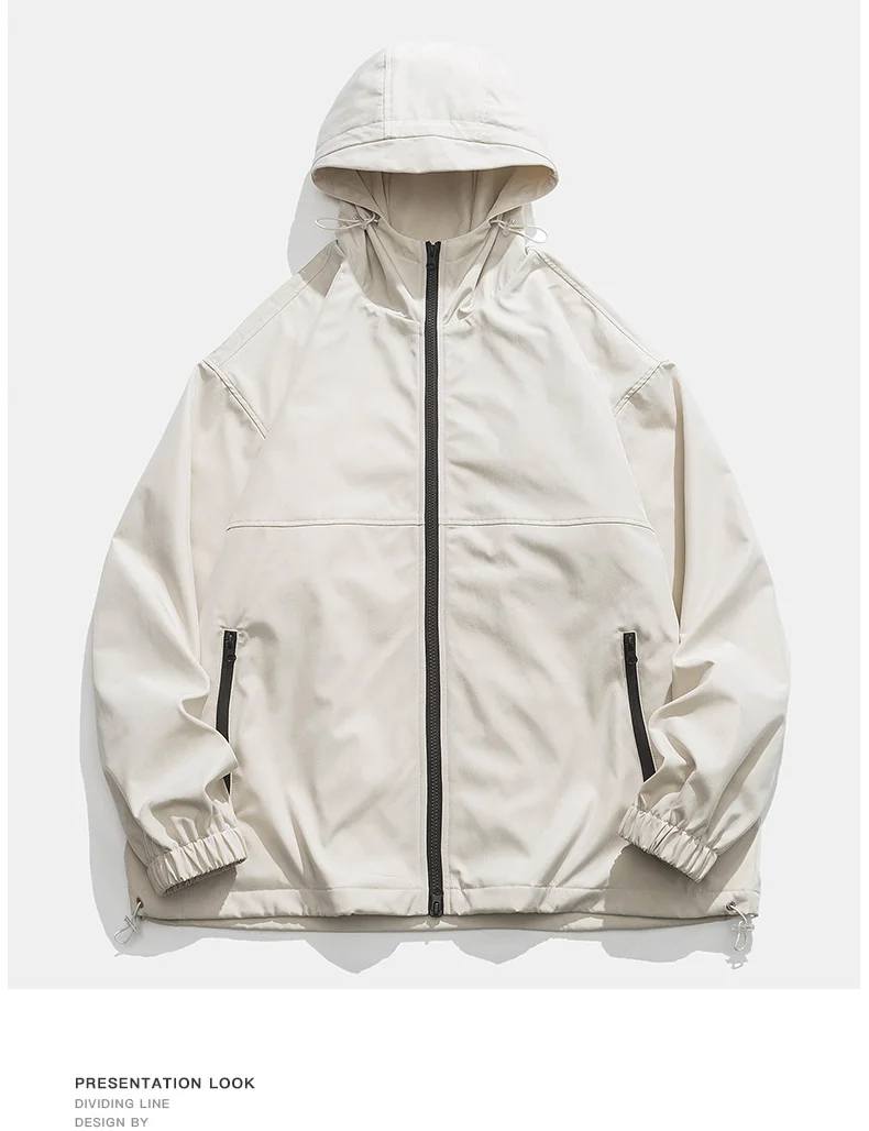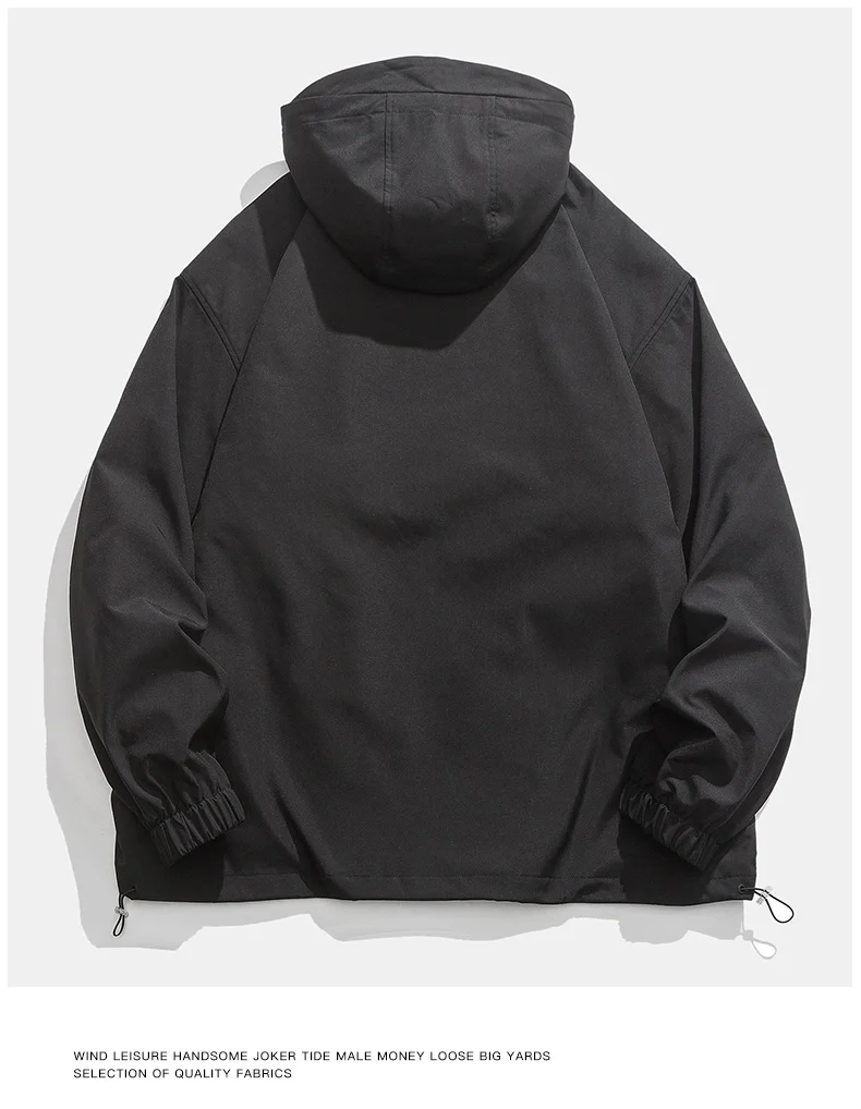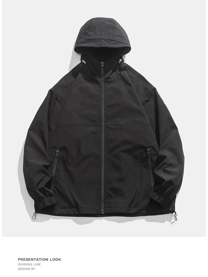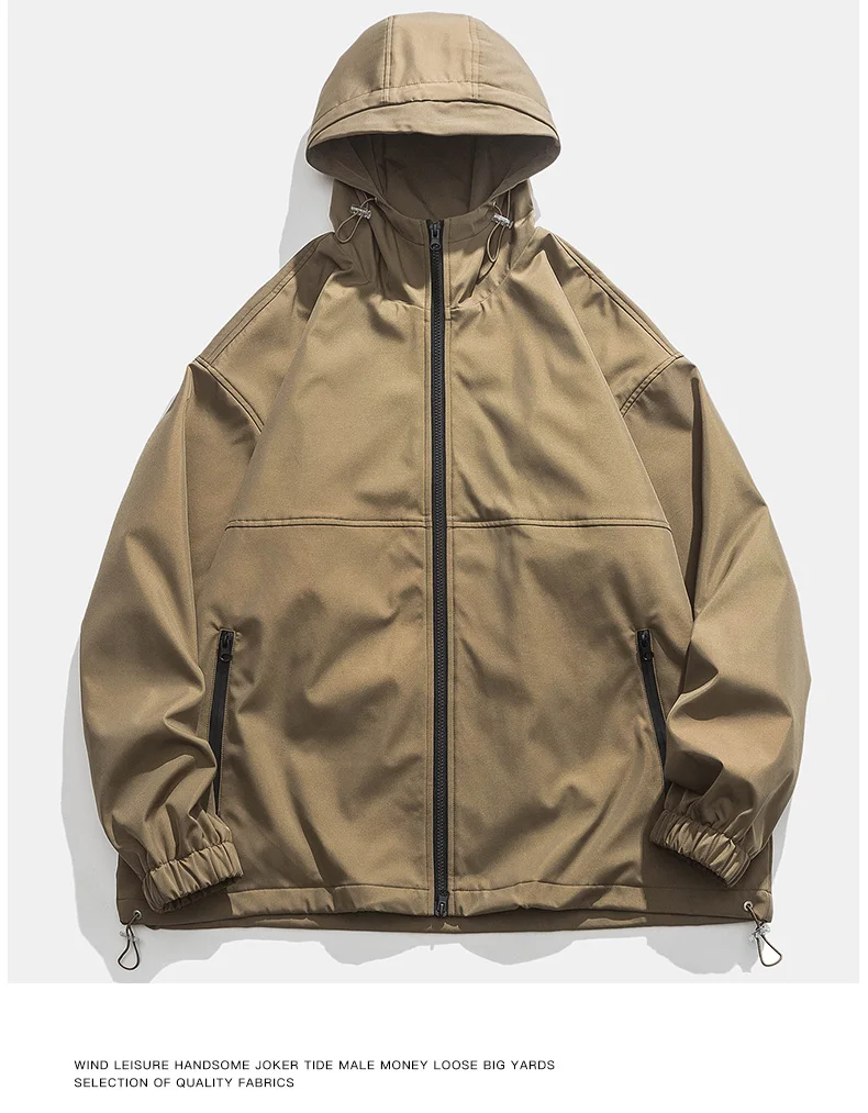 Aidase Spring Autumn Windbreaker Jacket Men Casual Loose Hooded Jackets Male Solid Color Coats Man