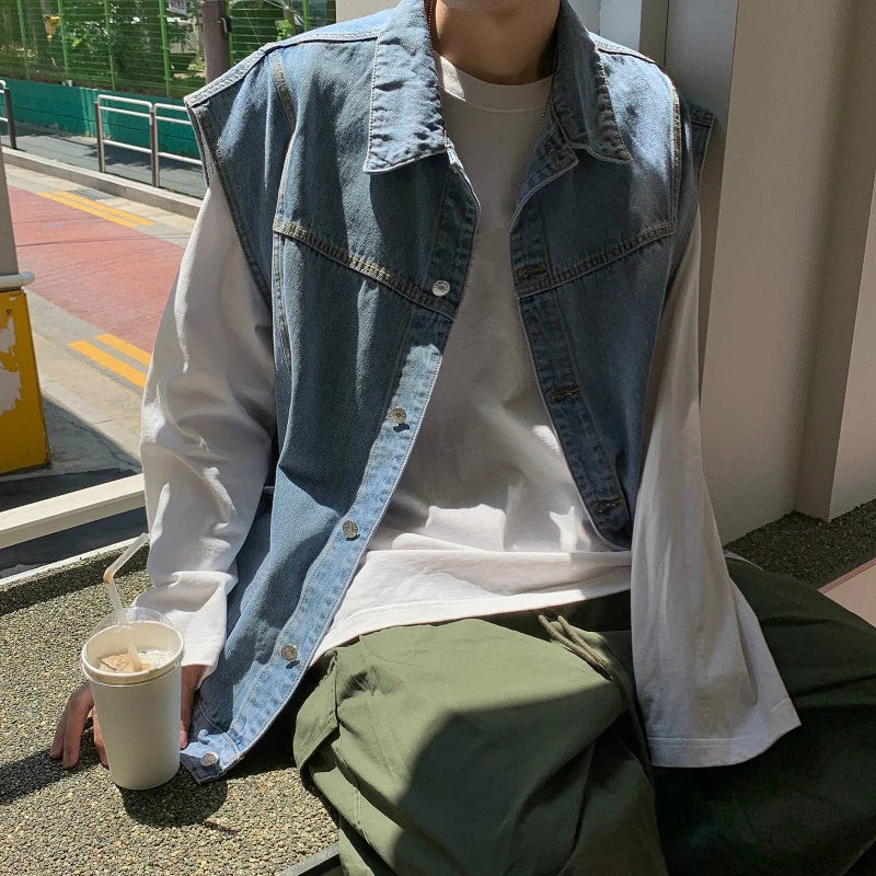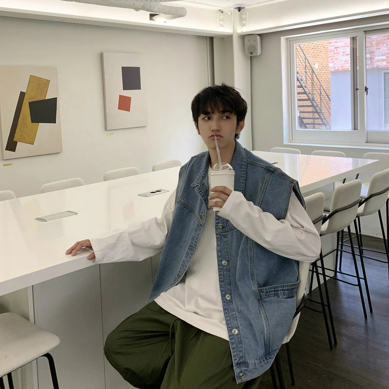 Spring New Arrival Denim Vests Men Loose Casual Sleeveless Jacket Boys Cotton Oversized Blue Jacket Vest Male Coat Streetwear