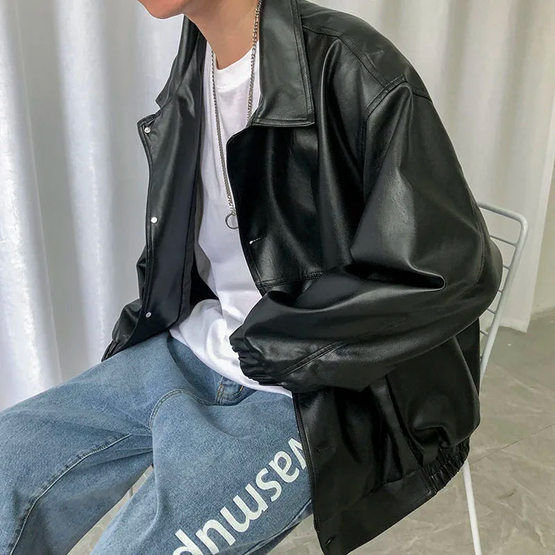 AIDASE - Spring New Loose Soft Leather Jacket Single Breasted Jacket Men Casual Biker Jacket Men Jacket Leather Large Size XXL