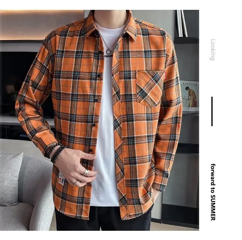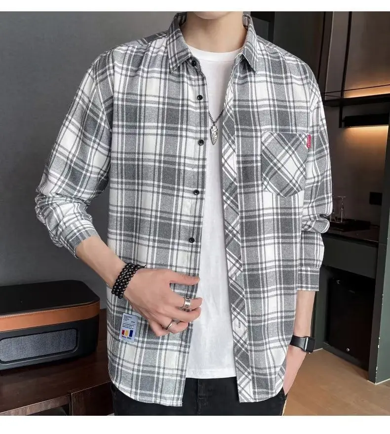 Spring Plaid Shirt Men Fashion Retro Casual Shirt For Men Clothing Harajuku High Quality Long Sleeve Male Fashion Tops