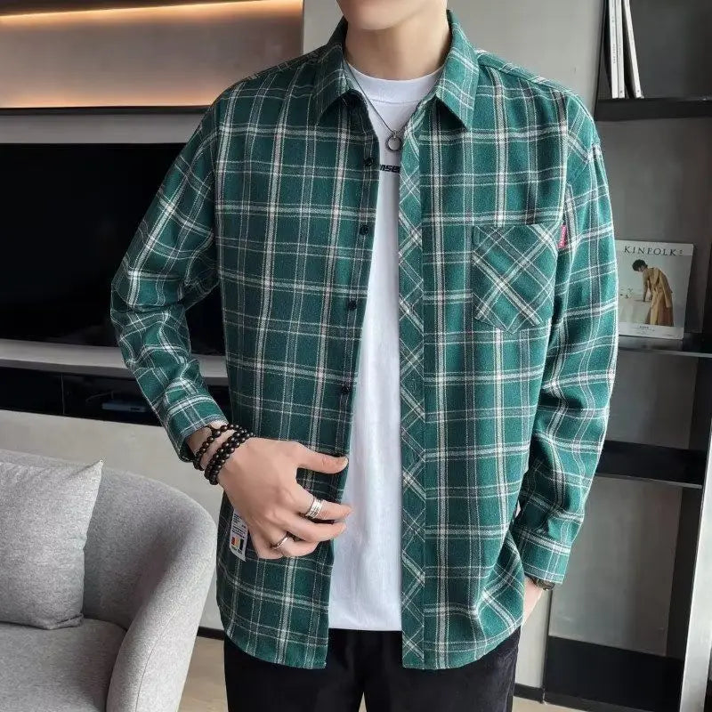 Aidase Spring Plaid Shirt Men Fashion Retro Casual Shirt For Men Clothing Harajuku High Quality Long Sleeve Male Fashion Tops