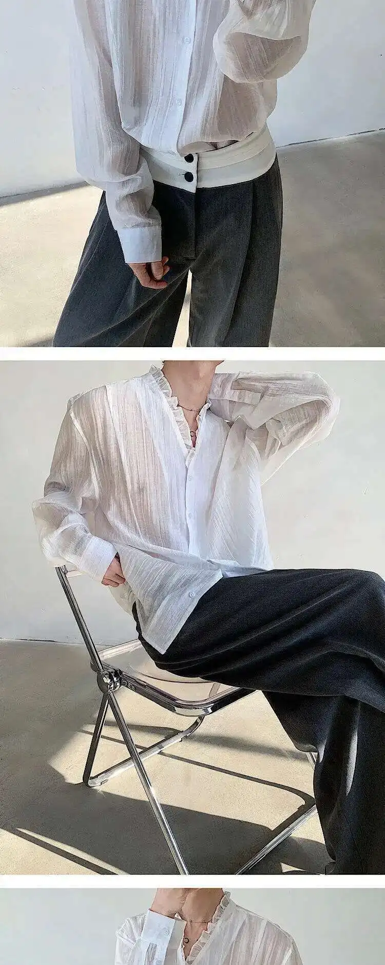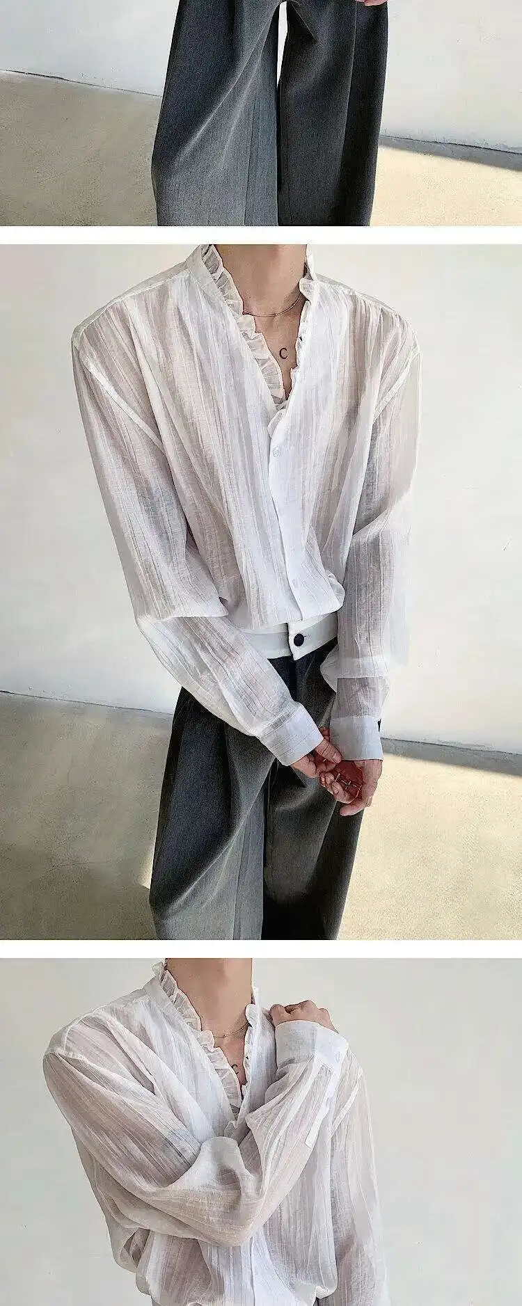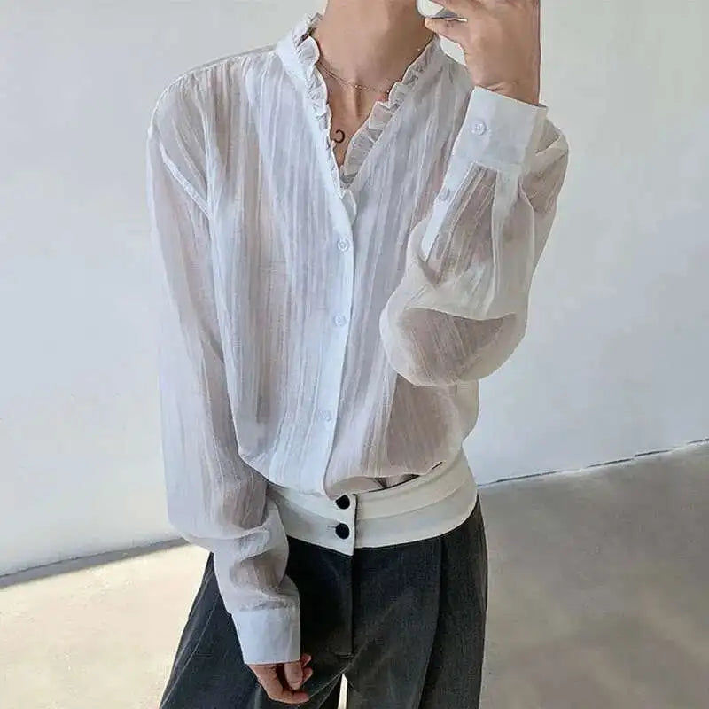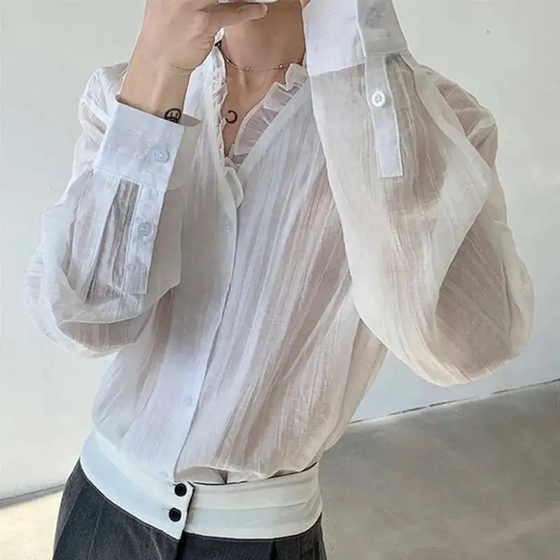 AIDASE - Spring/Summer Elegant Sexy Men's Shirt Long Sleeve Single Breast Solid Color Korea Fashion Male Tops