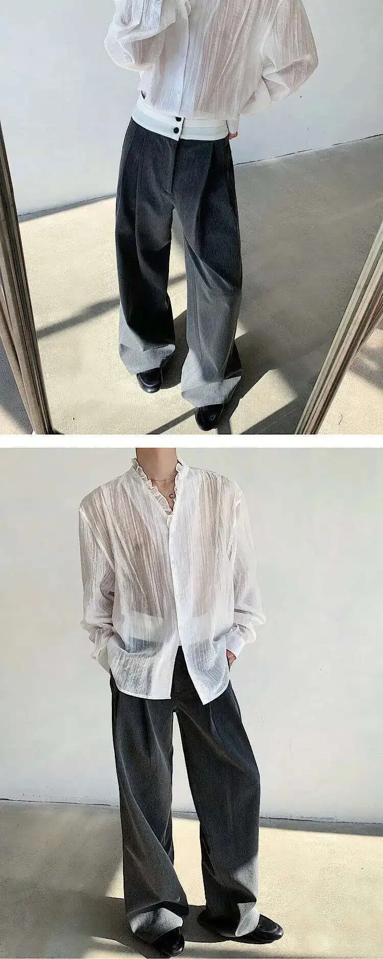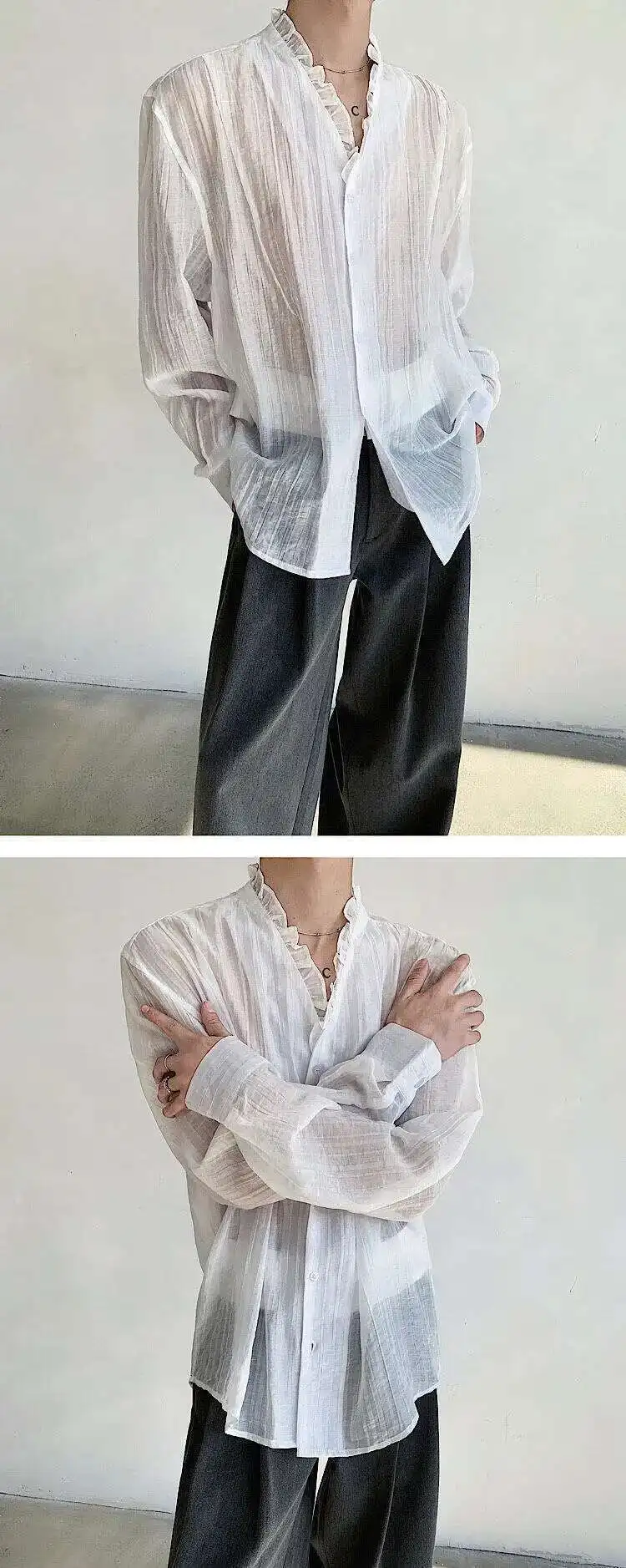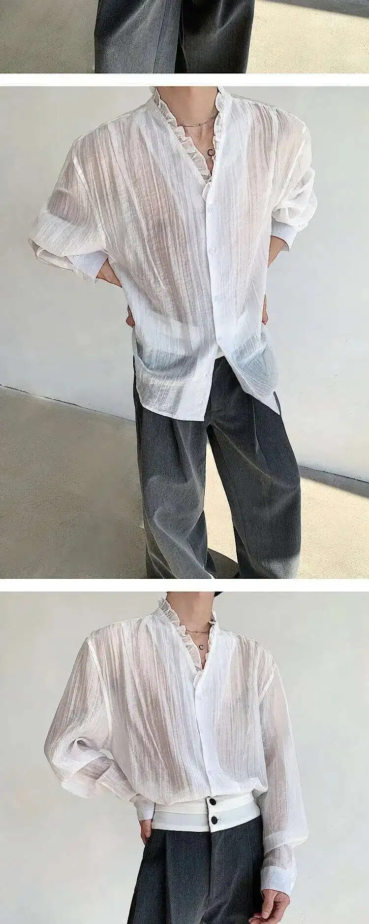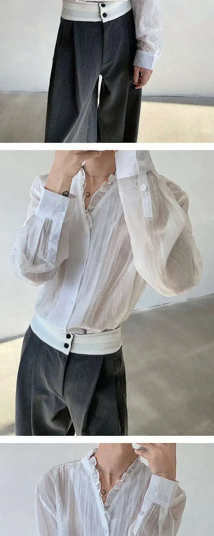 AIDASE - Spring/Summer Elegant Sexy Men's Shirt Long Sleeve Single Breast Solid Color Korea Fashion Male Tops