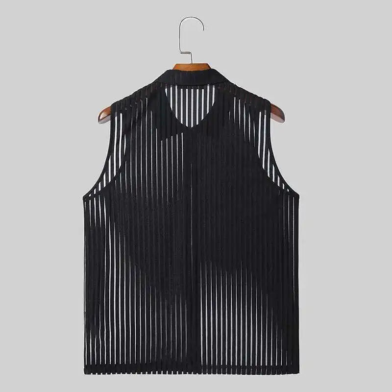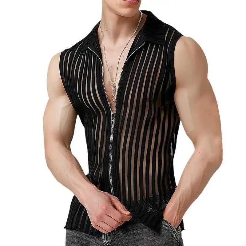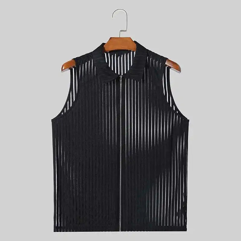 AIDASE  -  Spring Summer New Men's Dark Tide Casual Stripe Zipper Sleeveless Flip Collar Tank Tops Versatile Punk Fashion Vest