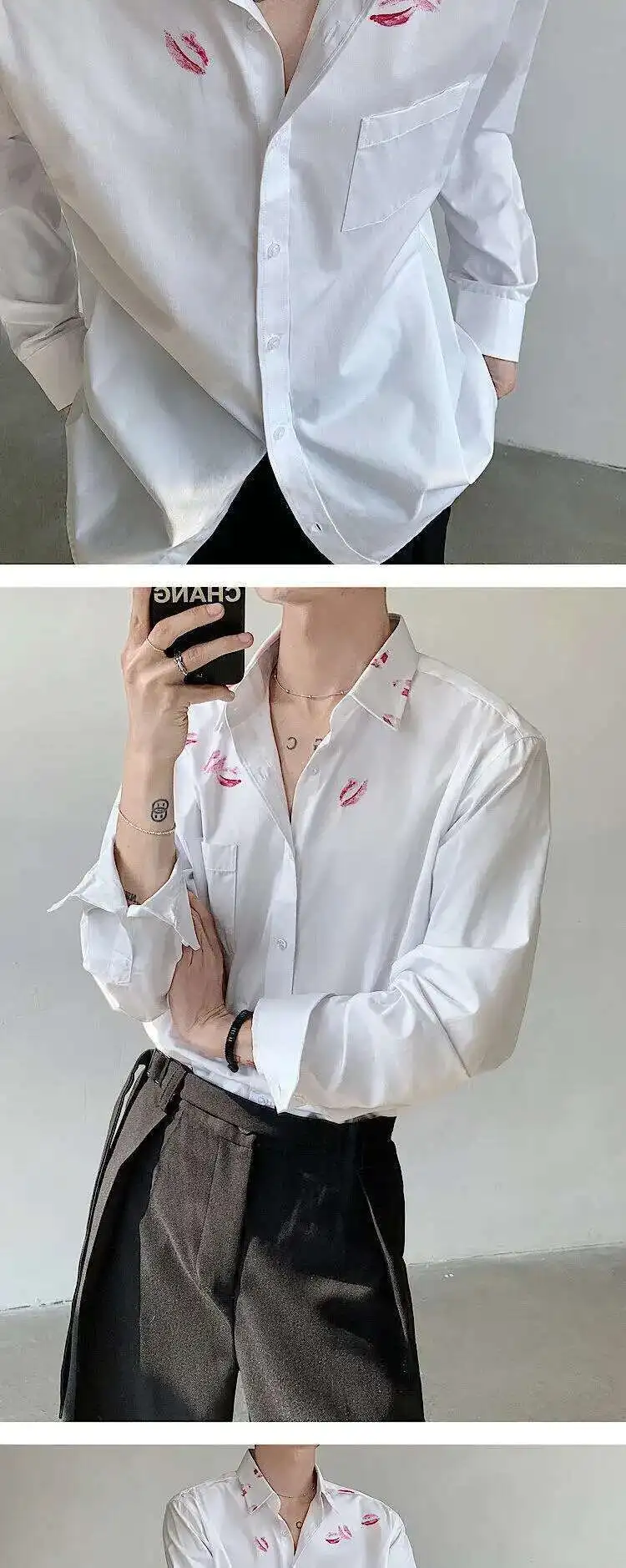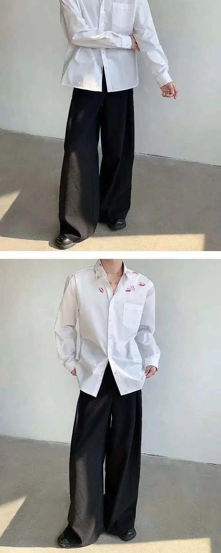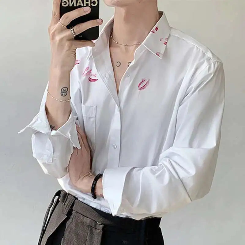 AIDASE - Spring/Summer Personalized Printed White Shirt Loose Turn-down Collar Single Breast Male Tops Casual